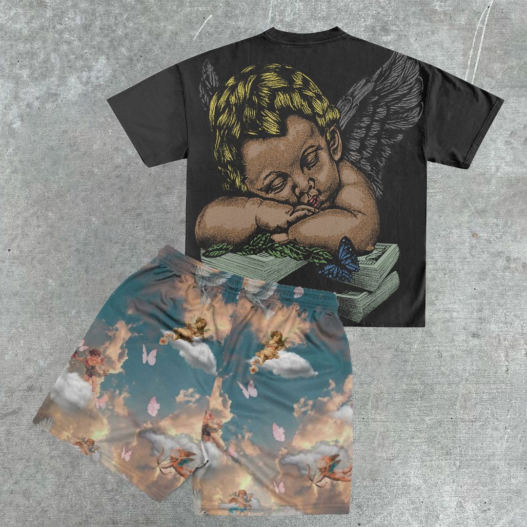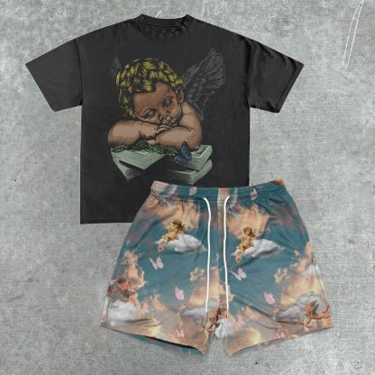 Angel tide brand printed casual short-sleeved suit