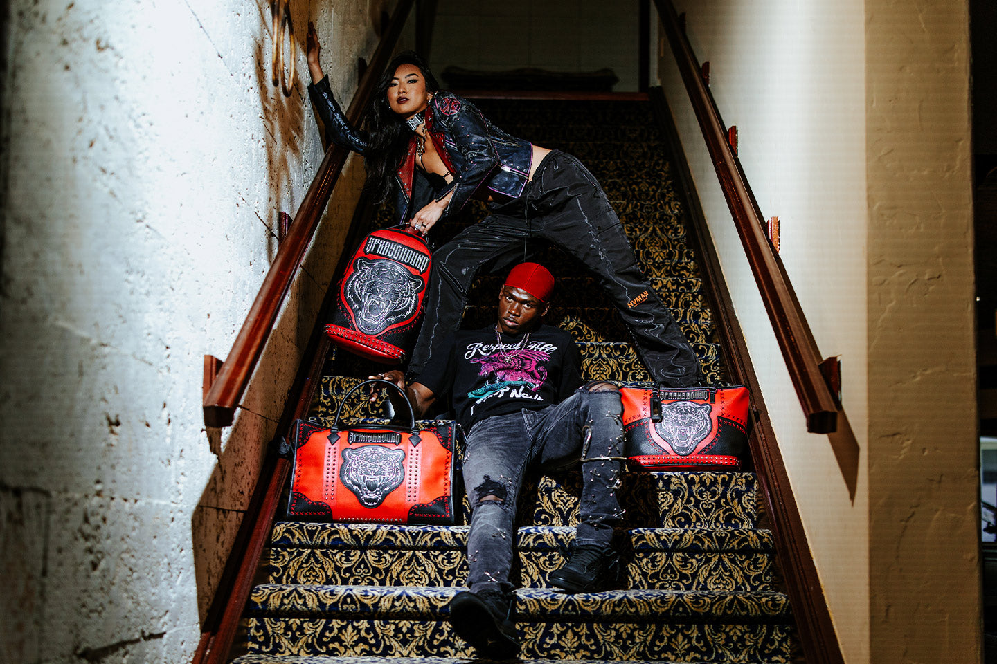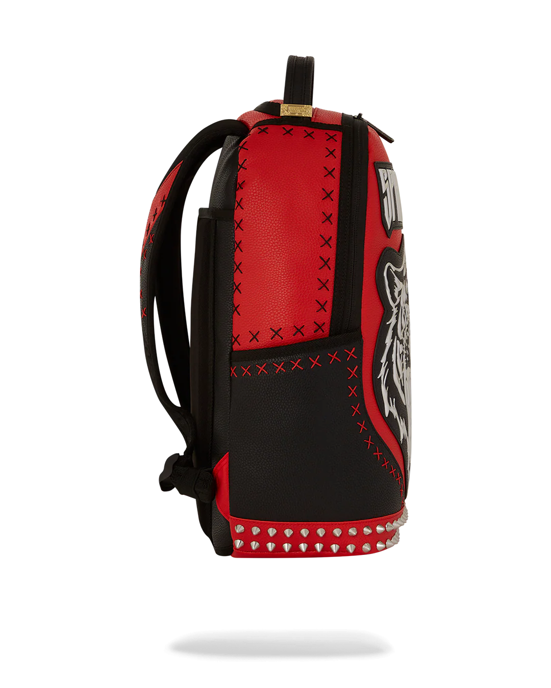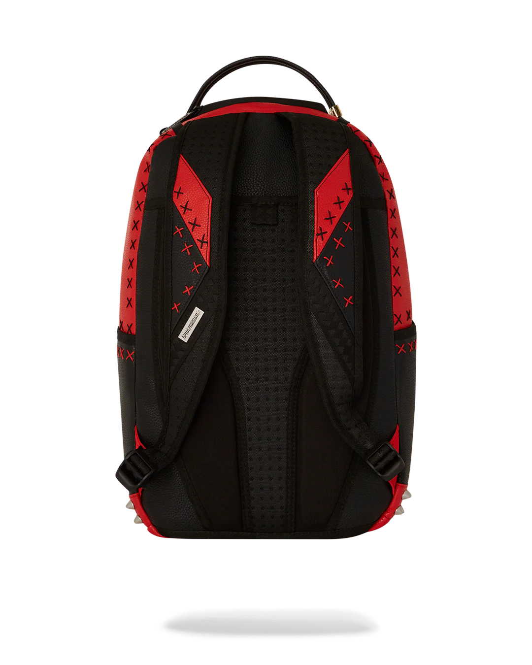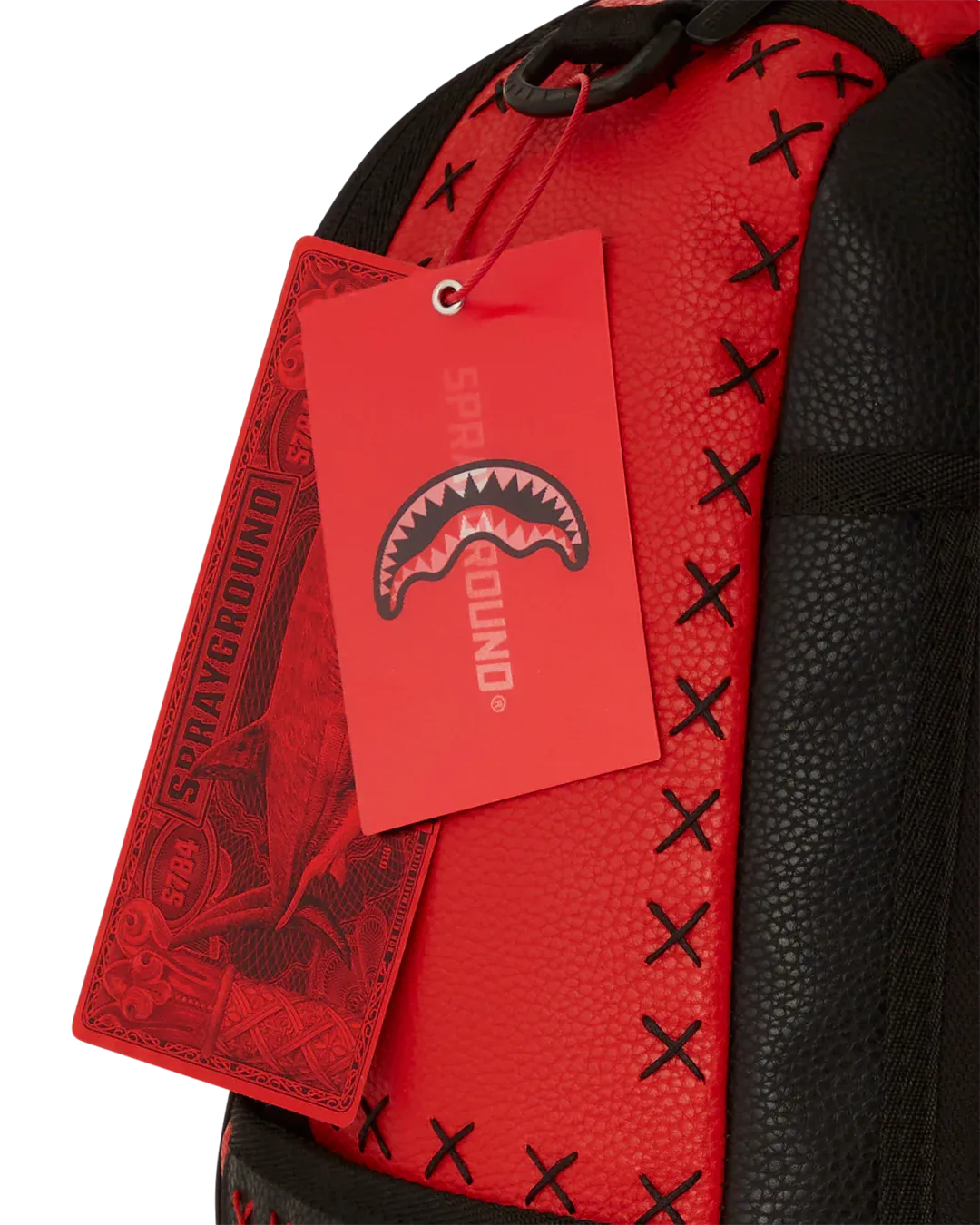 Dimensions: 18" x 6" x 11.5" • Front zipper pocket • Side pockets • Zippered Stash pocket • Separate velour sunglass compartment • Ergonomic mesh back padding • Adjustable Straps for custom sizing • Gold zippers with metal hardware • Metal "Sprayground Authentic" badge • Slide through back sleeve connects to carry-on luggage to free your hands