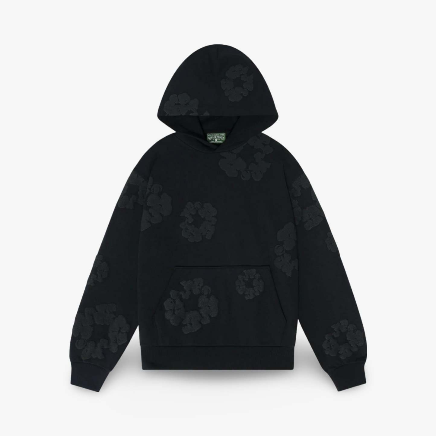 Denim Tears Pullover Hooded Sweatshirt 'The Cotton Wreath Monochrome' Black (SS24) 013-006-140