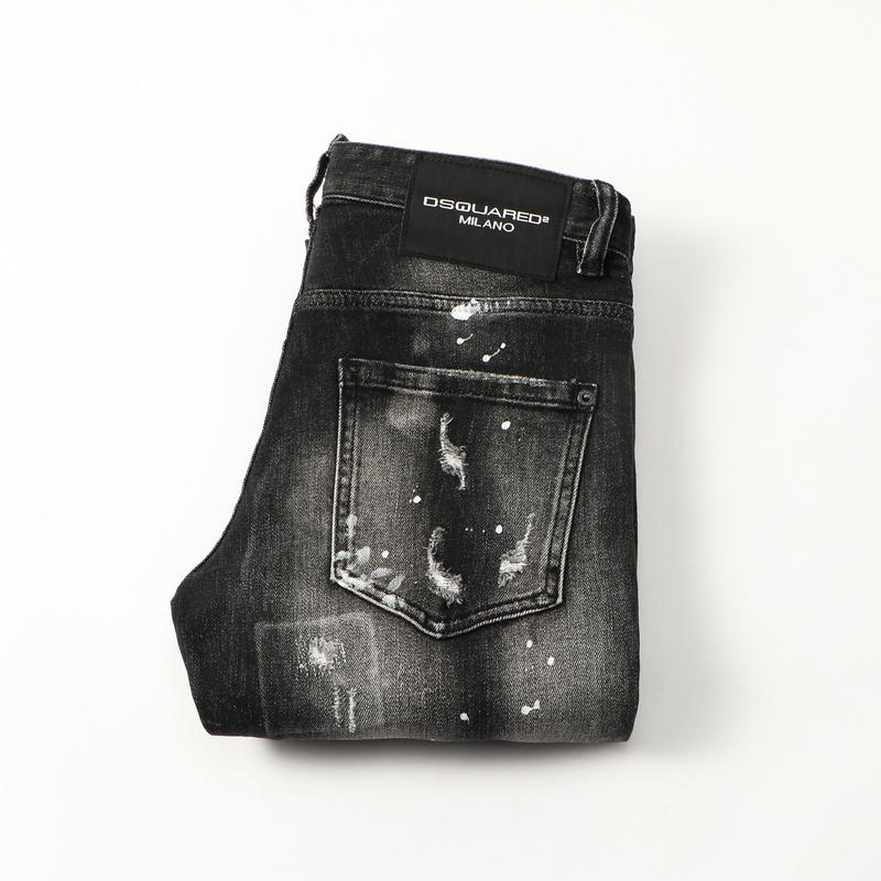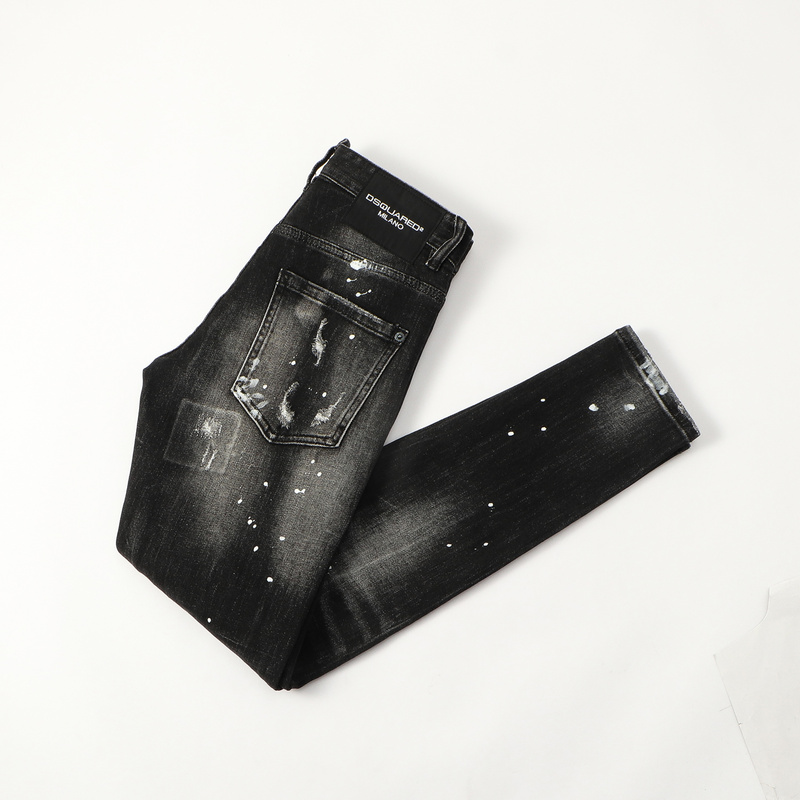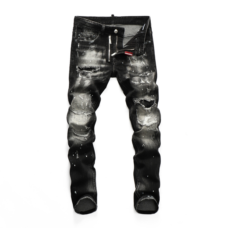 Dsquared2 Jeans gray and black tie-dye ripped denim slim pants