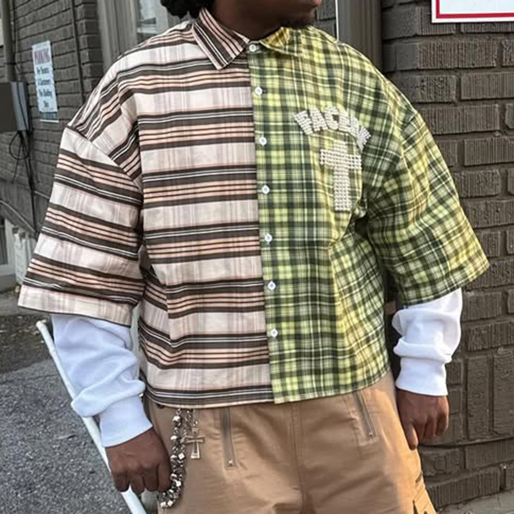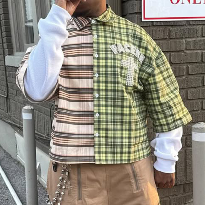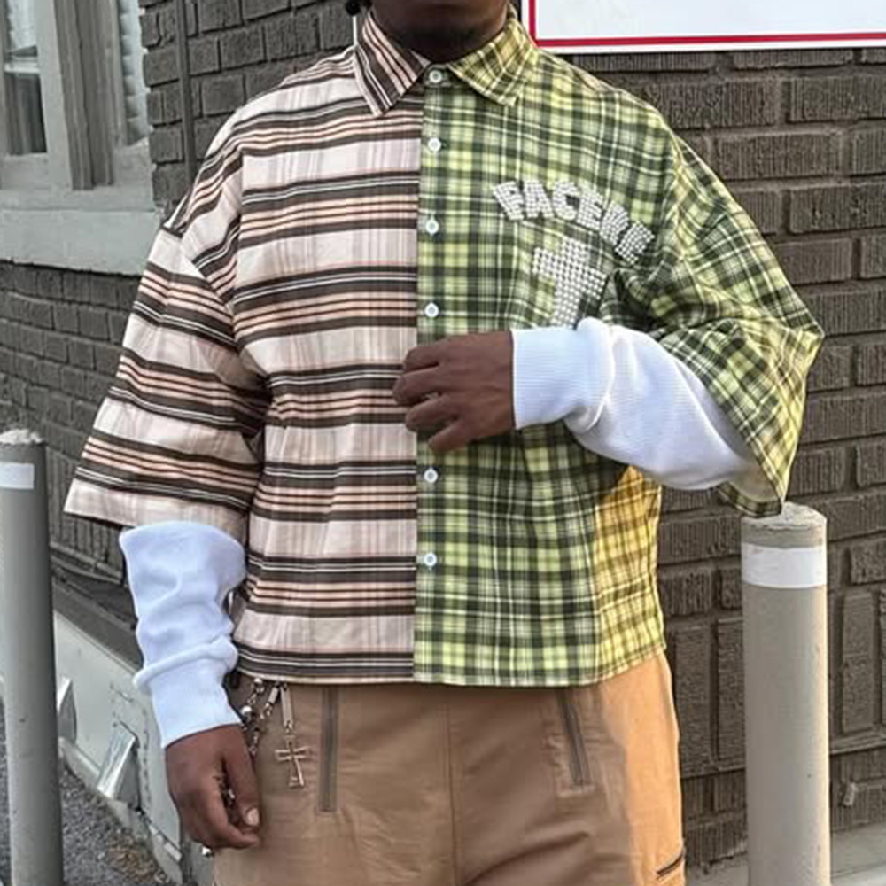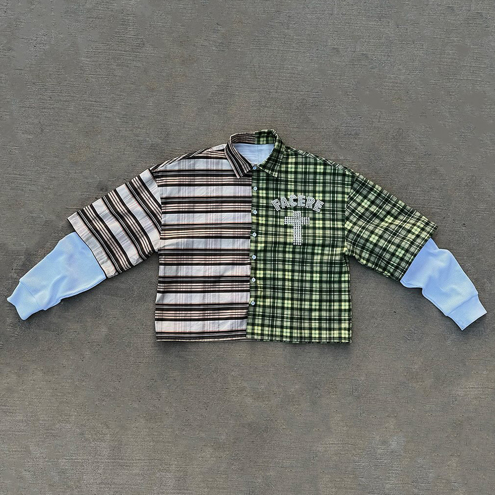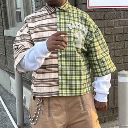 Fake Two Plaid Print Long Sleeve Shirt