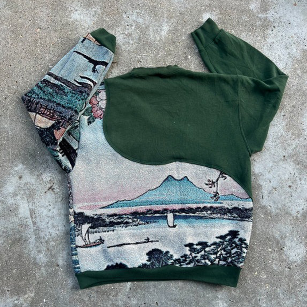 Fashion Packers Print Patchwork Long Sleeve Sweatshirt