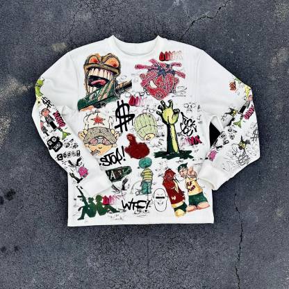 Fashionable personalized printed crew neck loose sweatshirt