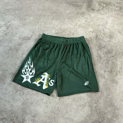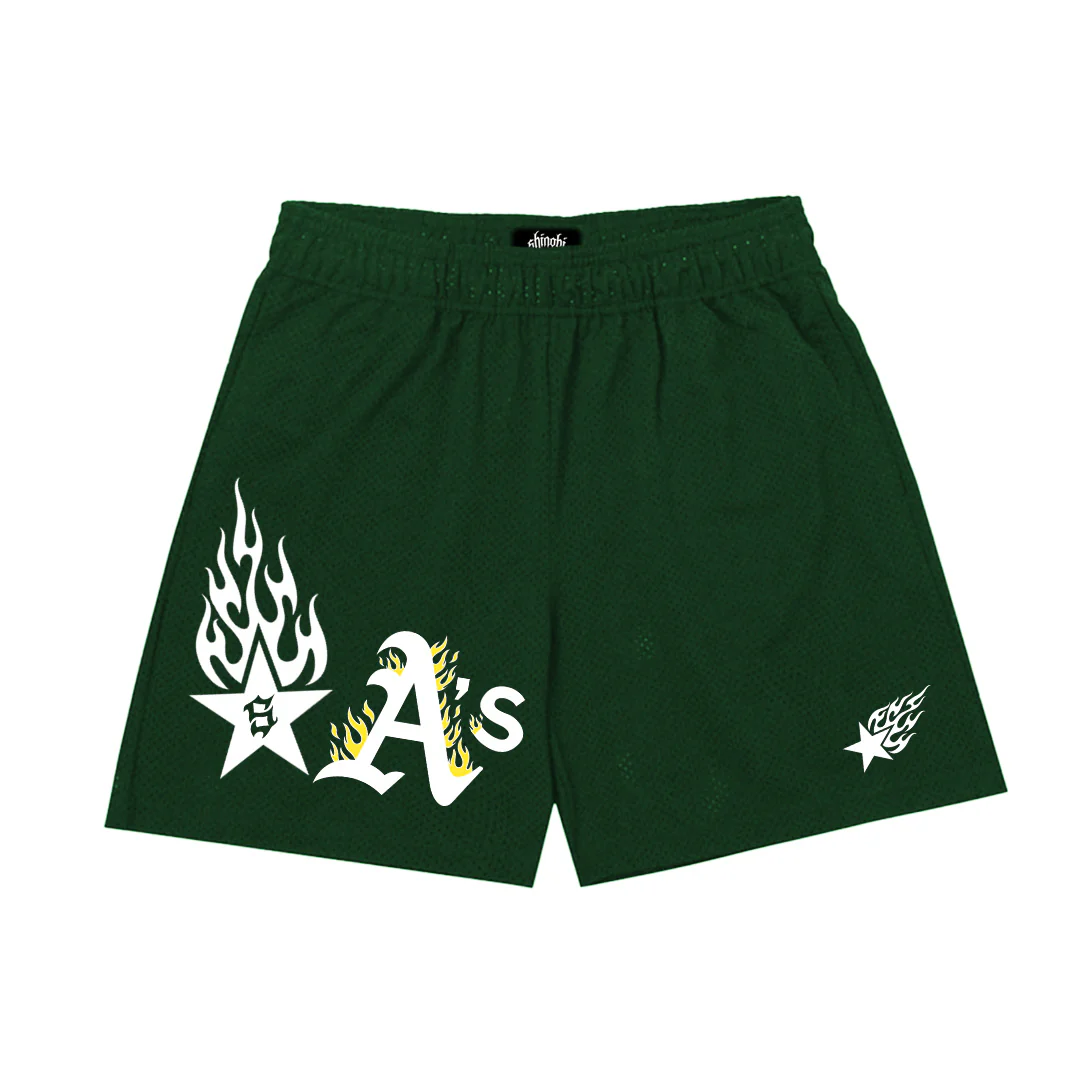 Green shorts with Oakland flame + SHINOBI® Logo