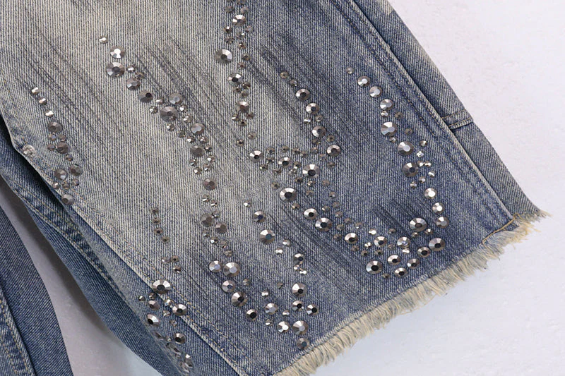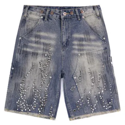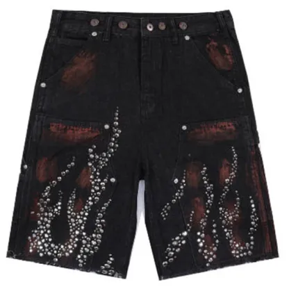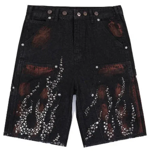 Hellstar Diamond Embellished Denim Shorts