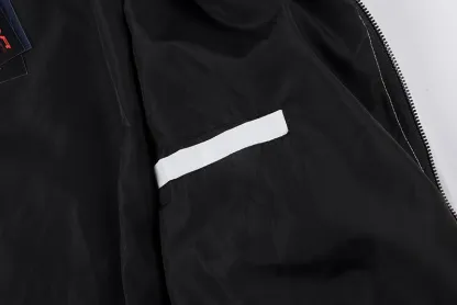Vintage Nylon Jacket with contrast panels, and piping on collar. Features elastic cuff and waistband. Soft Tercel lining. Embroidery detailing.