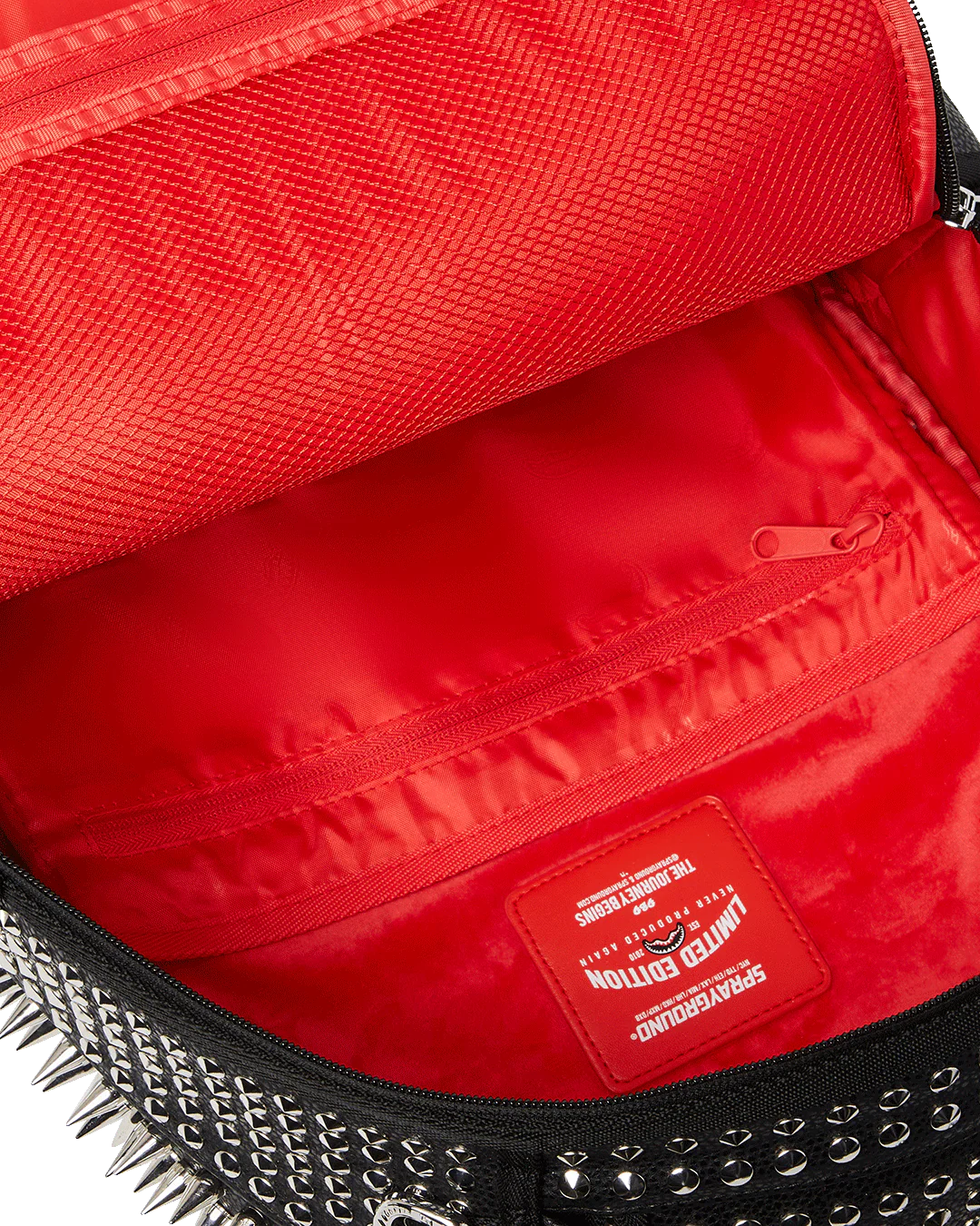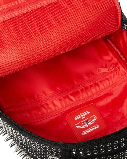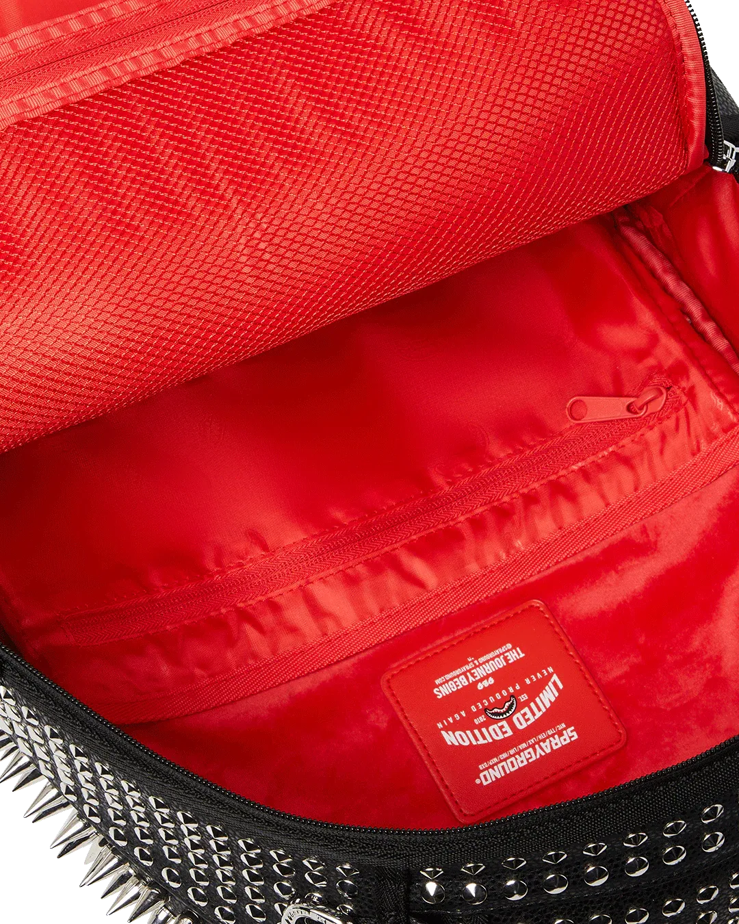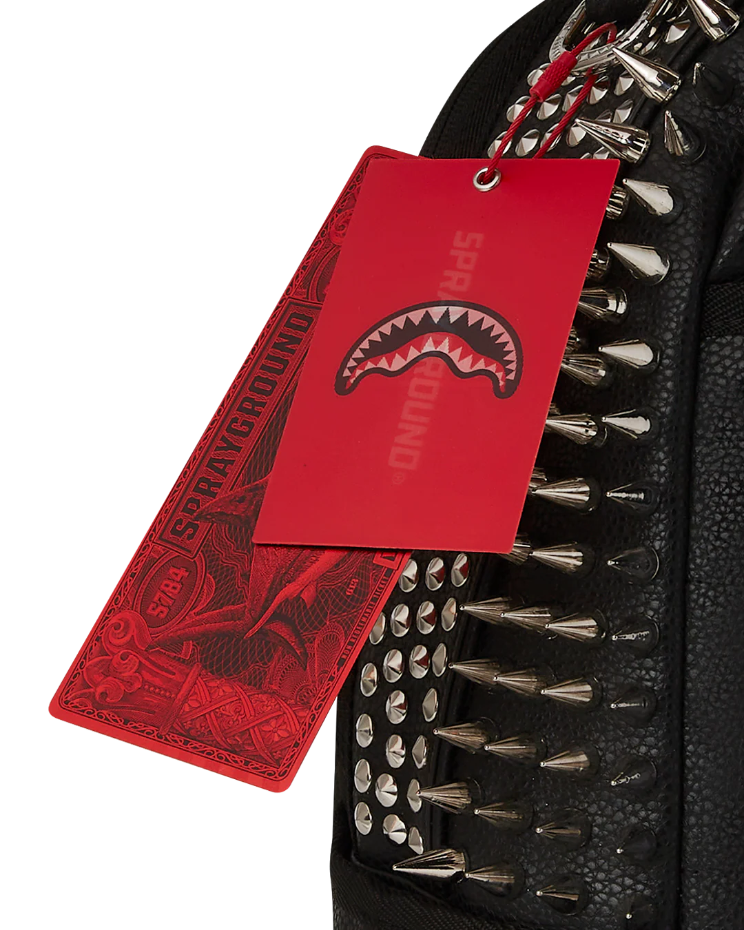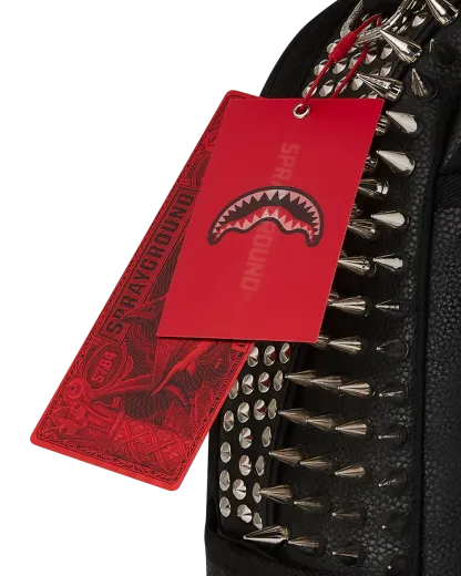 Dimensions: 18" x 6" x 11.5" • Front zipper pocket • Side pockets • Zippered Stash pocket • Separate velour sunglass compartment • Ergonomic mesh back padding • Adjustable Straps for custom sizing • Gold zippers with metal hardware • Metal "Sprayground Authentic" badge • Slide through back sleeve connects to carry-on luggage to free your hands