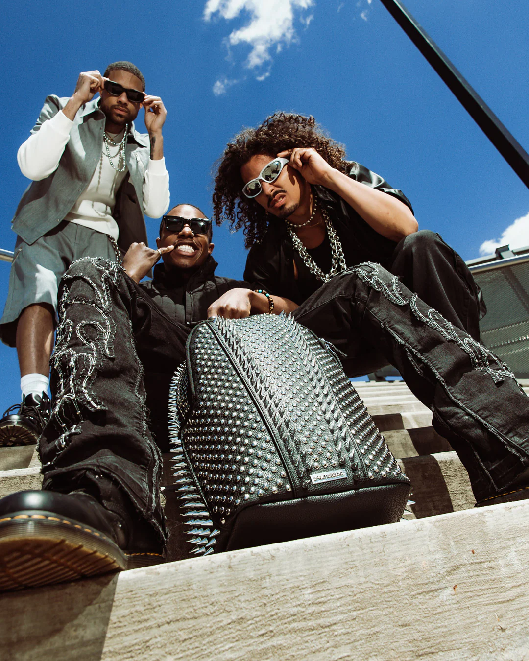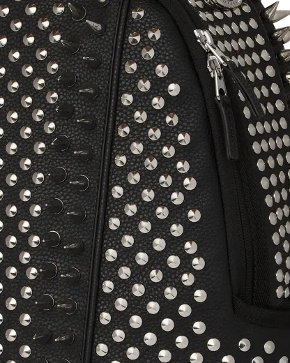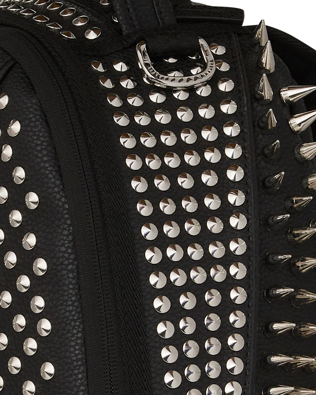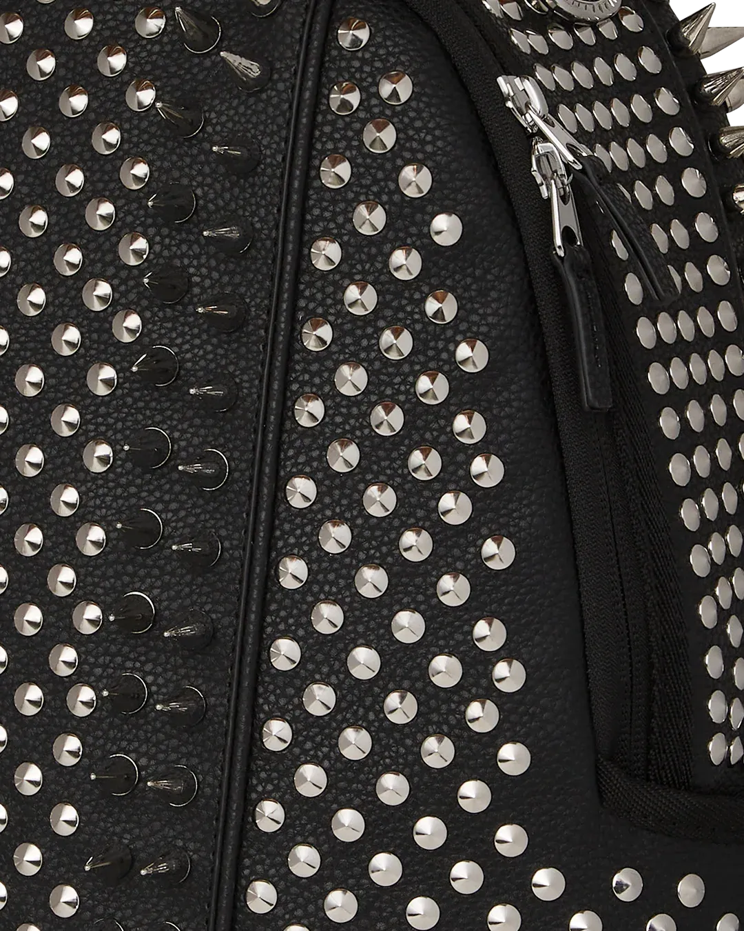 Dimensions: 18" x 6" x 11.5" • Front zipper pocket • Side pockets • Zippered Stash pocket • Separate velour sunglass compartment • Ergonomic mesh back padding • Adjustable Straps for custom sizing • Gold zippers with metal hardware • Metal "Sprayground Authentic" badge • Slide through back sleeve connects to carry-on luggage to free your hands