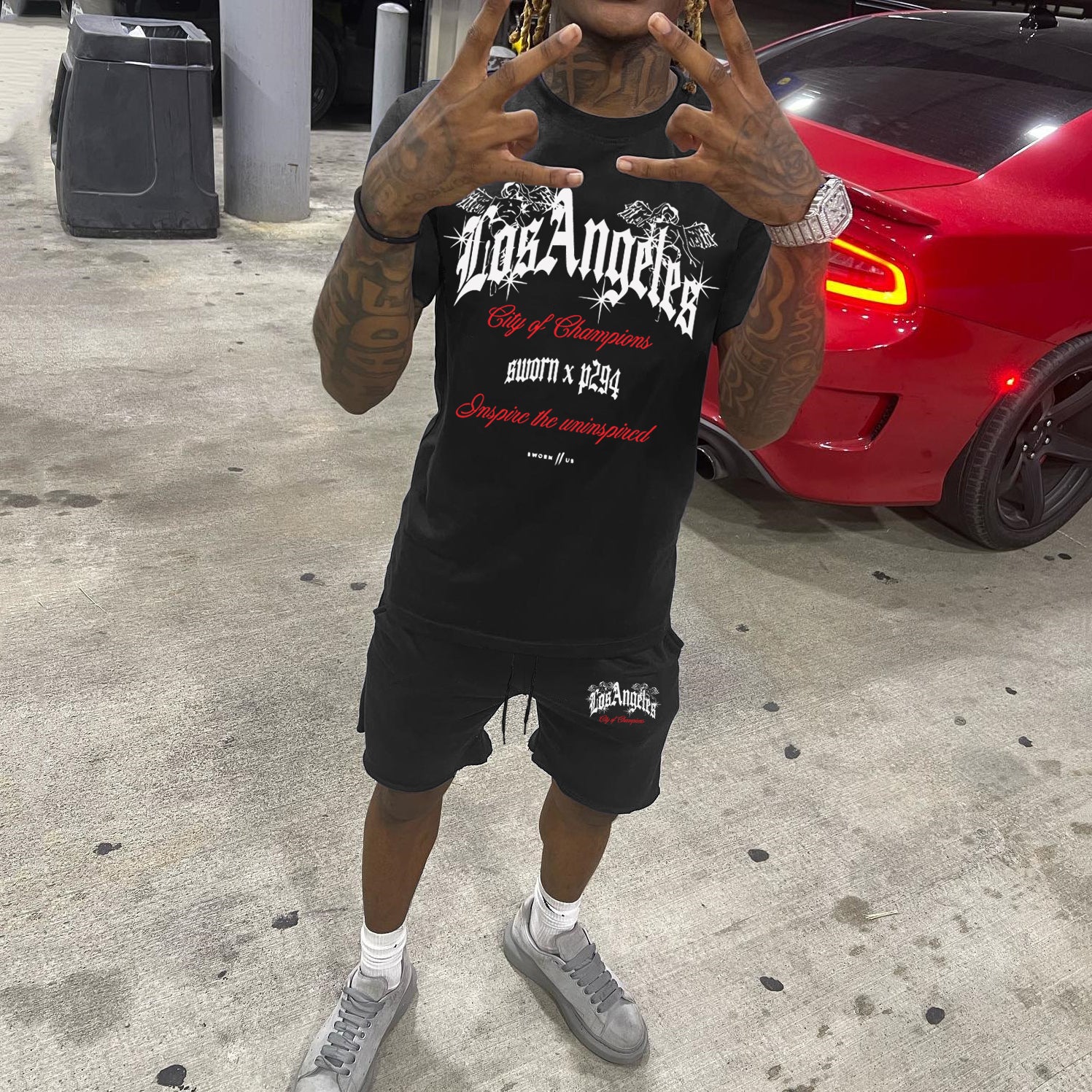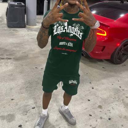 Los Angeles Print Short Sleeve Two Piece Set