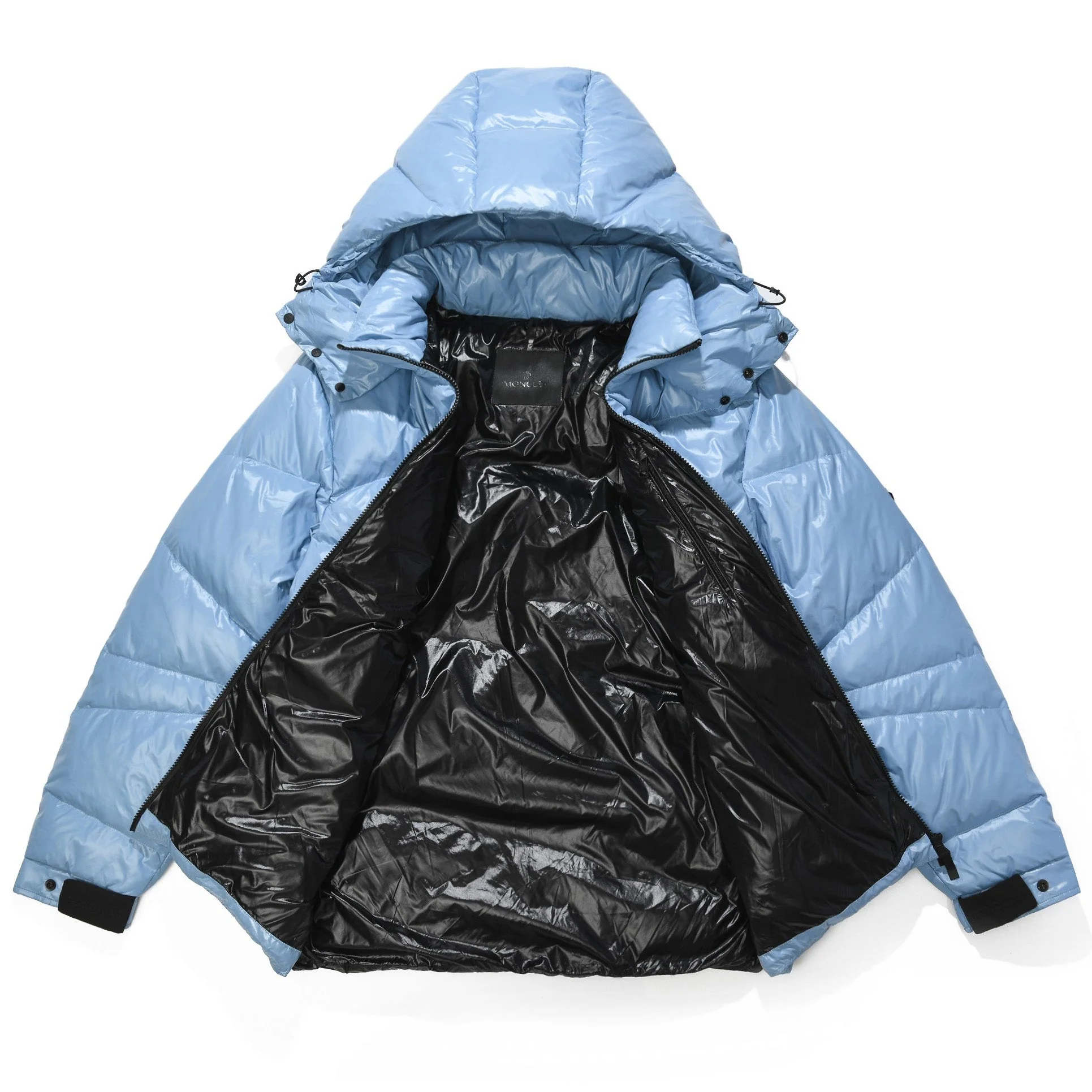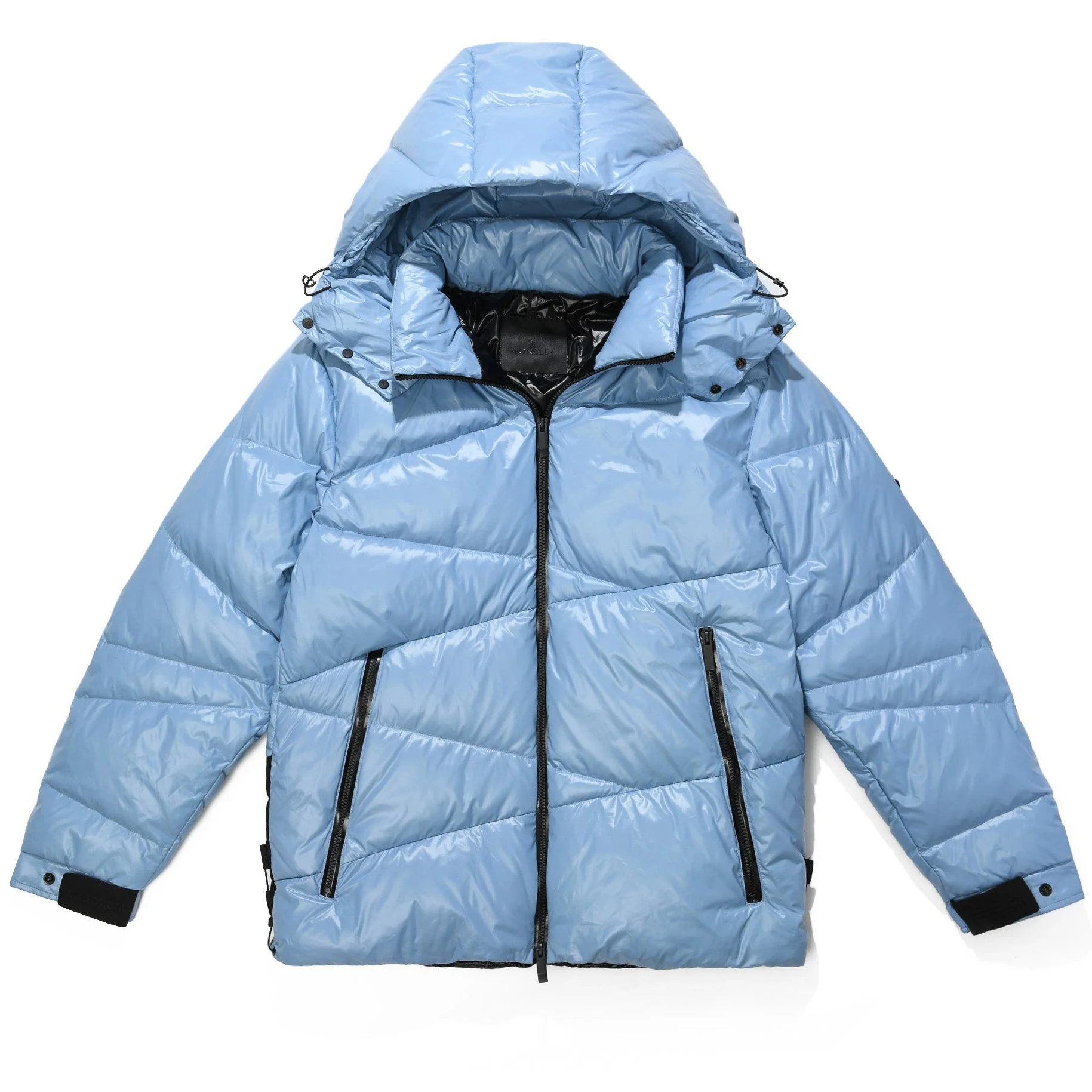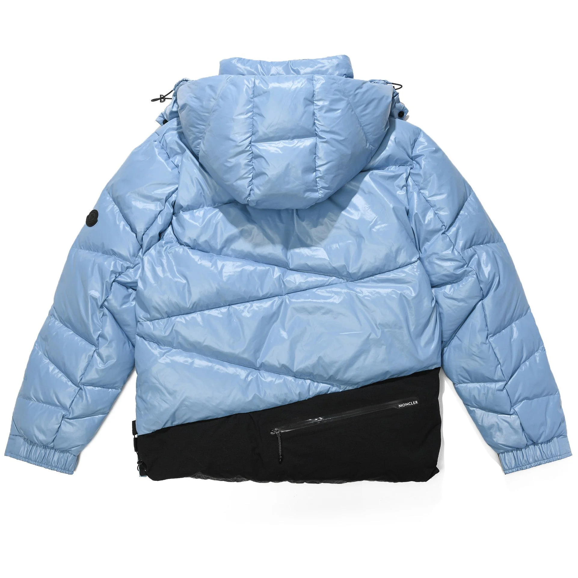 - Channeling Moncler's sporty spirit, the Solayan is a micro chic down jacket in a strong boxy shape. The short puffer is adorned by tricolour stripes on the sleeve, a seasonal adaptation of a brand signature. A practical pull-out hood finishes the design.