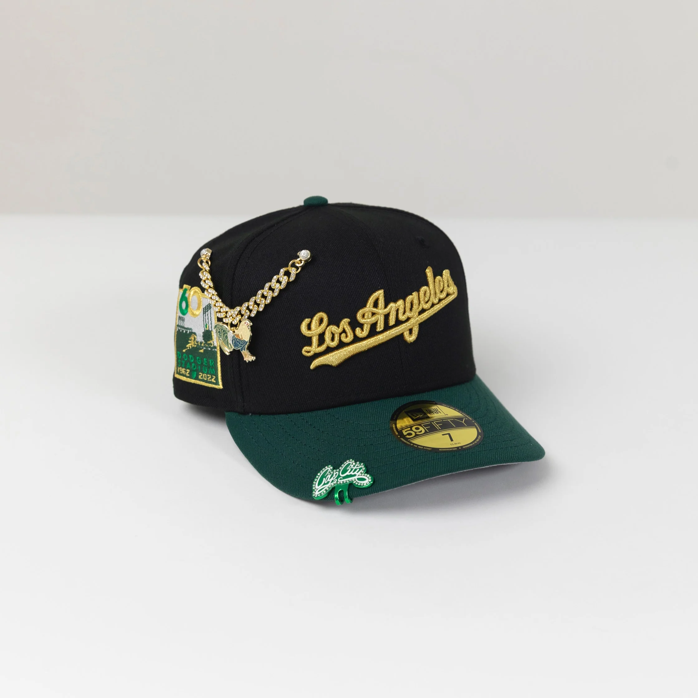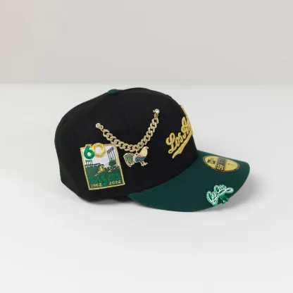 NEW ERA 59FIFTY BLACK/ FOREST GREEN LOS ANGELES DODGERS SCRIPT W/ 60TH ANNIVERSARY SIDE PATCH