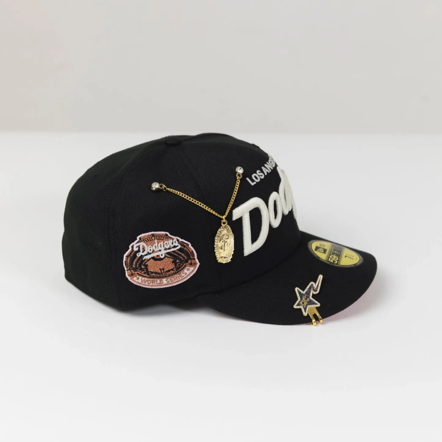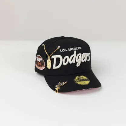 NEW ERA 59FIFTY BLACK LOS ANGELES DODGERS SCRIPT W/ WORLD SERIES SIDE PATCH
