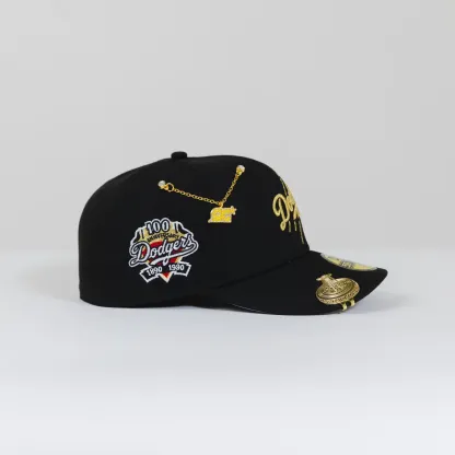 NEW ERA 59FIFTY BLACK LOS ANGELES DODGERS W/ 100TH ANNIVERSARY SIDE PATCH