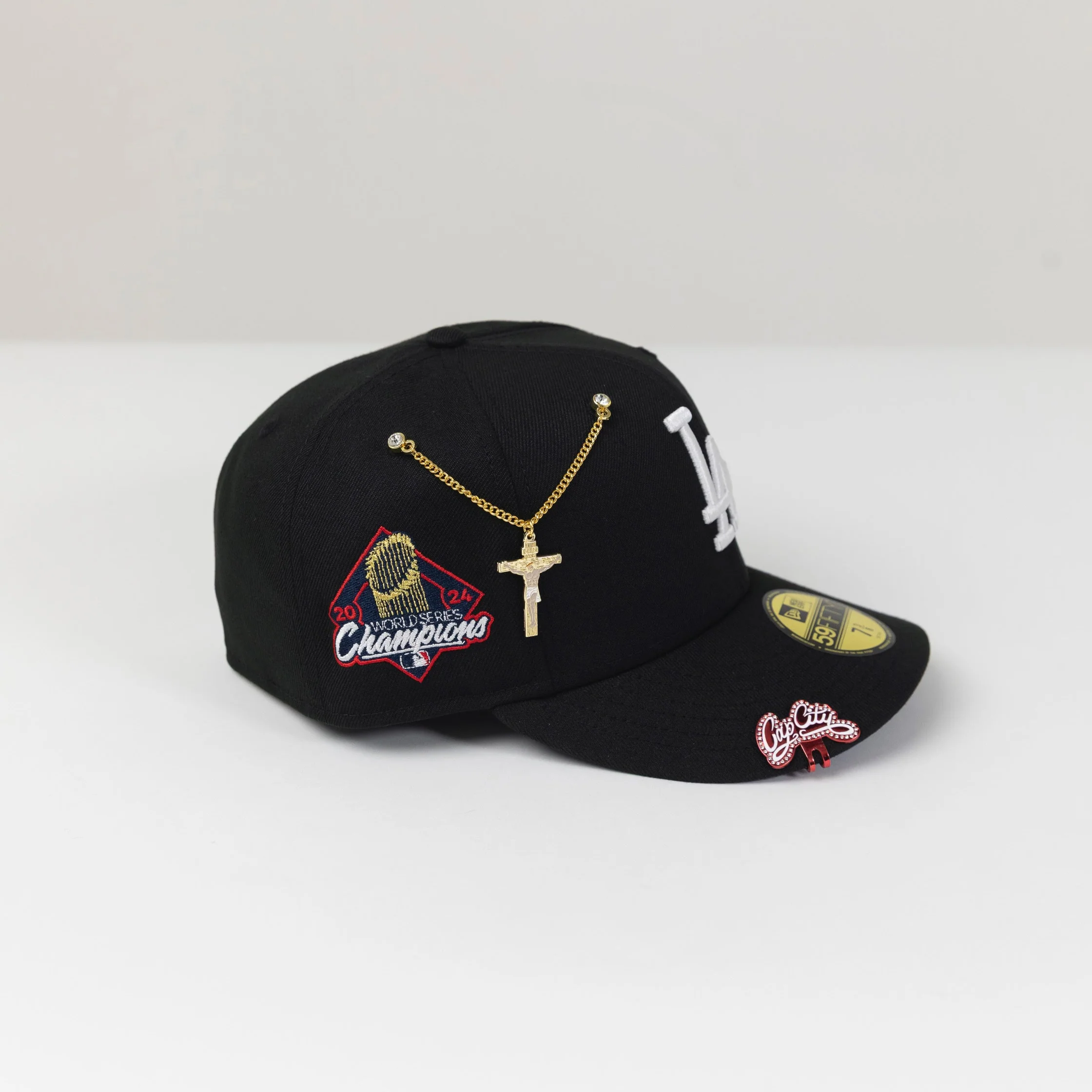 NEW ERA 59FIFTY BLACK LOS ANGELES DODGERS W/ 2024 WORLD SERIES CHAMPIONS SIDE PATCH