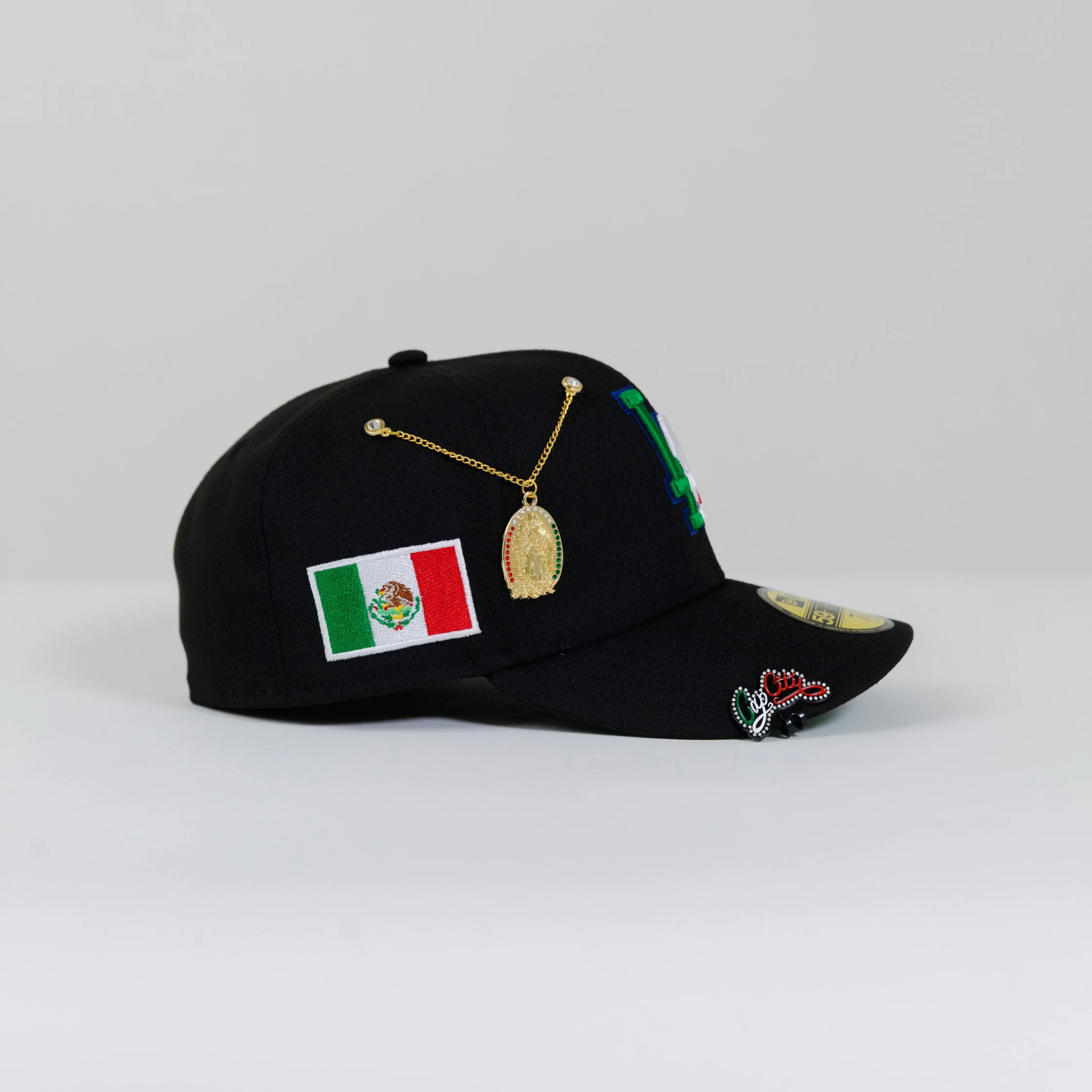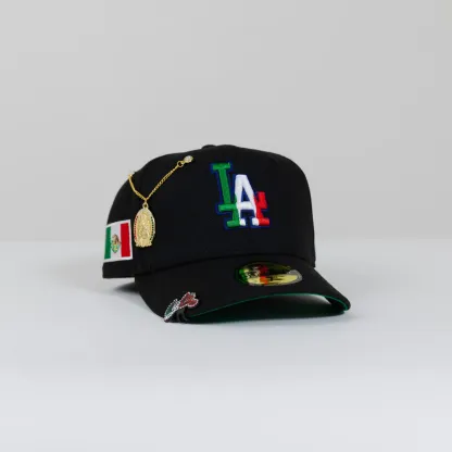 NEW ERA 59FIFTY BLACK LOS ANGELES DODGERS W/ MEXICO FLAG LOGO + MEXICO FLAG SIDE PATCH