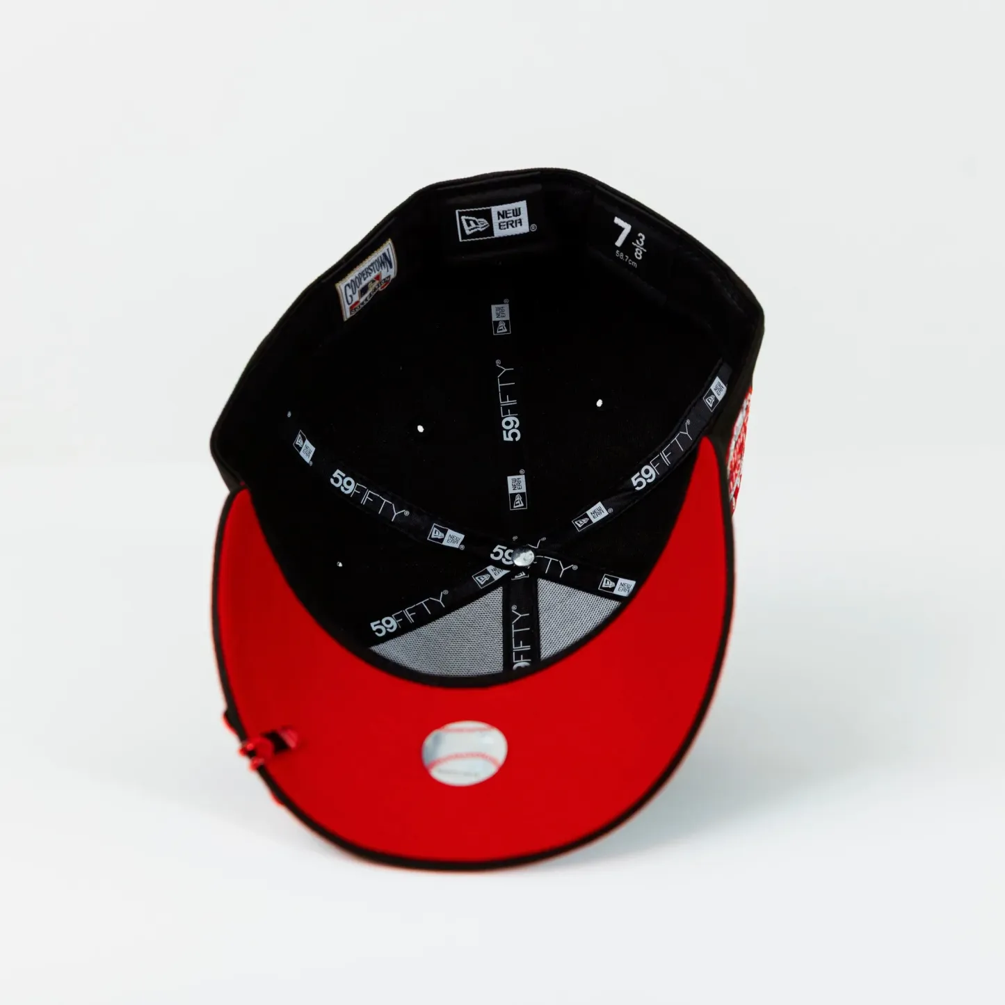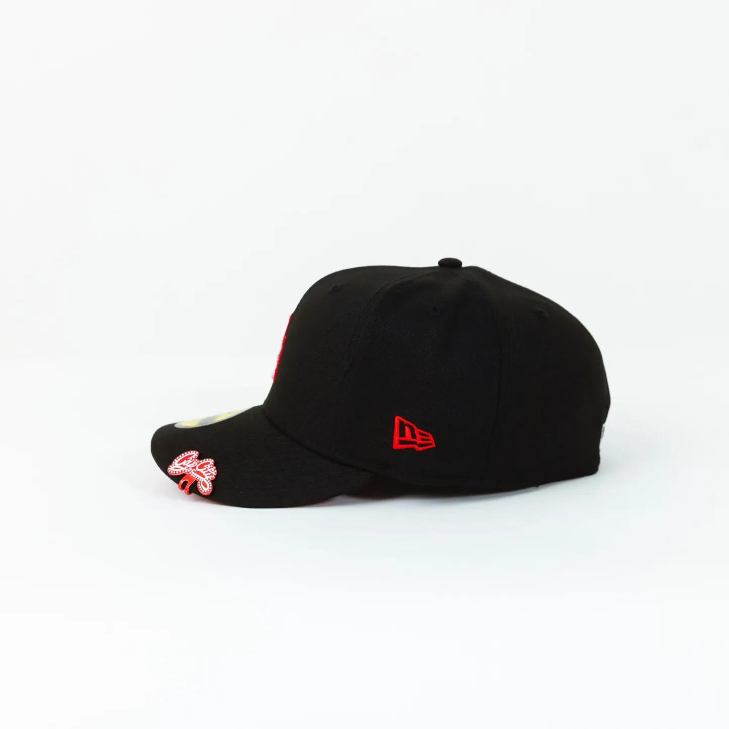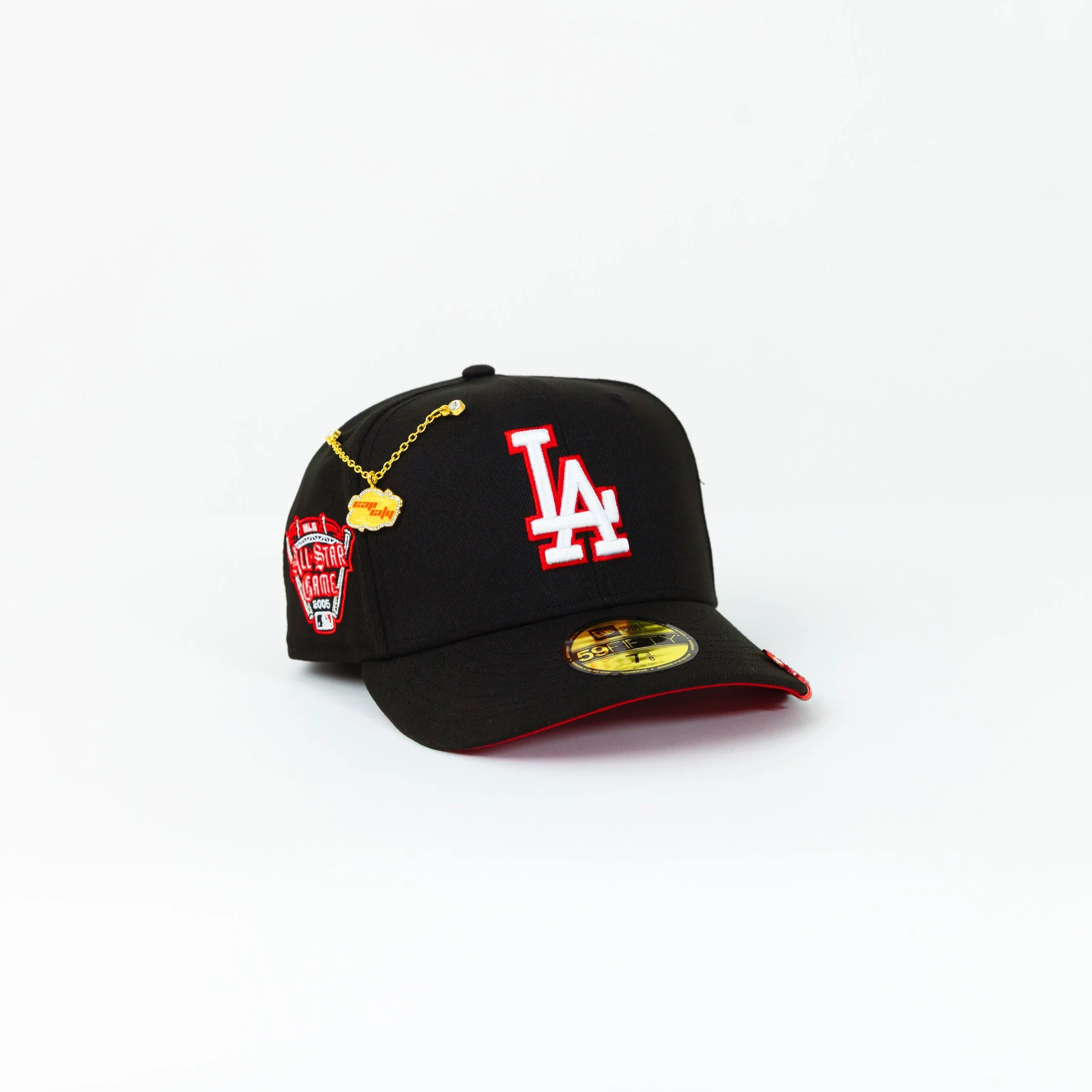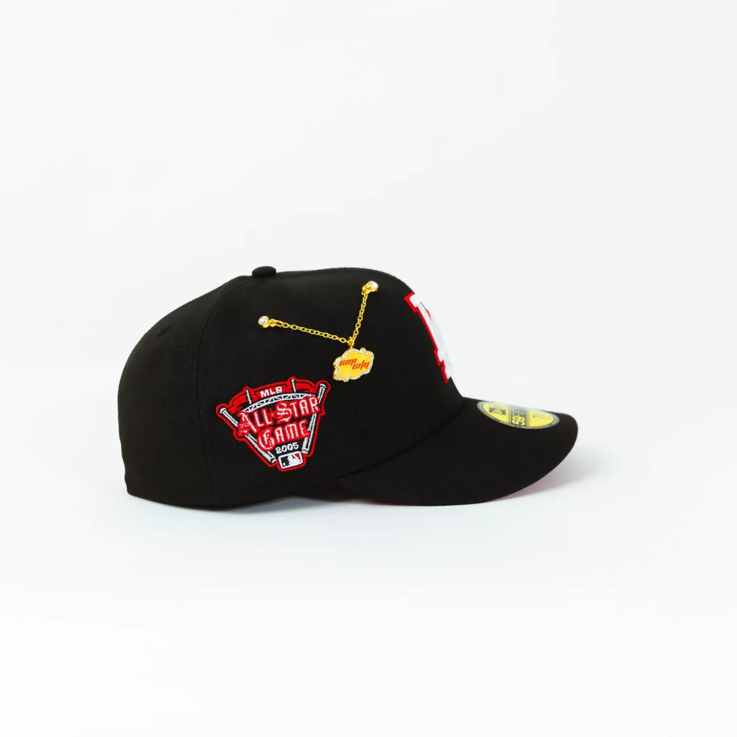 NEW ERA 59FIFTY BLACK LOS ANGELES DODGERS W/ RED OUTLINE + 2005 ALL STAR GAME SIDE PATCH