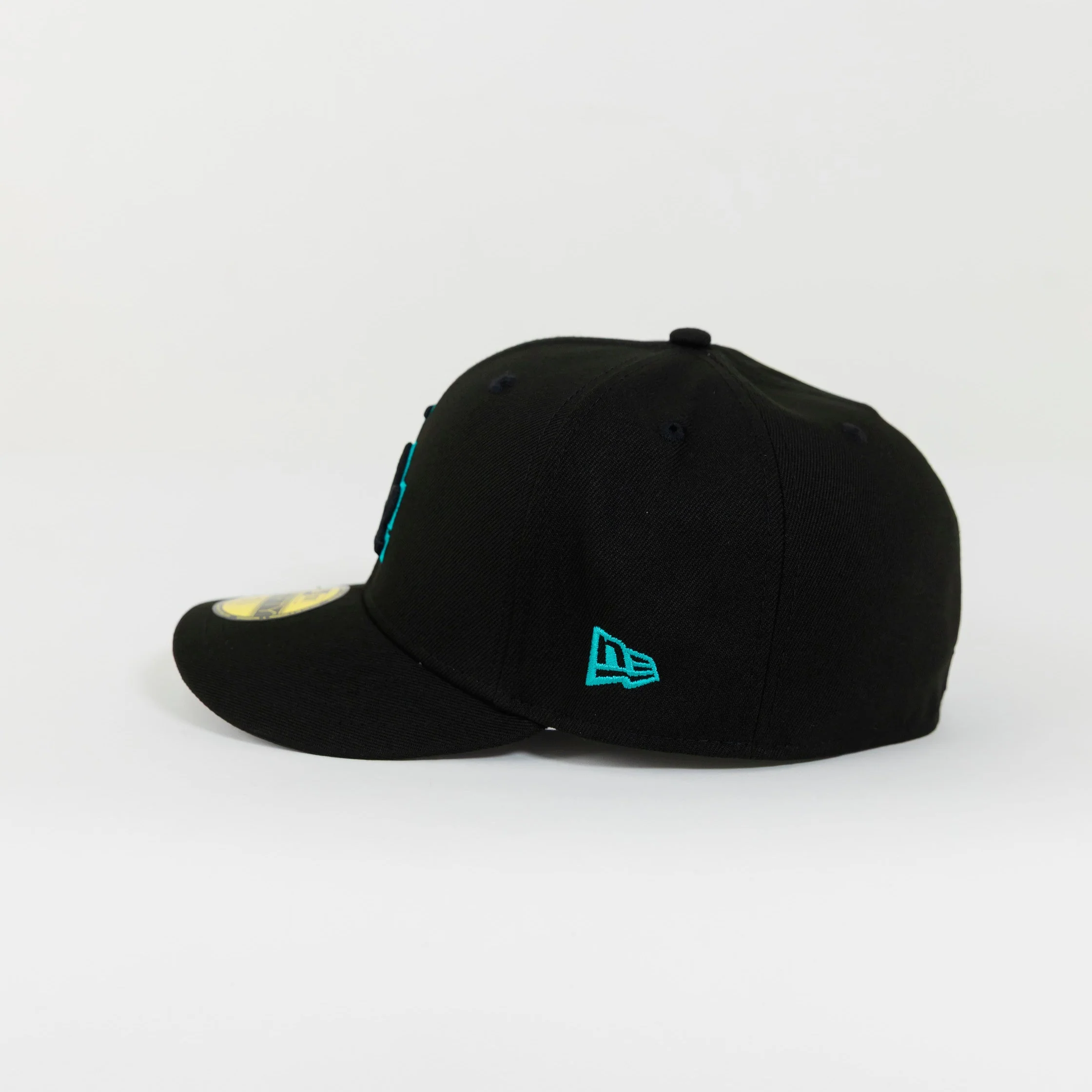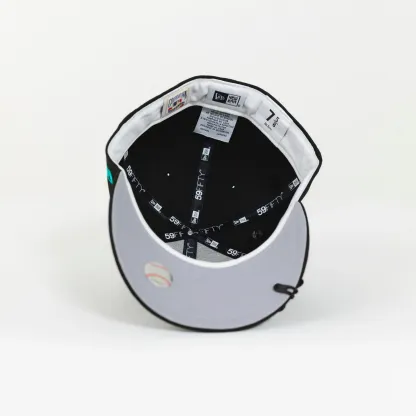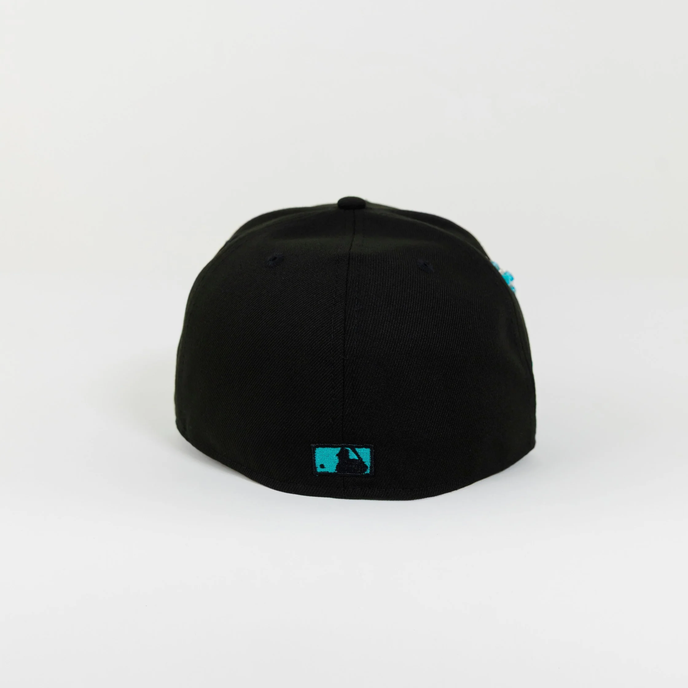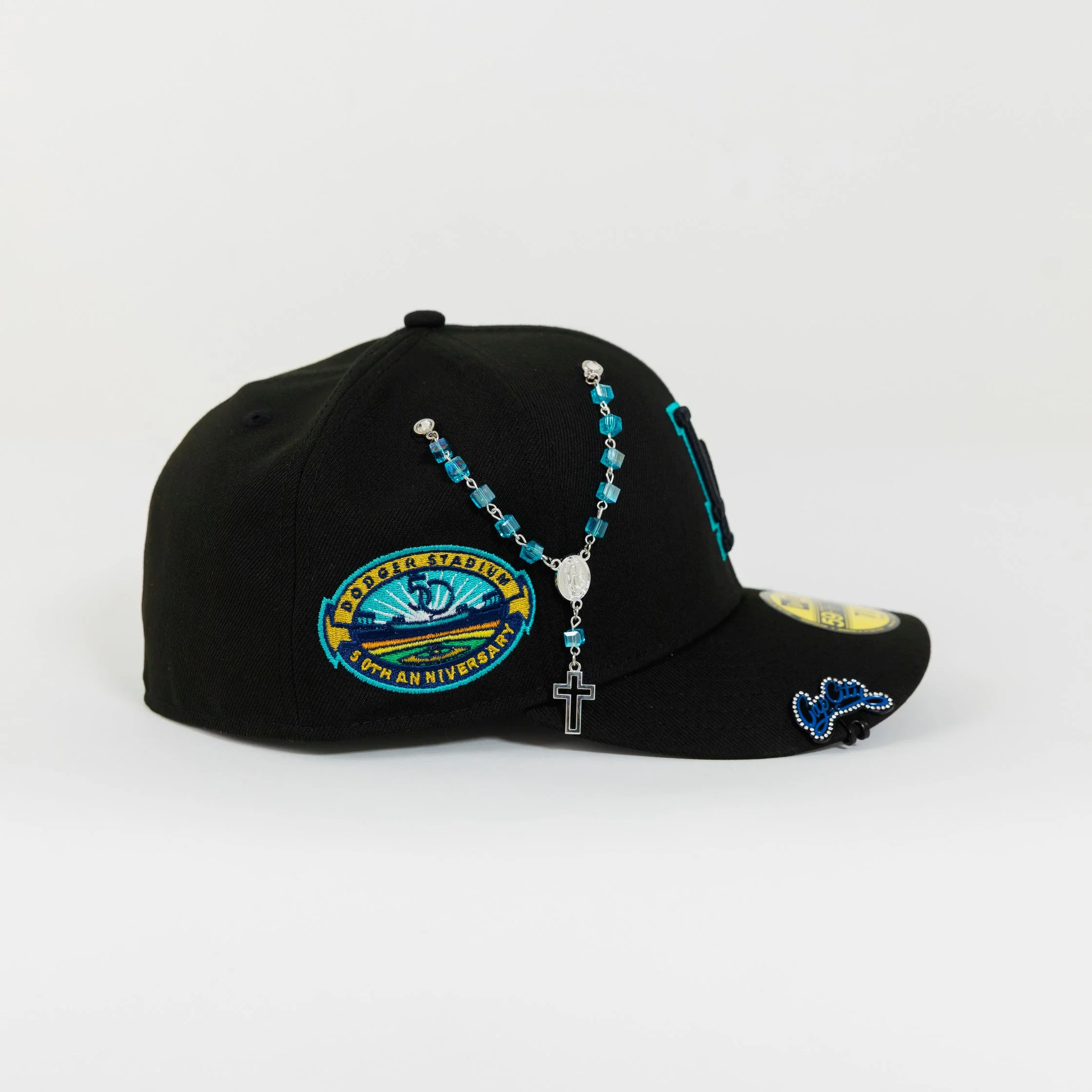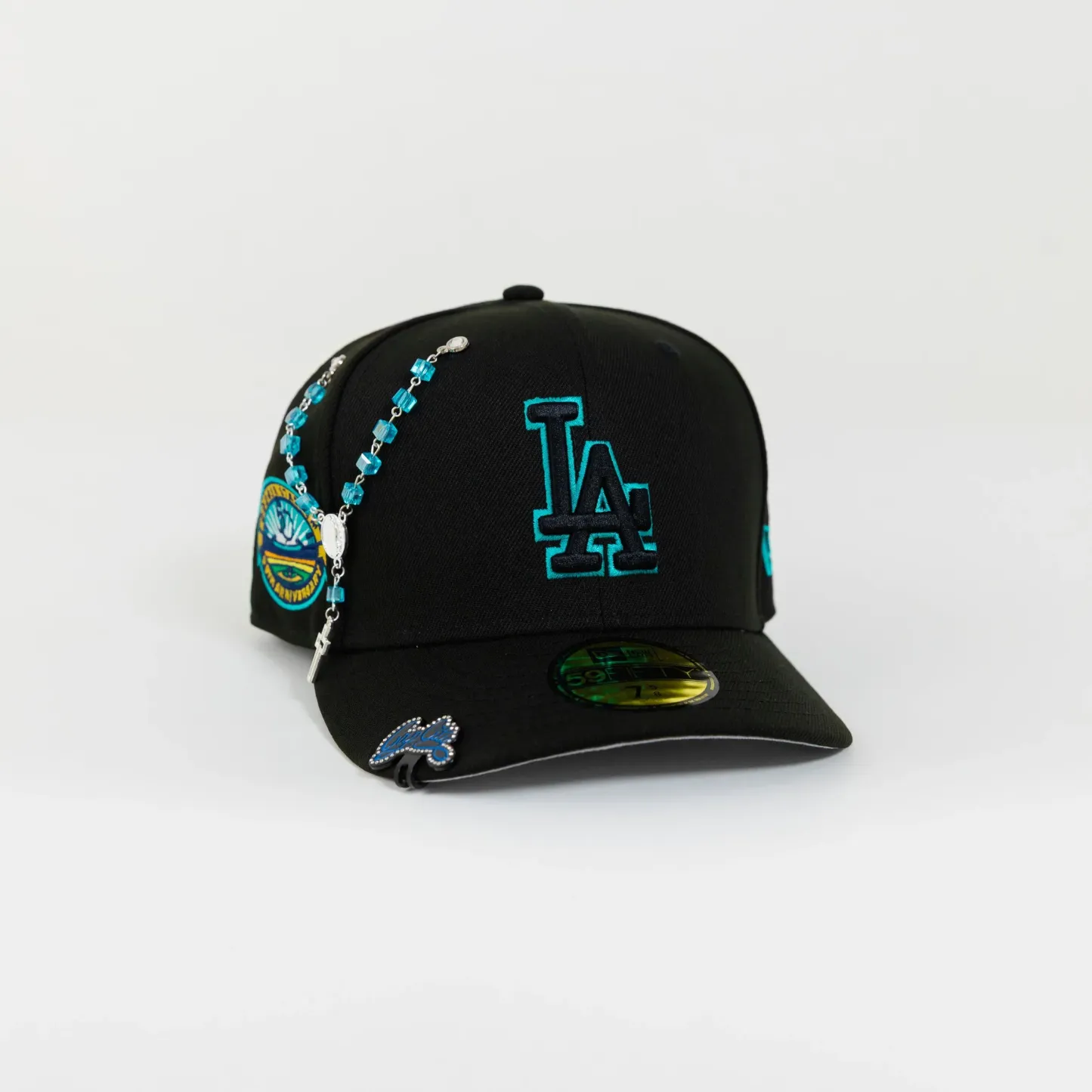 NEW ERA 59FIFTY BLACKED OUT LOS ANGELES DODGERS W/ TEAL OUTLINE + 50TH ANNIVERSARY SIDE PATCH