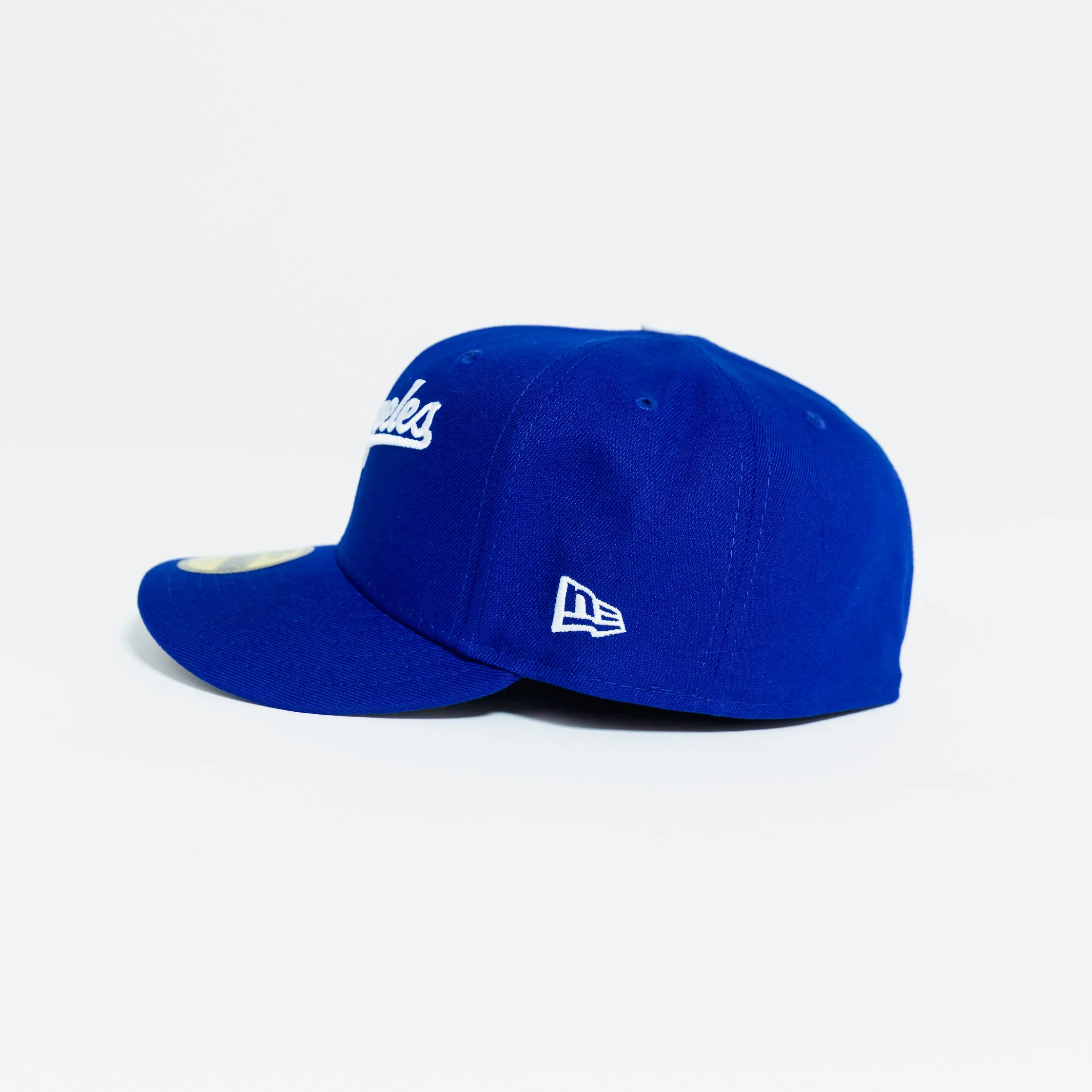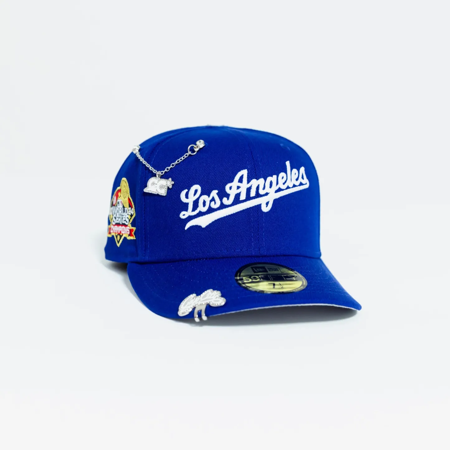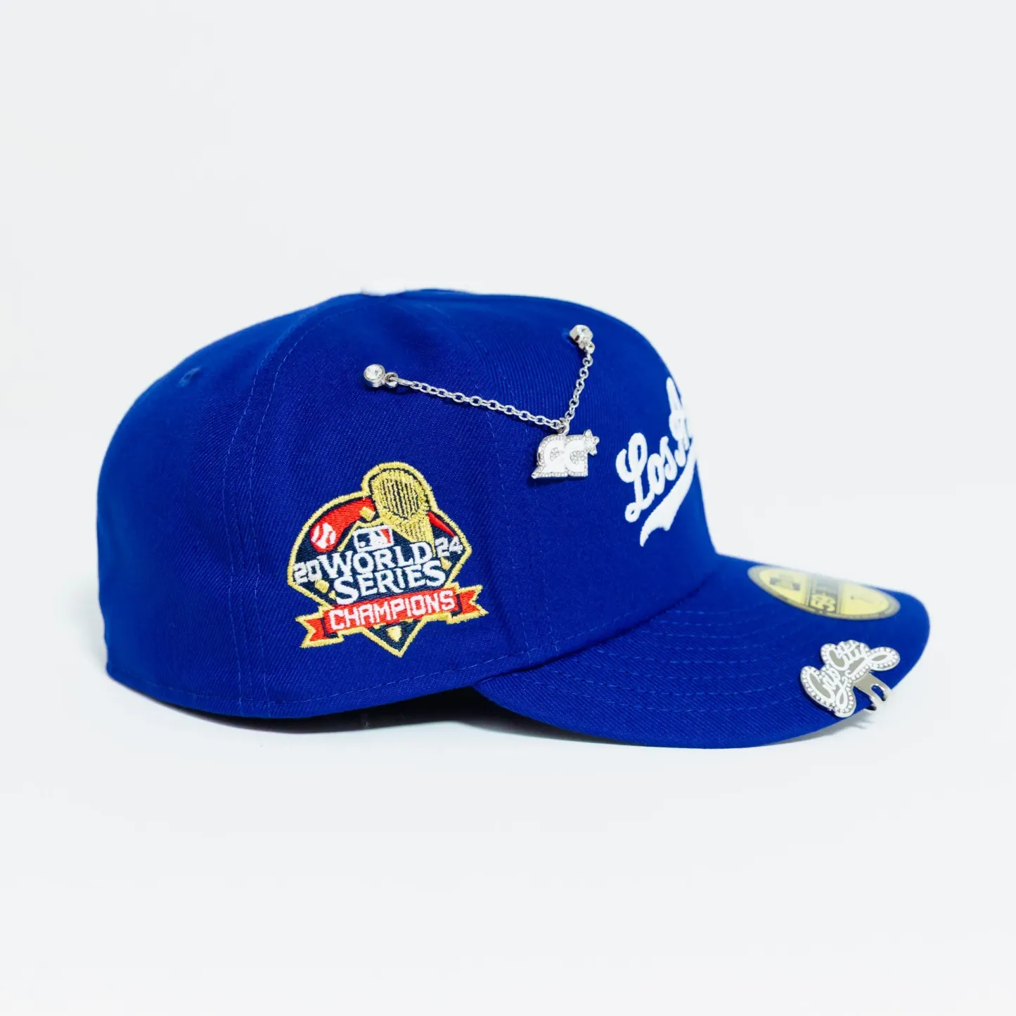 NEW ERA 59FIFTY BLUE LOS ANGELES DODGERS SCRIPT W/ 2024 WORLD SERIES CHAMPIONS SIDE PATCH