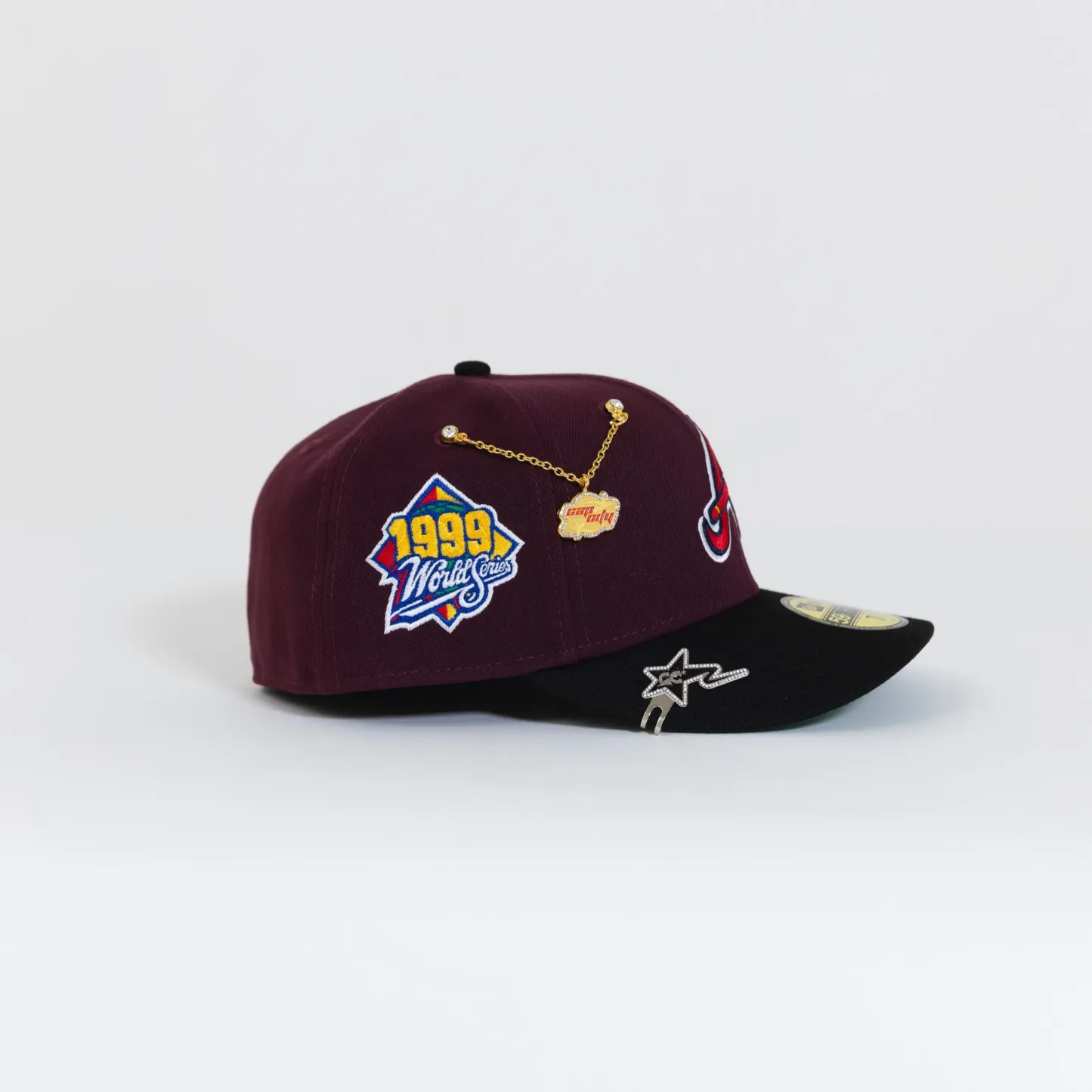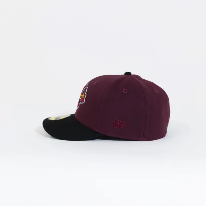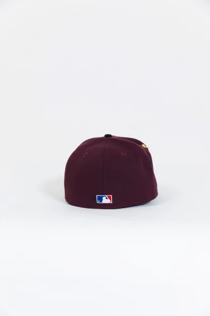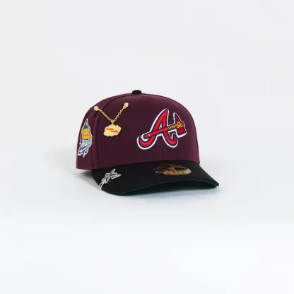 NEW ERA 59FIFTY BURGUNDY/ BLACK ATLANTA BRAVES W/ 1999 WORLD SERIES SIDE PATCH