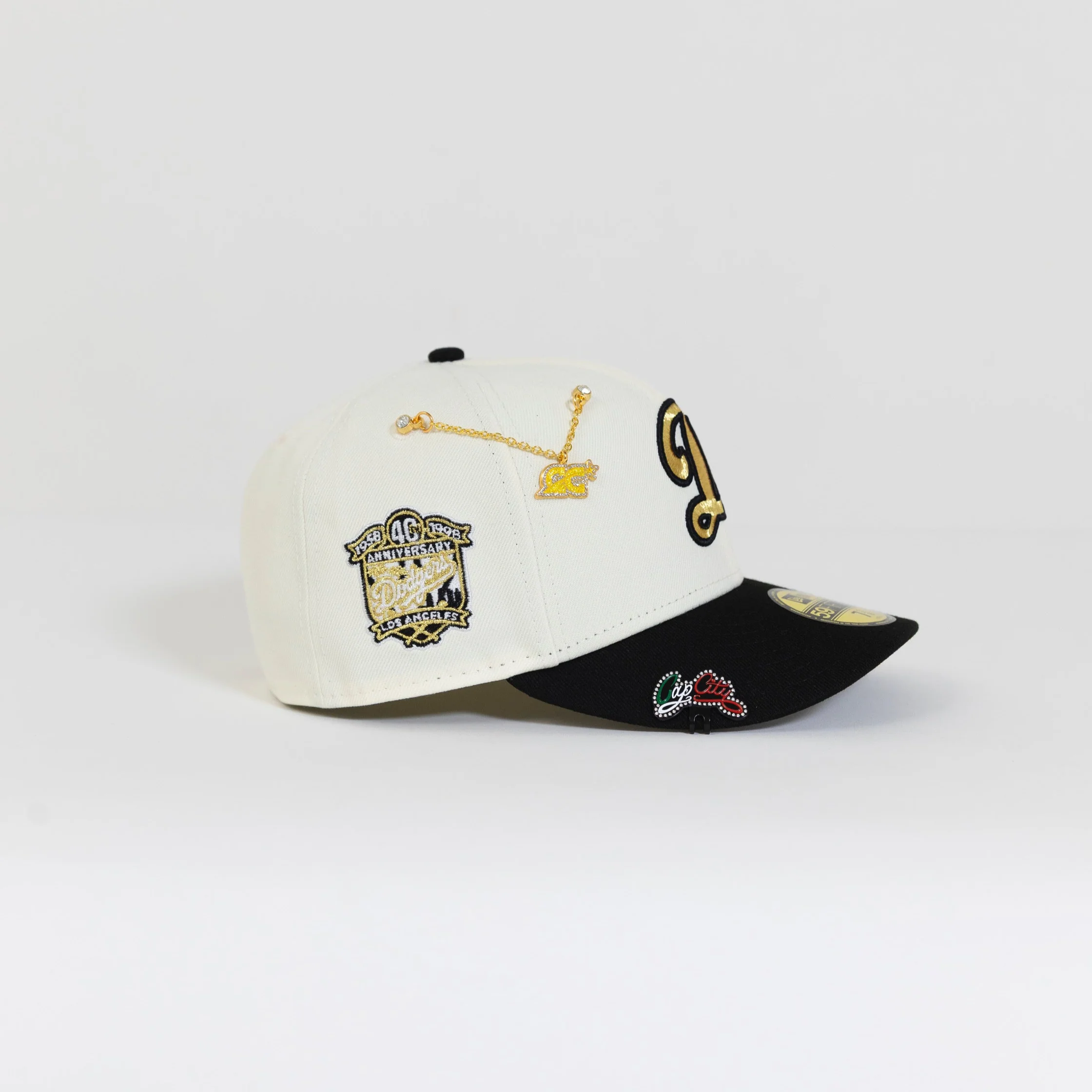 NEW ERA 59FIFTY CHROME/ BLACK LOS ANGELES DODGERS W/ 40TH ANNIVERSARY SIDE PATCH