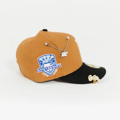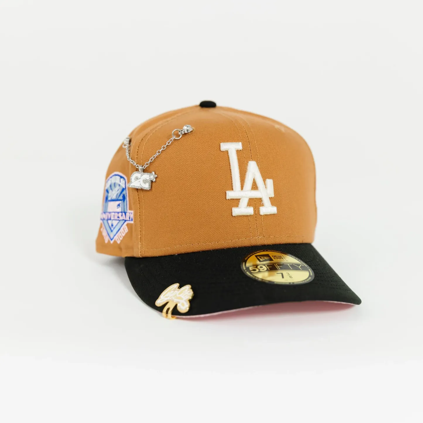 NEW ERA 59FIFTY TAN/ BLACK LOS ANGELES DODGERS W/ 50TH ANNIVERSARY SIDE PATCH