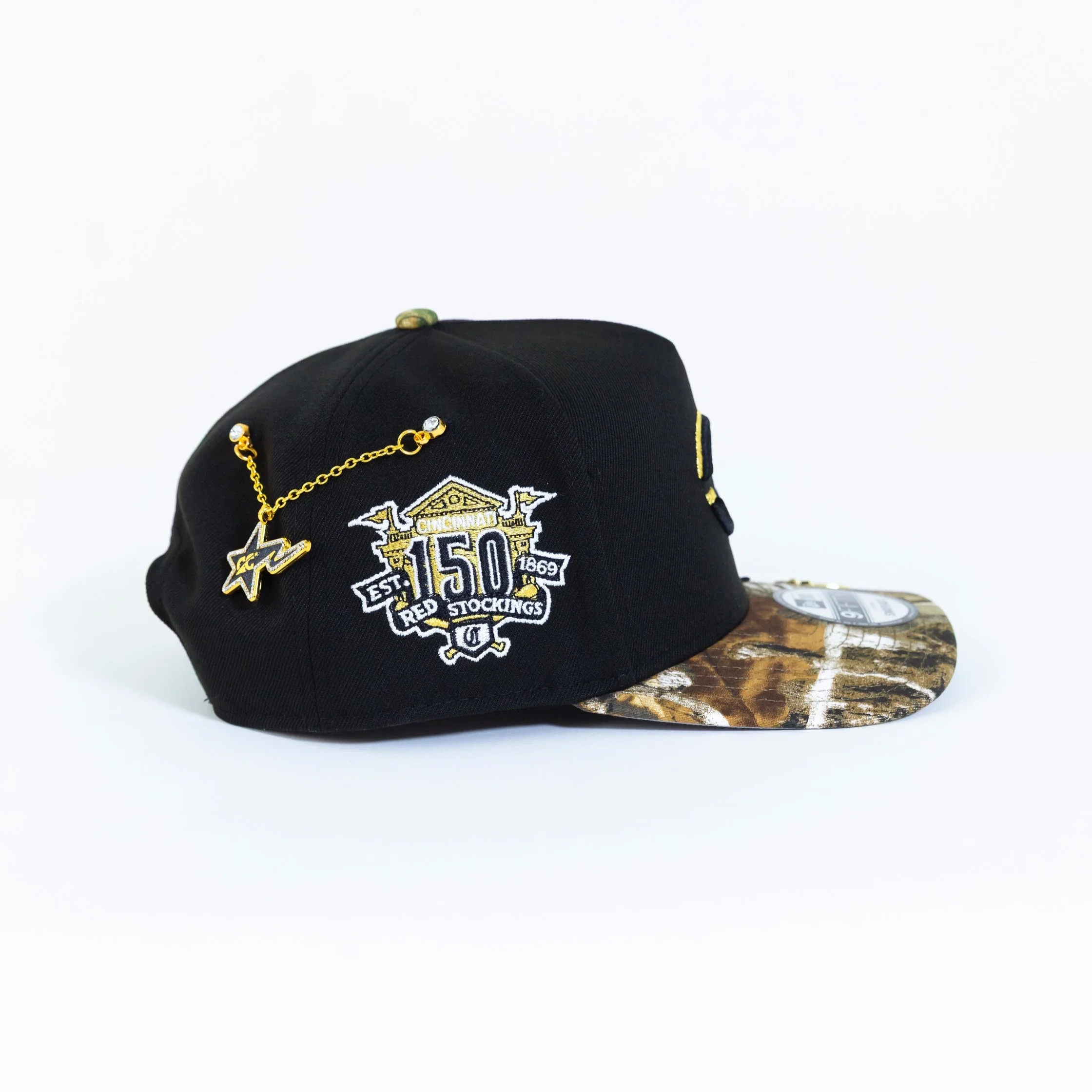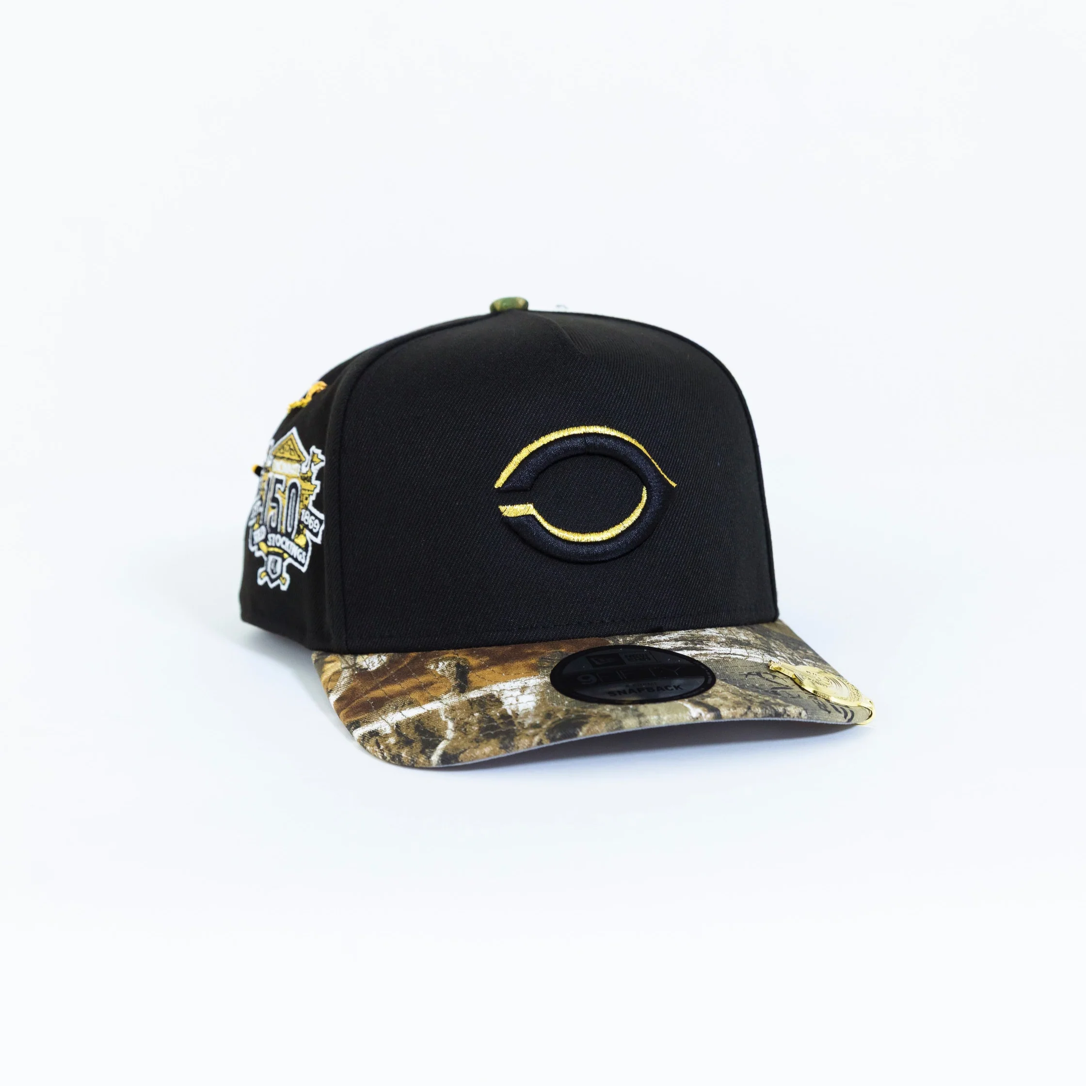 NEW ERA 9FIFTY A-FRAME BLACK/ REALTREE UPSIDE DOWN CINCINNATI REDS SNAPBACK W/ 150TH ANNIVERSARY SIDE PATCH