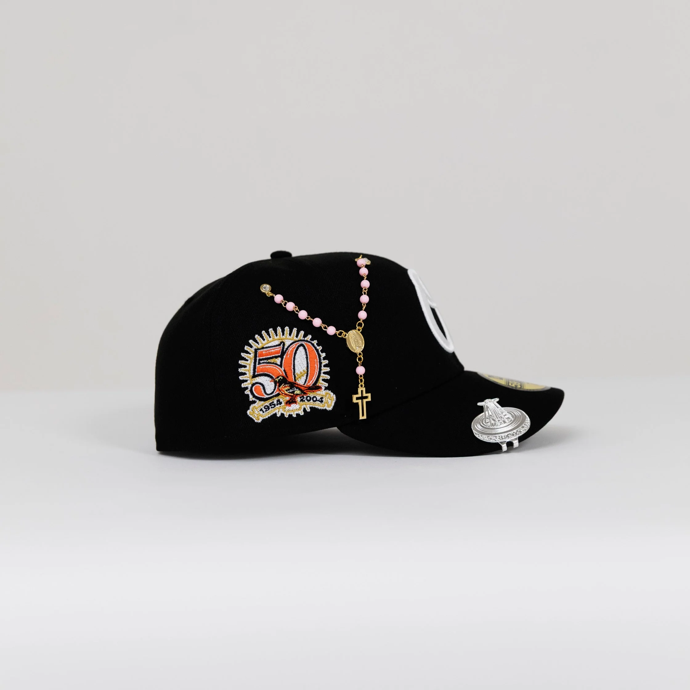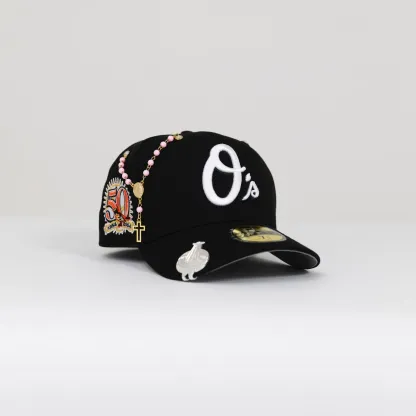 NEW ERA EXCLUSIVE 59FIFTY BLACK BALTIMORE ORIOLES W/ 50TH ANNIVERSARY SIDE PATCH