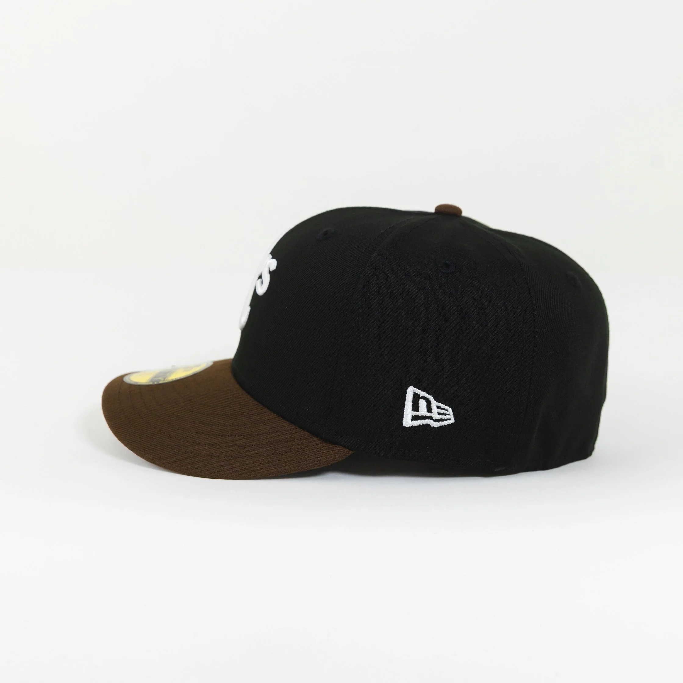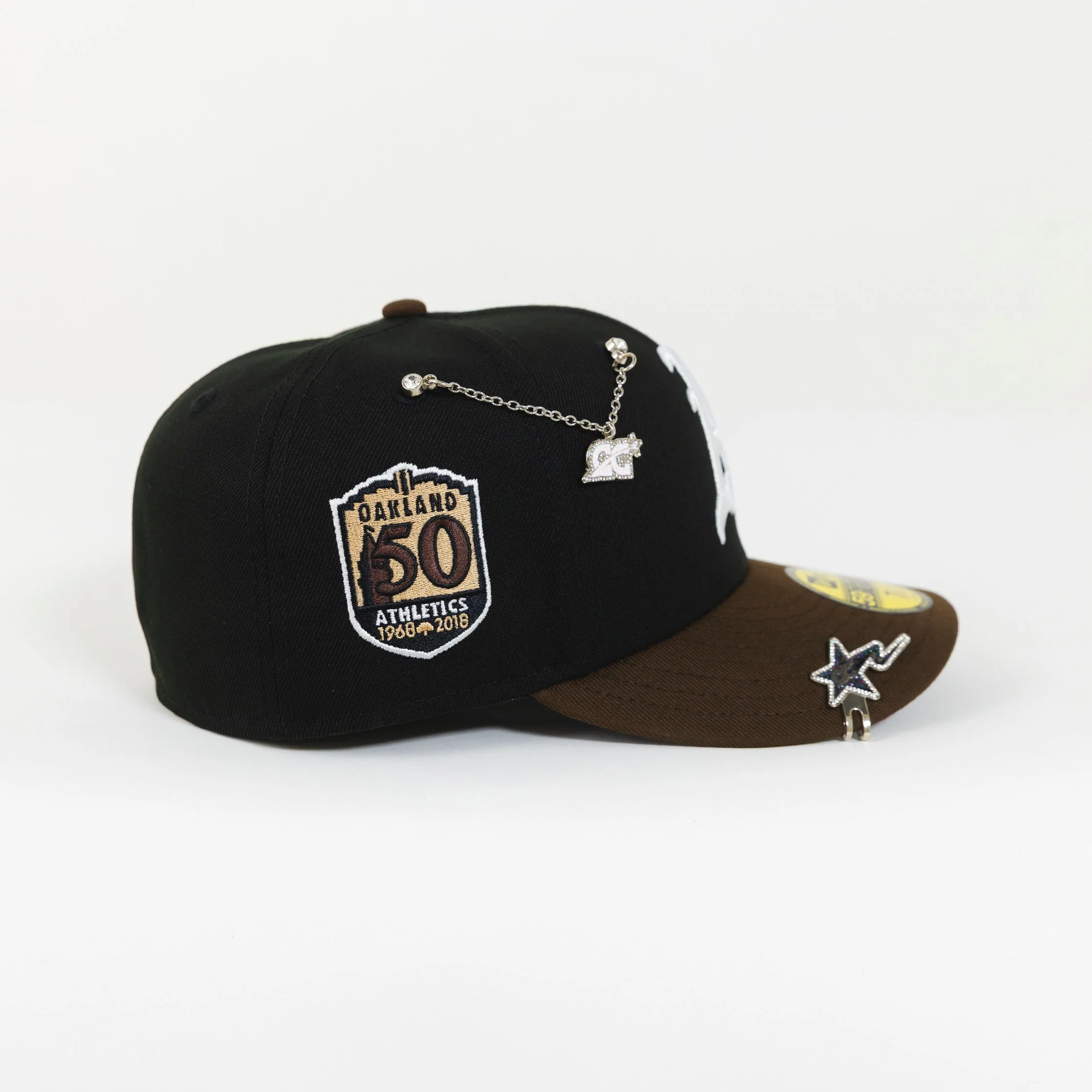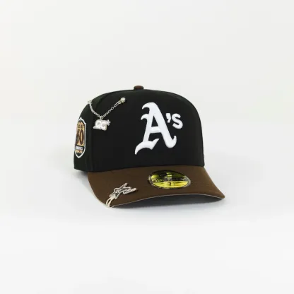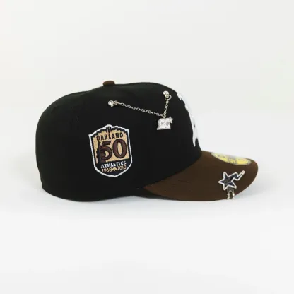 NEW ERA EXCLUSIVE 59FIFTY BLACK/ BROWN OAKLAND ATHLETICS W/ 50TH ANNIVERSARY SIDE PATCH