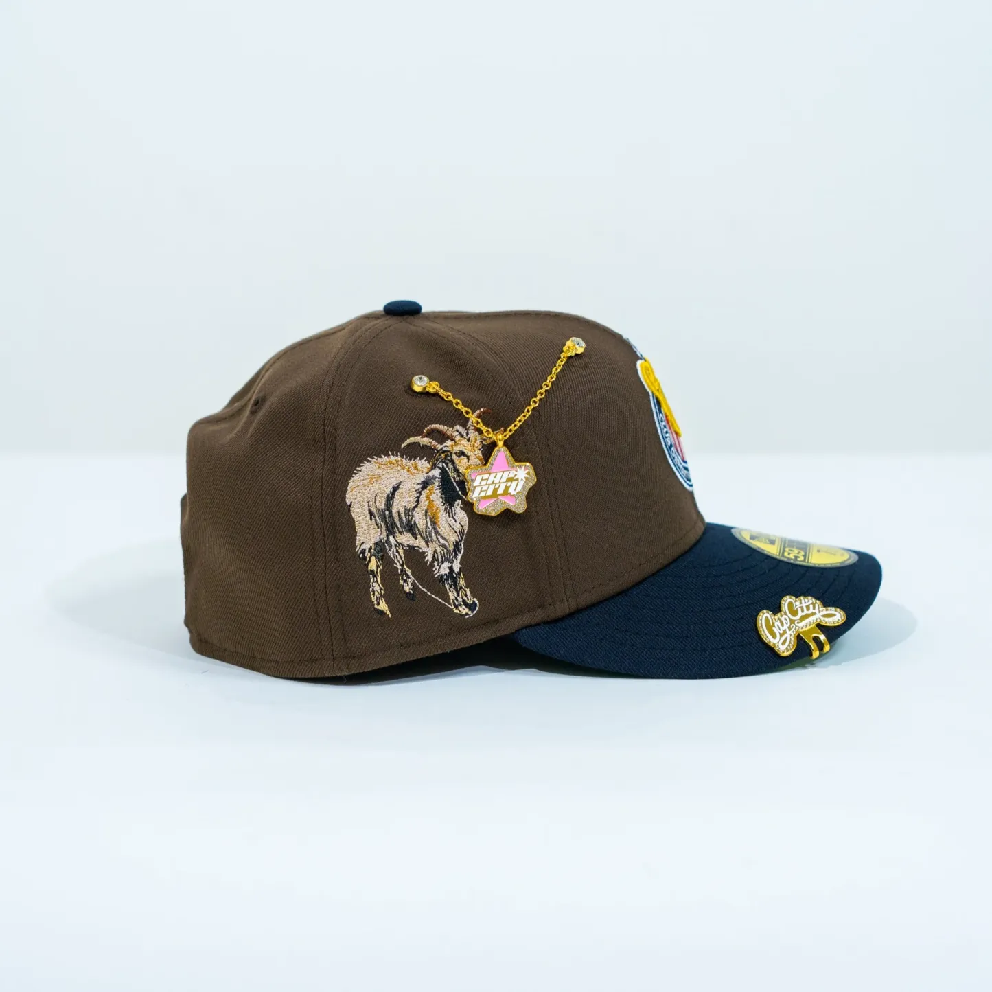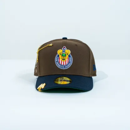 NEW ERA EXCLUSIVE 59FIFTY BROWN/ NAVY "CHIVAS DE GUADALAJARA" W/ CHIVO SIDE PATCH