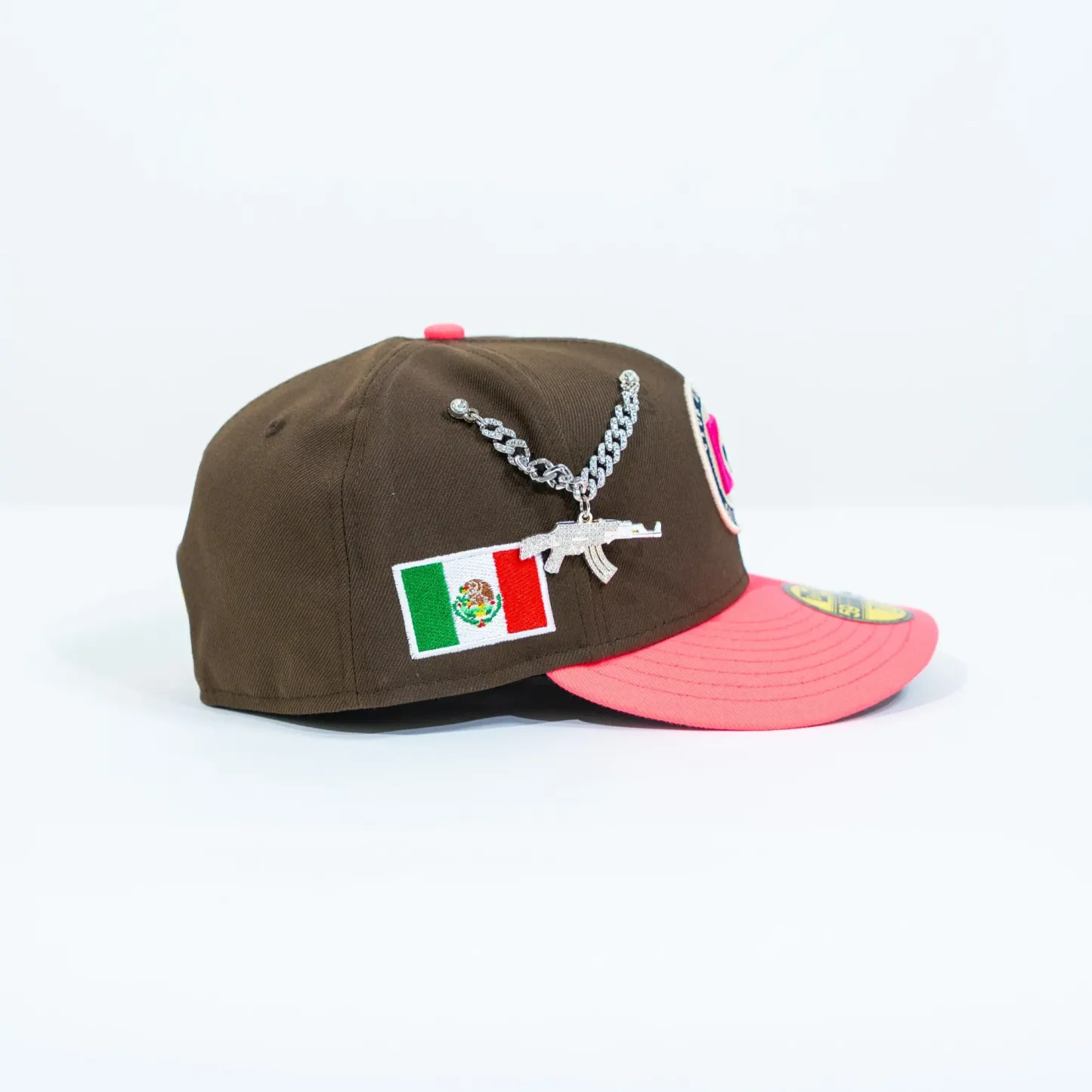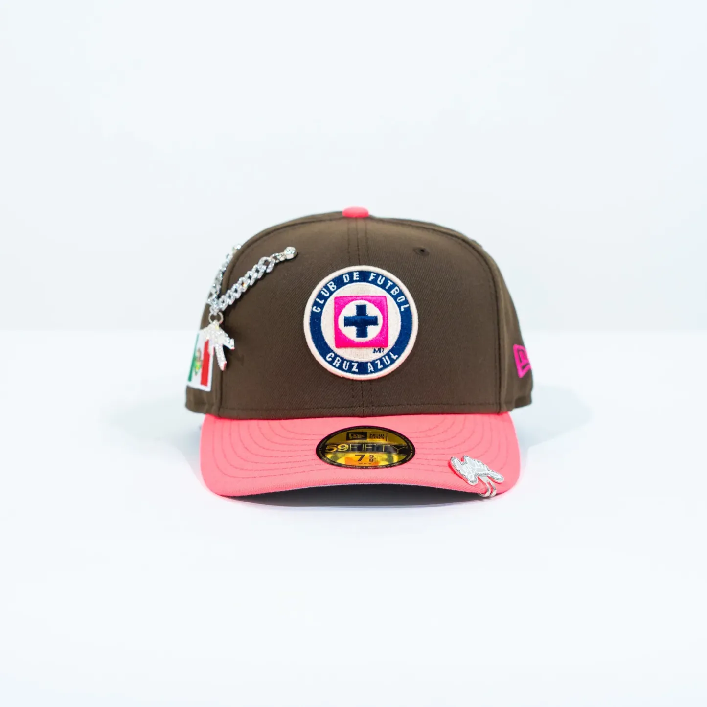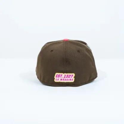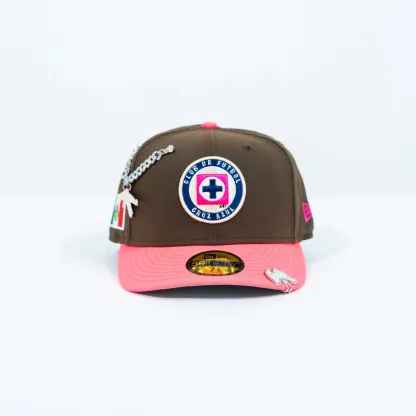 NEW ERA EXCLUSIVE 59FIFTY BROWN/ NEON PINK "CLUB CRUZ AZUL" W/ MEXICO FLAG SIDE PATCH