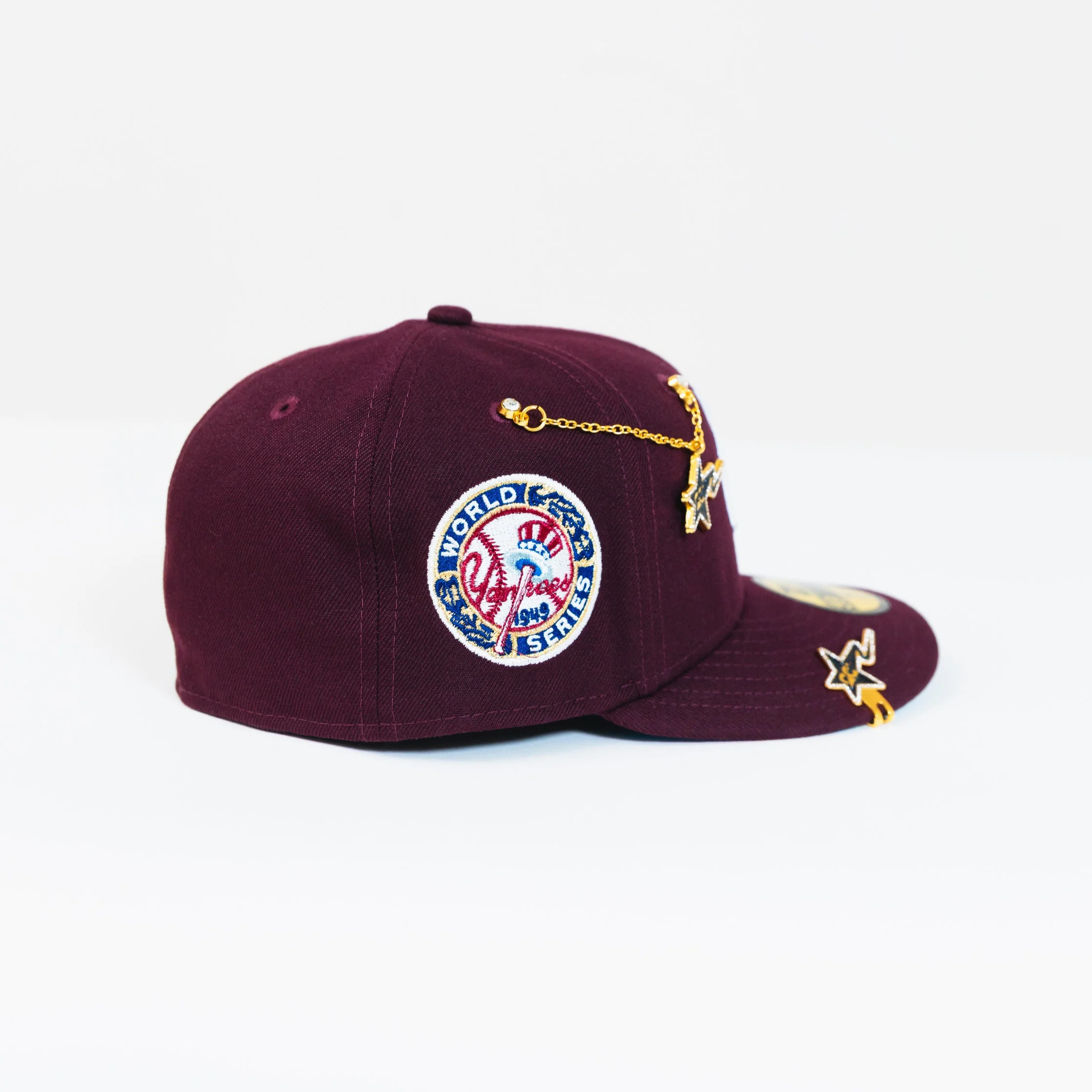 NEW ERA EXCLUSIVE 59FIFTY BURGUNDY NEW YORK YANKEES W/ 1949 WORLD SERIES SIDE PATCH