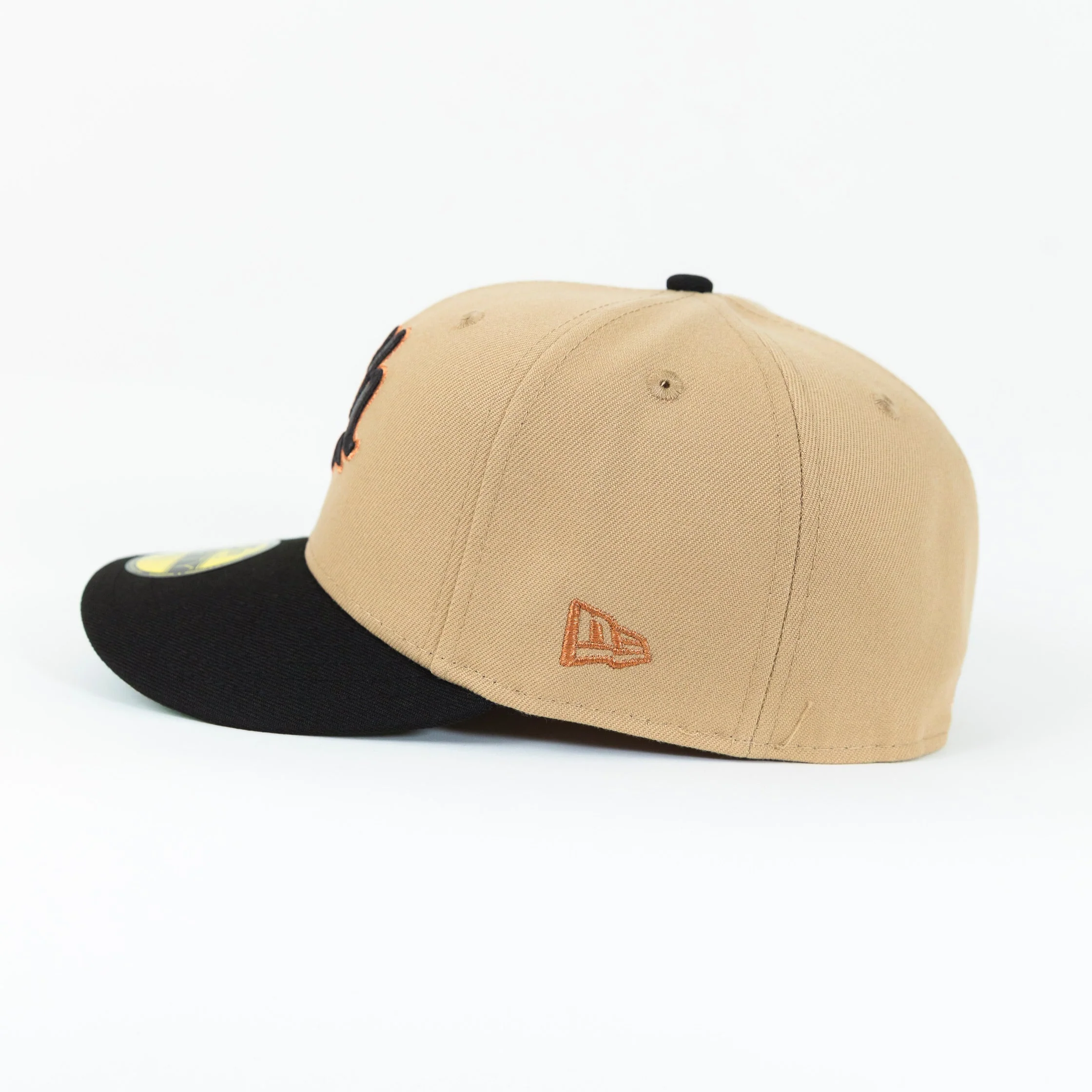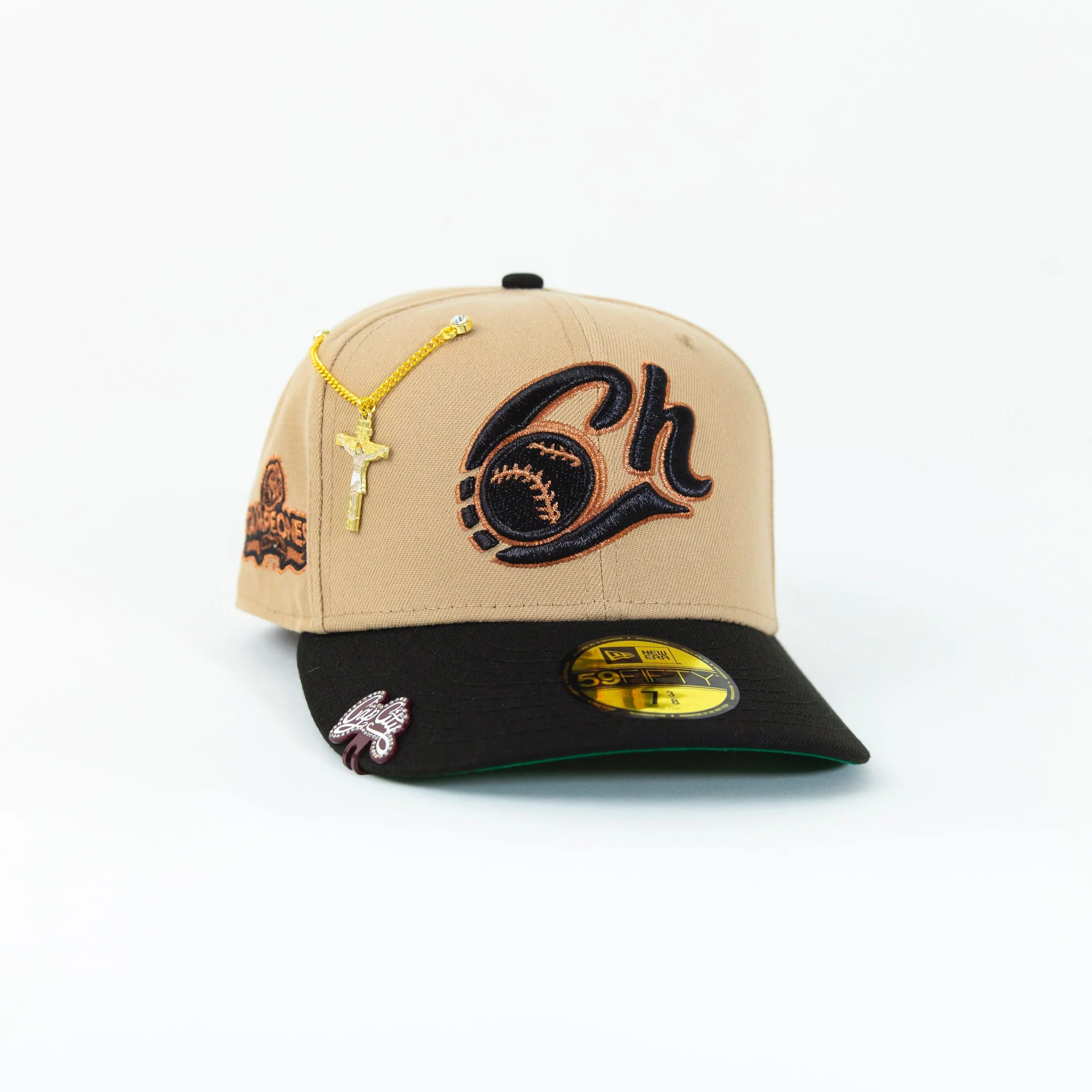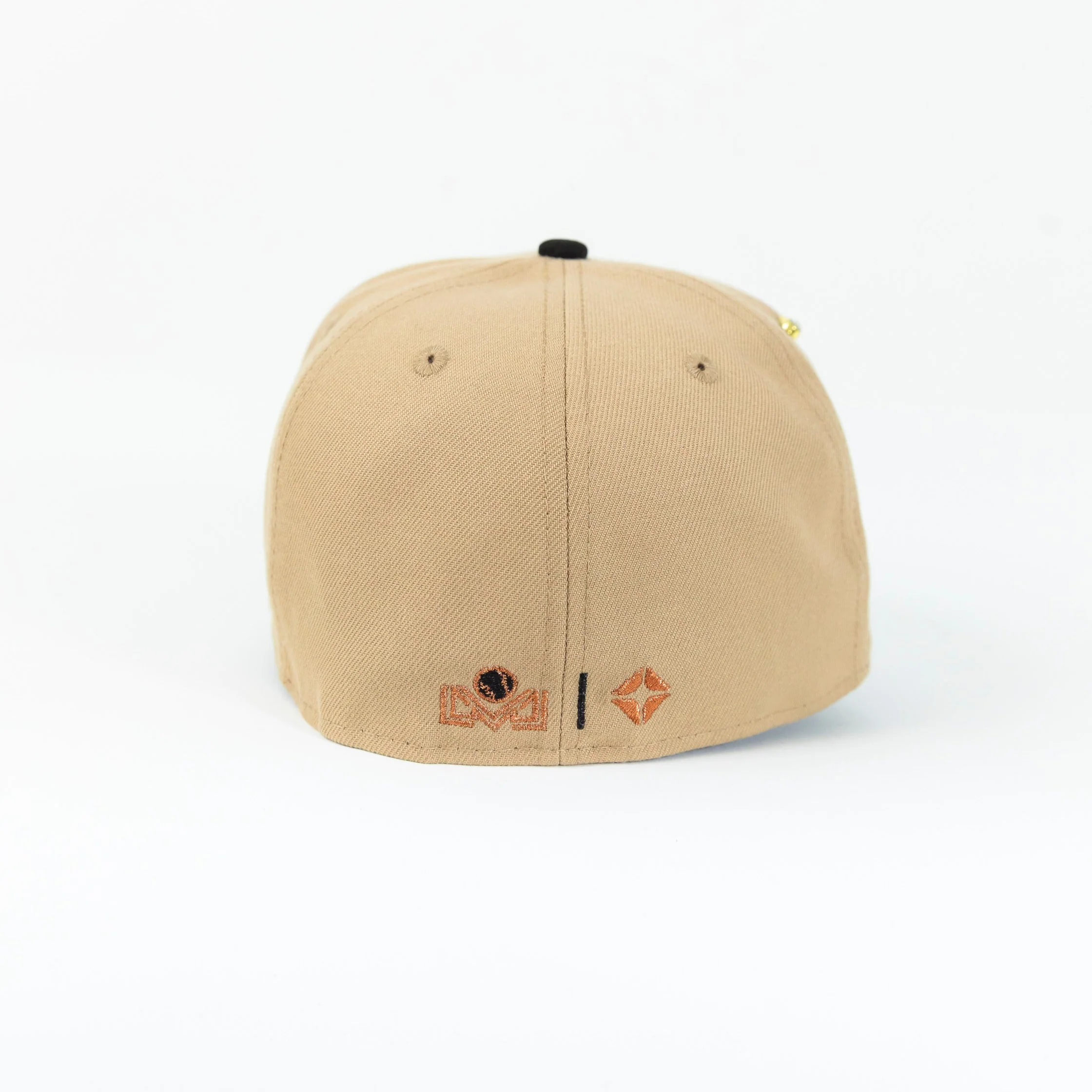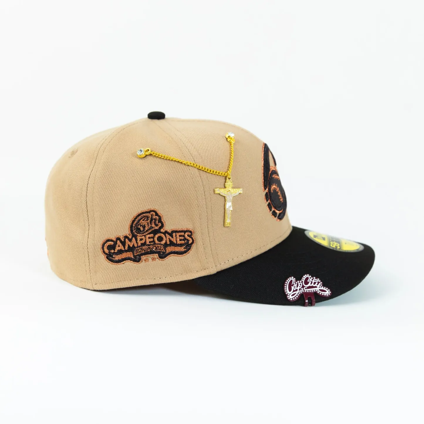 NEW ERA EXCLUSIVE 59FIFTY CAMEL BROWN/ BLACK CHARROS DE JALISCO W/ CAMPEONES SIDE PATCH