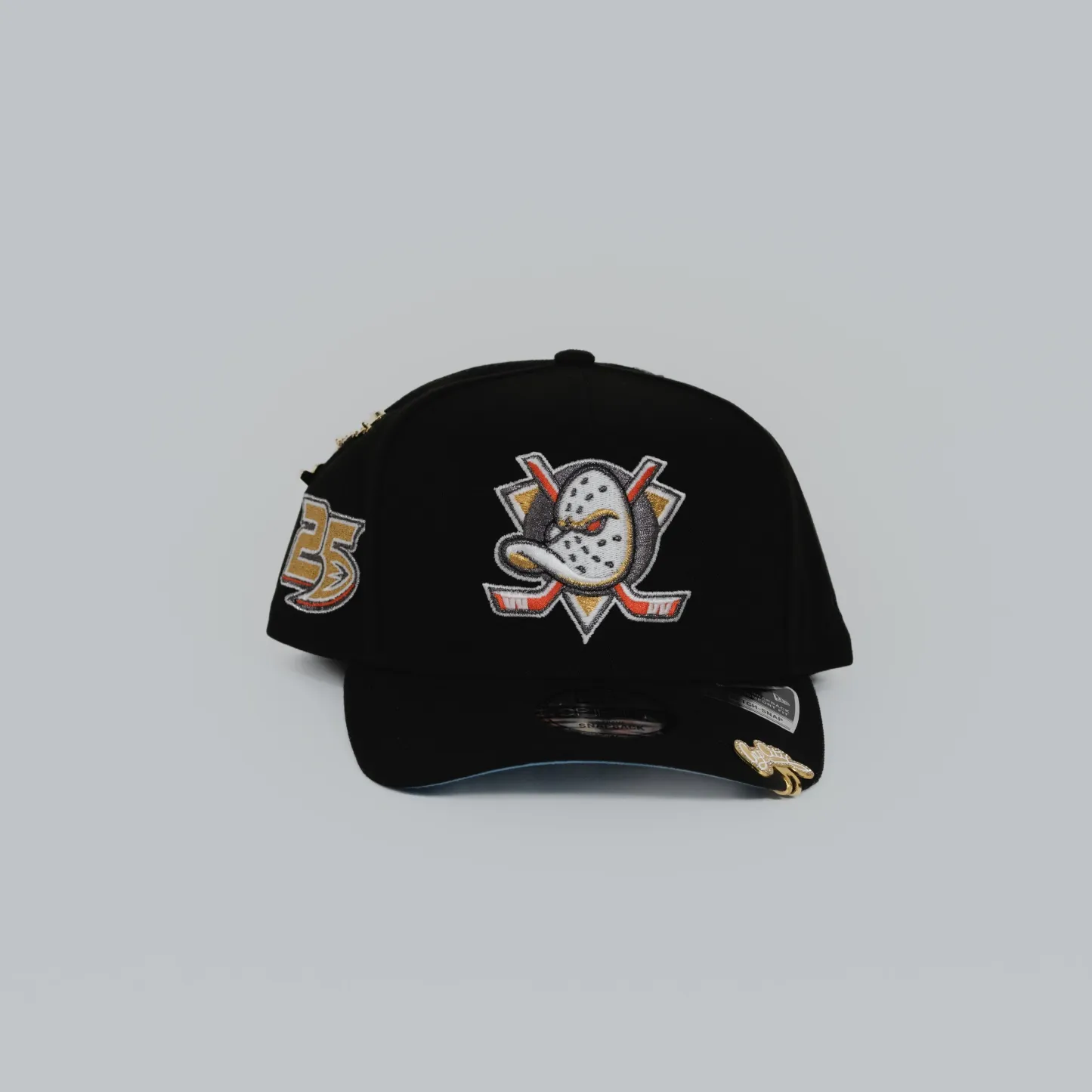 NEW ERA EXCLUSIVE 9FIFTY A-FRAME BLACK ANAHEIM DUCKS SNAPBACK W/ 25TH AMMIVERSARY SIDE PATCH