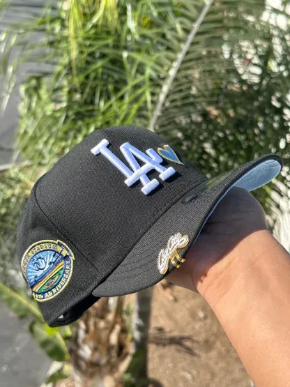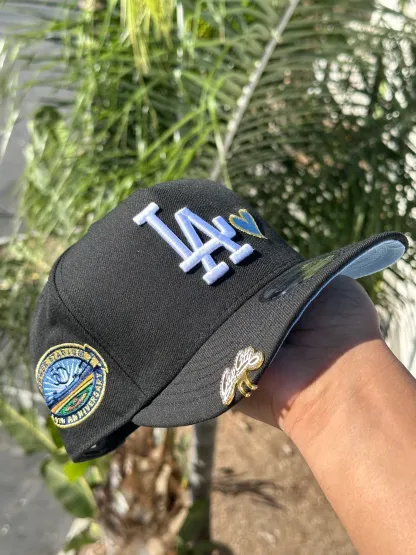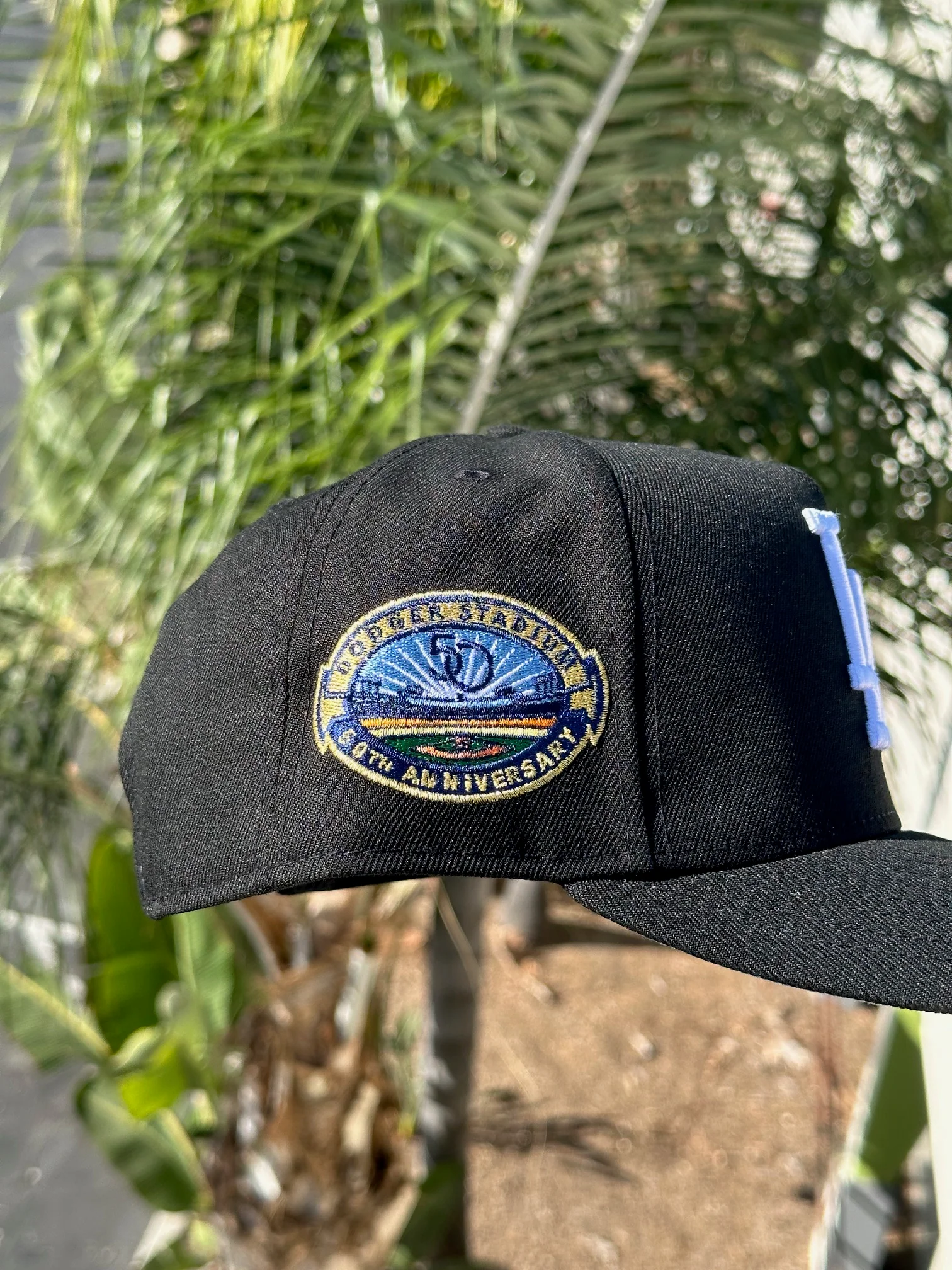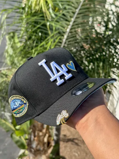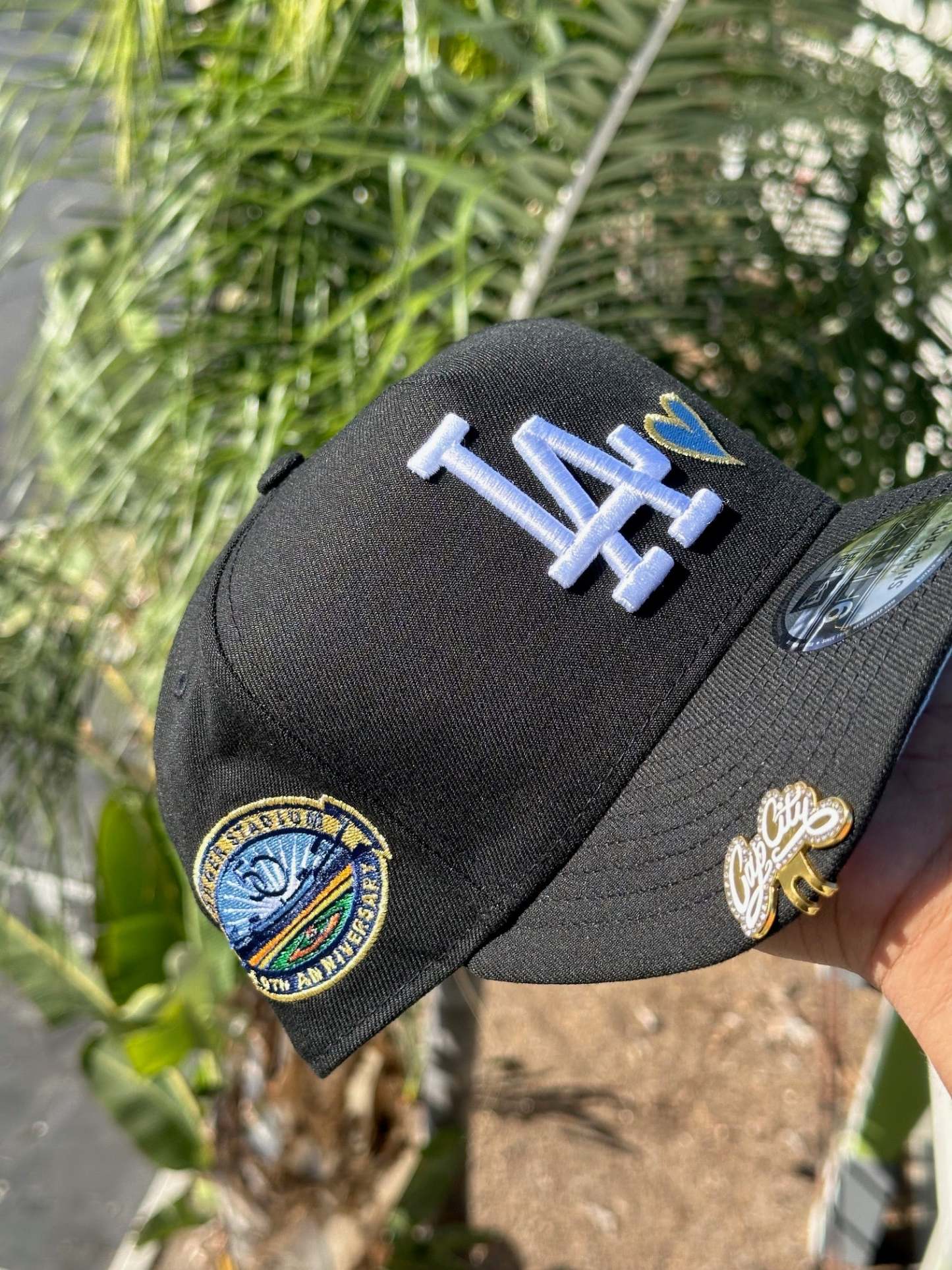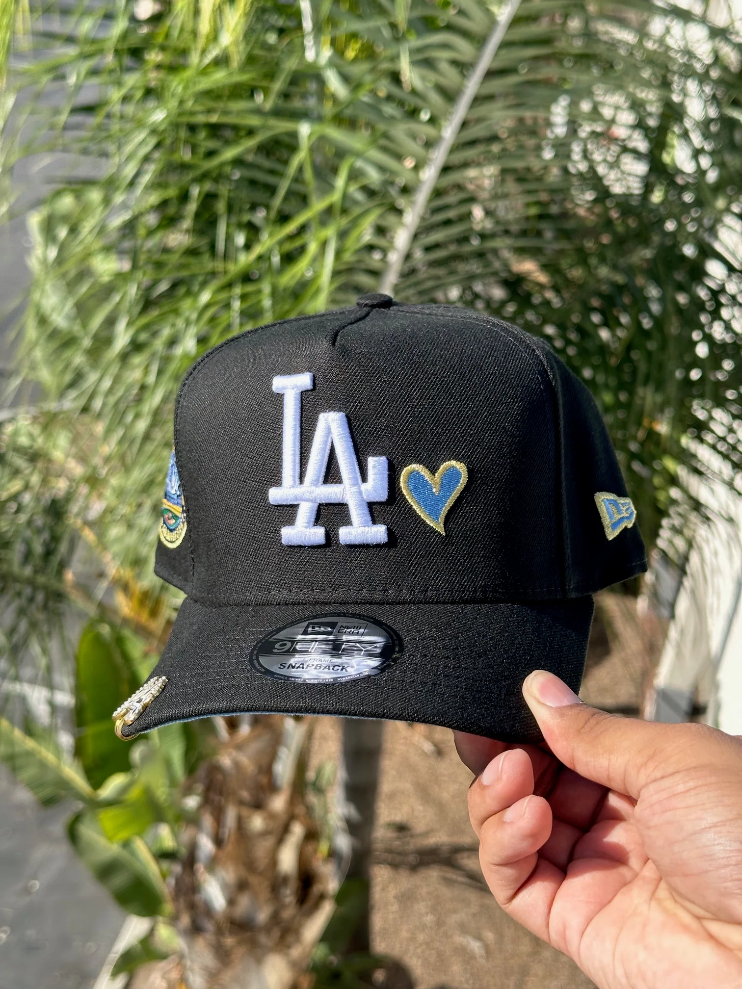 NEW ERA EXCLUSIVE 9FIFTY A-FRAME BLACK LOS ANGELES DODGERS SNAPBACK W/ ICY HEART + 50TH ANNIVERSARY SIDE PATCH
