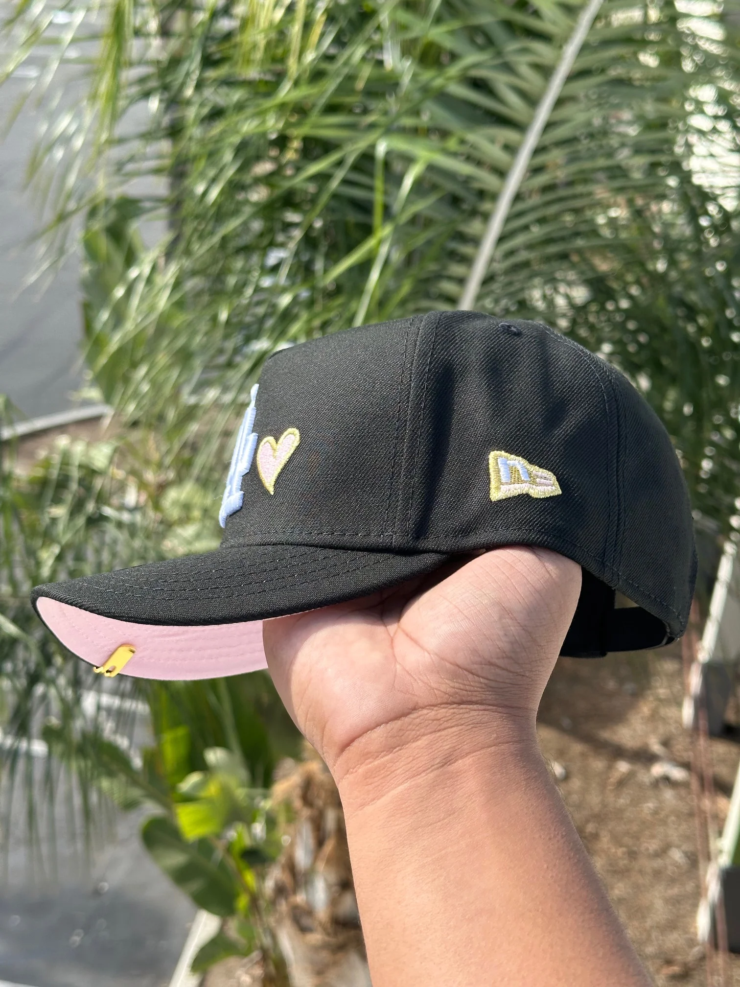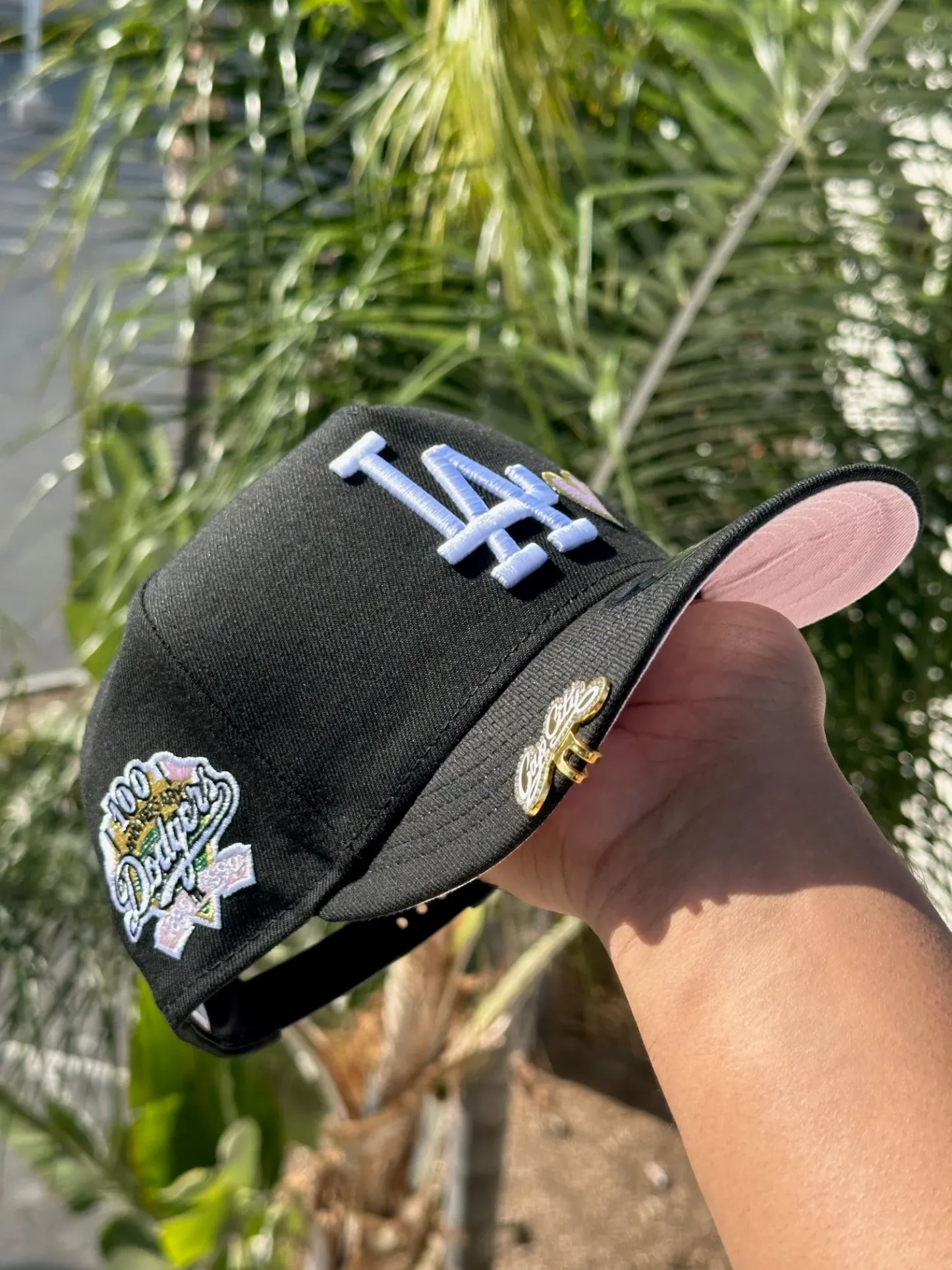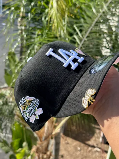 NEW ERA EXCLUSIVE 9FIFTY A-FRAME BLACK LOS ANGELES DODGERS W/ PINK HEART + 100TH ANNIVERSARY SIDE PATCH