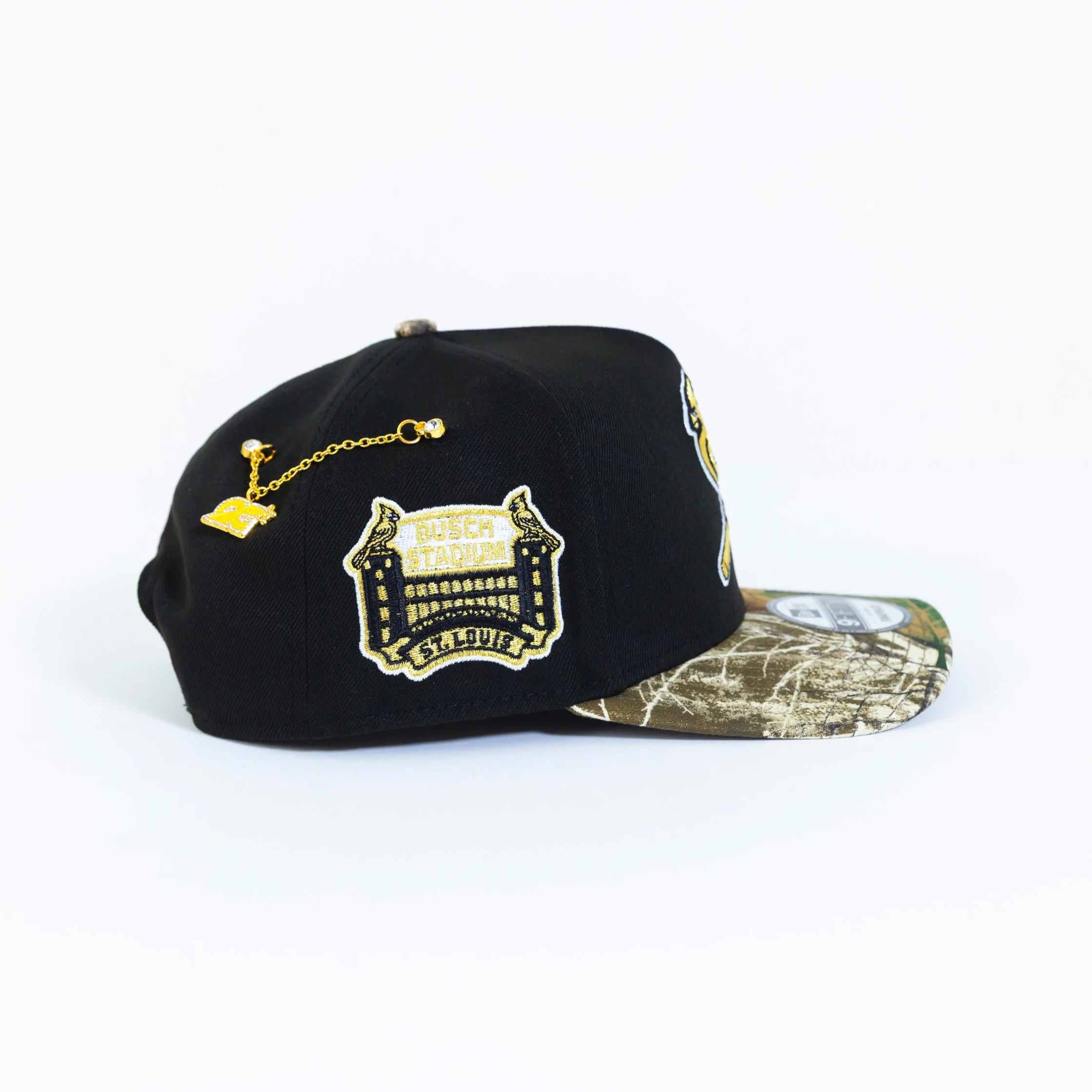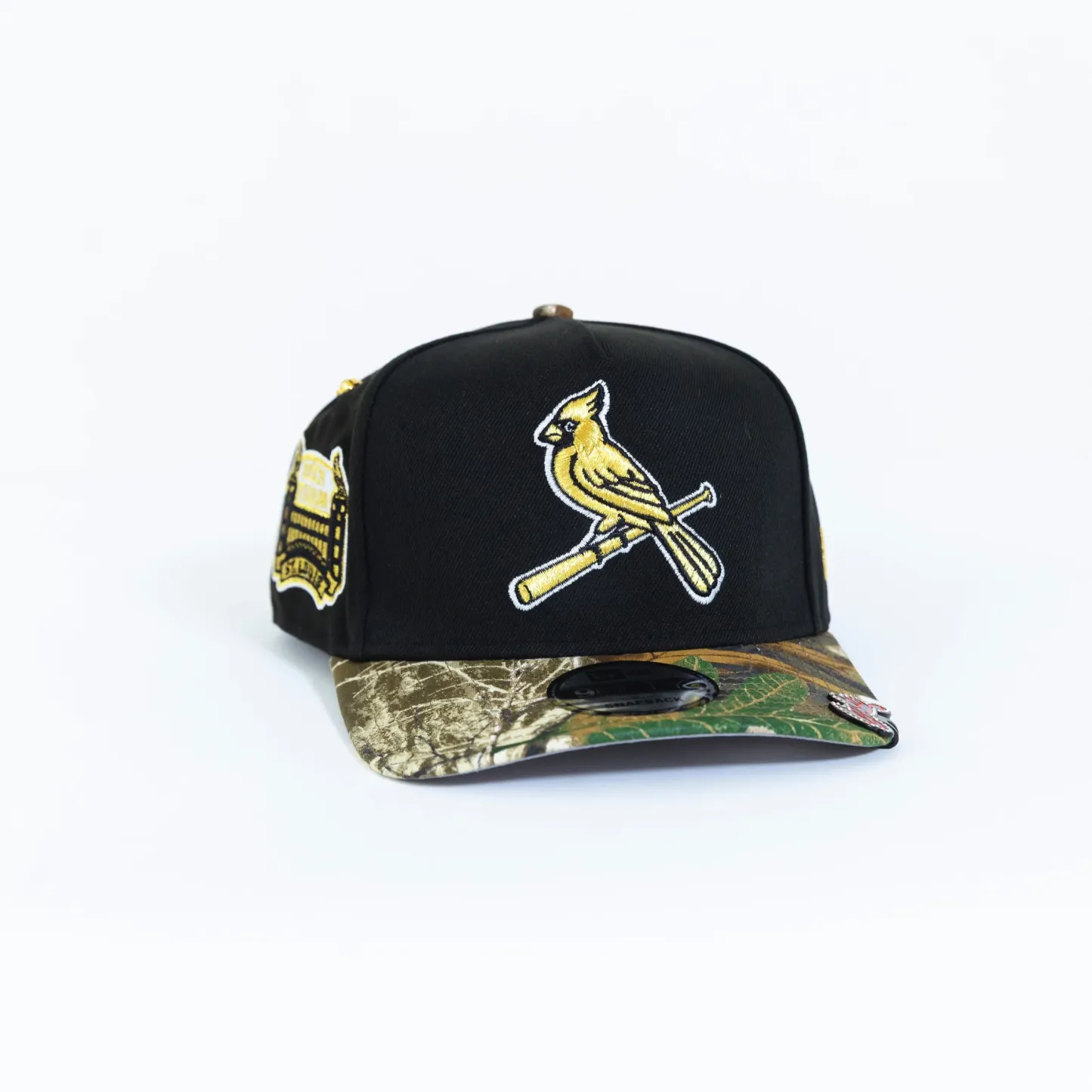 NEW ERA EXCLUSIVE 9FIFTY A-FRAME BLACK/ REALTREE ST LOUIS CARDINALS SNAPBACK W/ BUSCH STADIUM SIDE PATCH