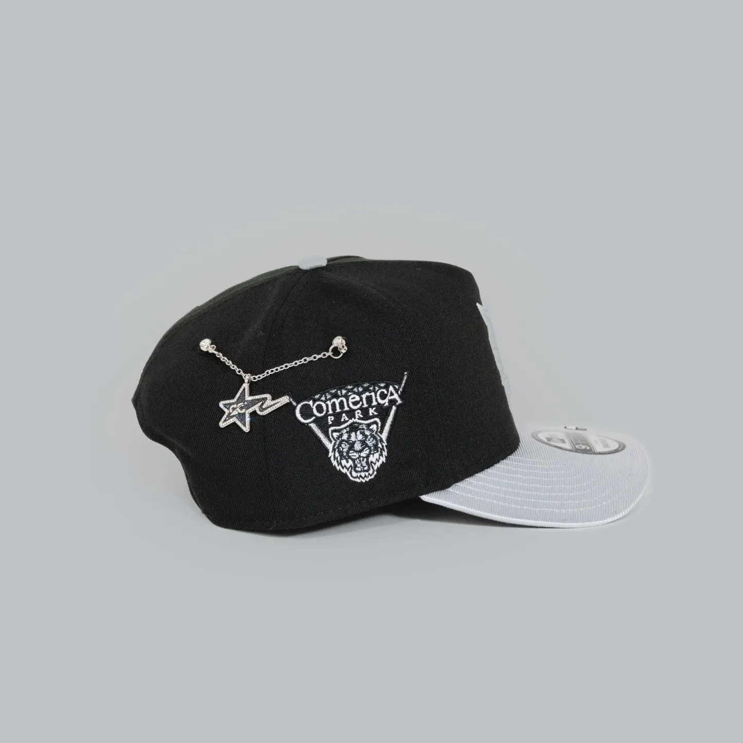 NEW ERA EXCLUSIVE 9FIFTY A-FRAME BLACK/ SILVER DETROIT TIGERS SNAPBACK W/ COMERICA PARK SIDE PATCH