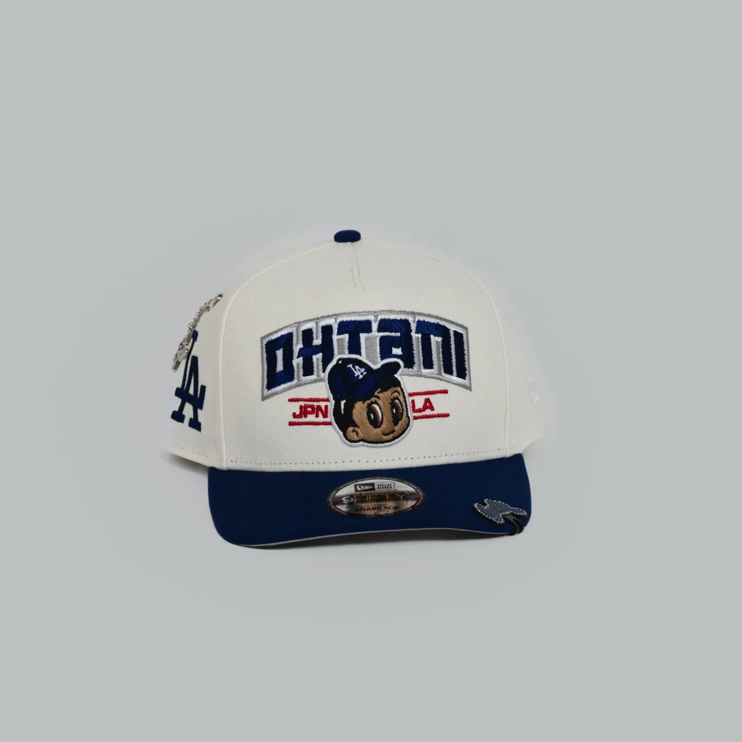 NEW ERA EXCLUSIVE 9FIFTY A-FRAME CHROME/ BLUE LOS ANGELES DODGERS "SHOHEI OHTANI"SCRIPT W/ LA LOGO SIDE PATCH