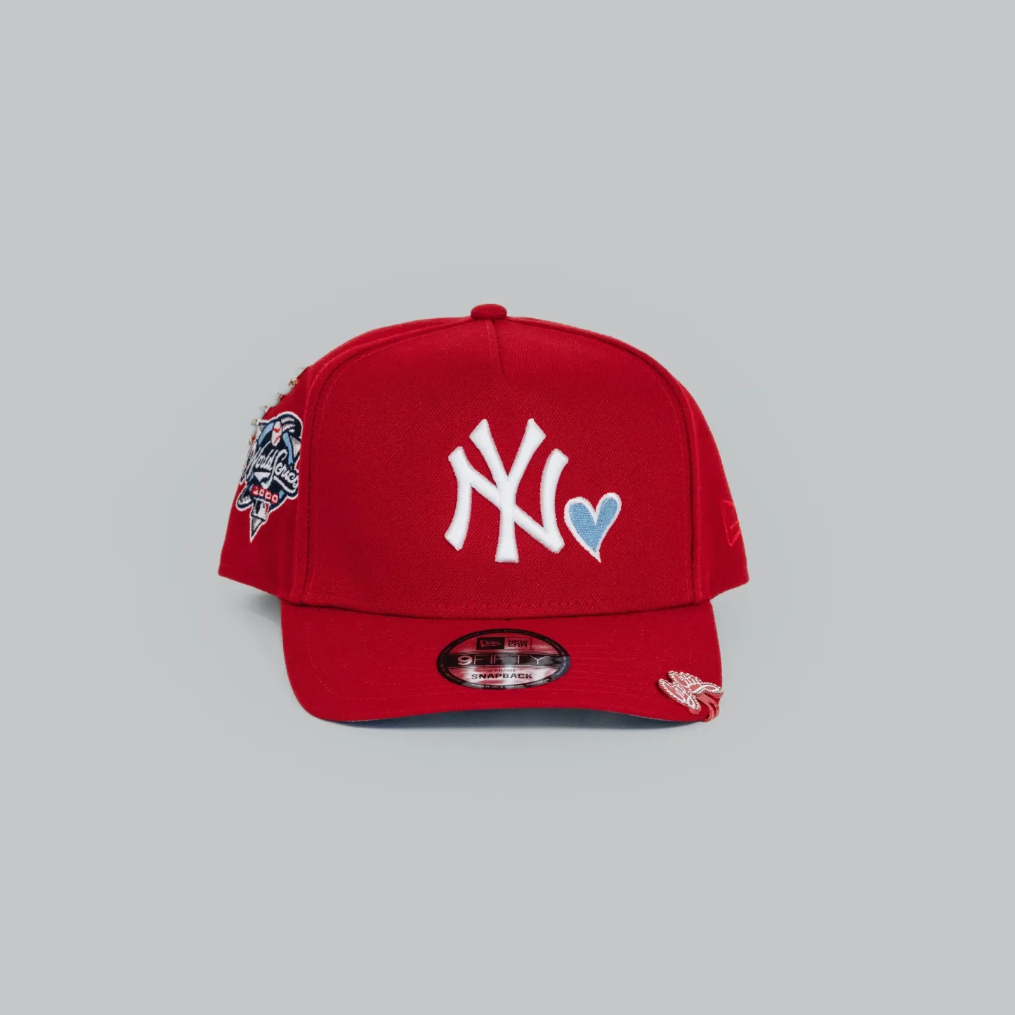 NEW ERA EXCLUSIVE 9FIFTY A-FRAME RED NEW YORK YANKEES SNAPBACK W/ ICY HEART + 2000 WORLD SERIES SIDE PATCH
