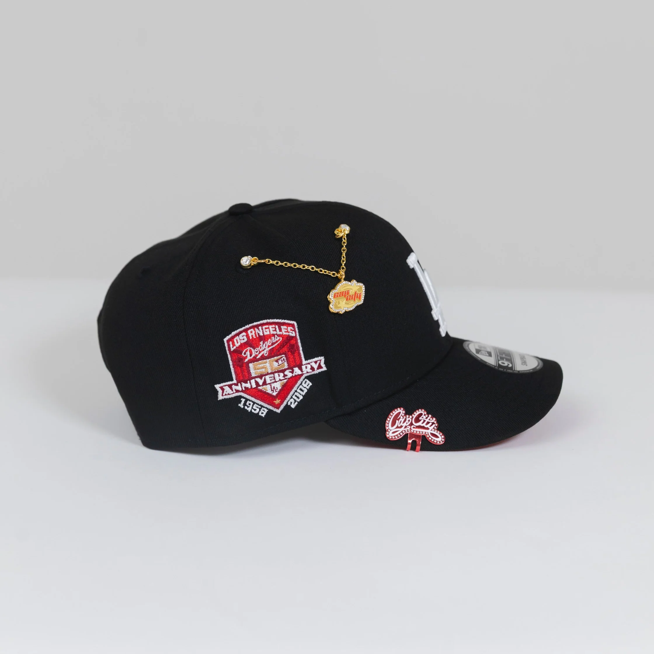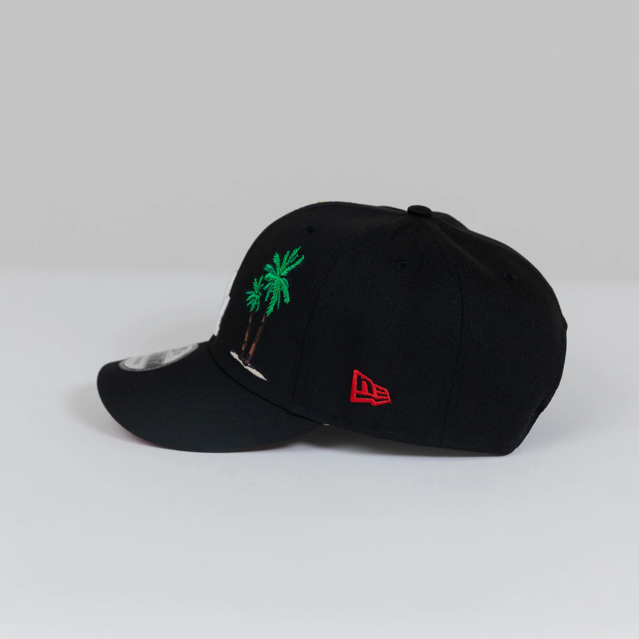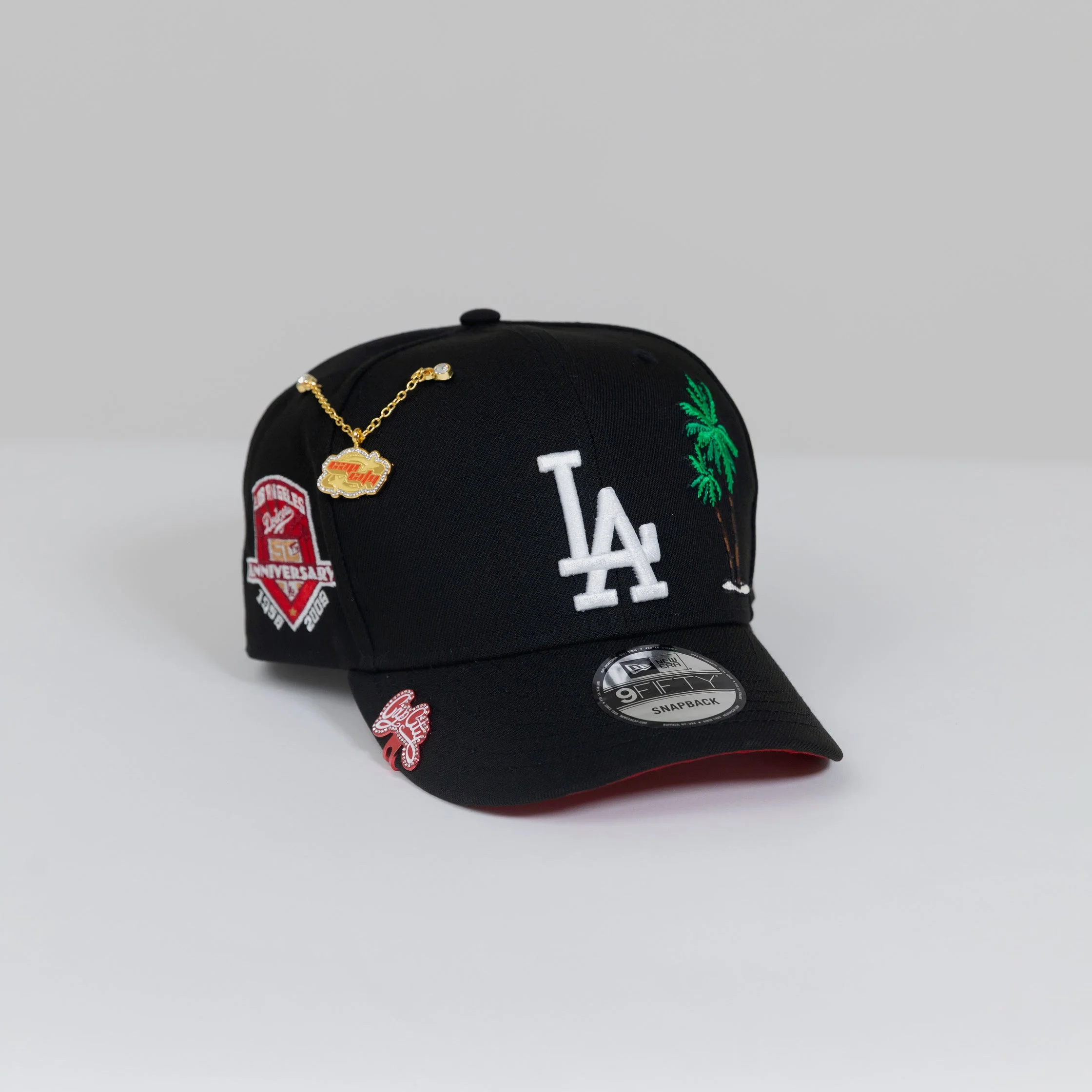 NEW ERA EXCLUSIVE 9FIFTY BLACK LOS ANGELES DODGERS SNAPBACK W/ PALM TREES + 50TH ANNIVERSARY SIDE PATCH