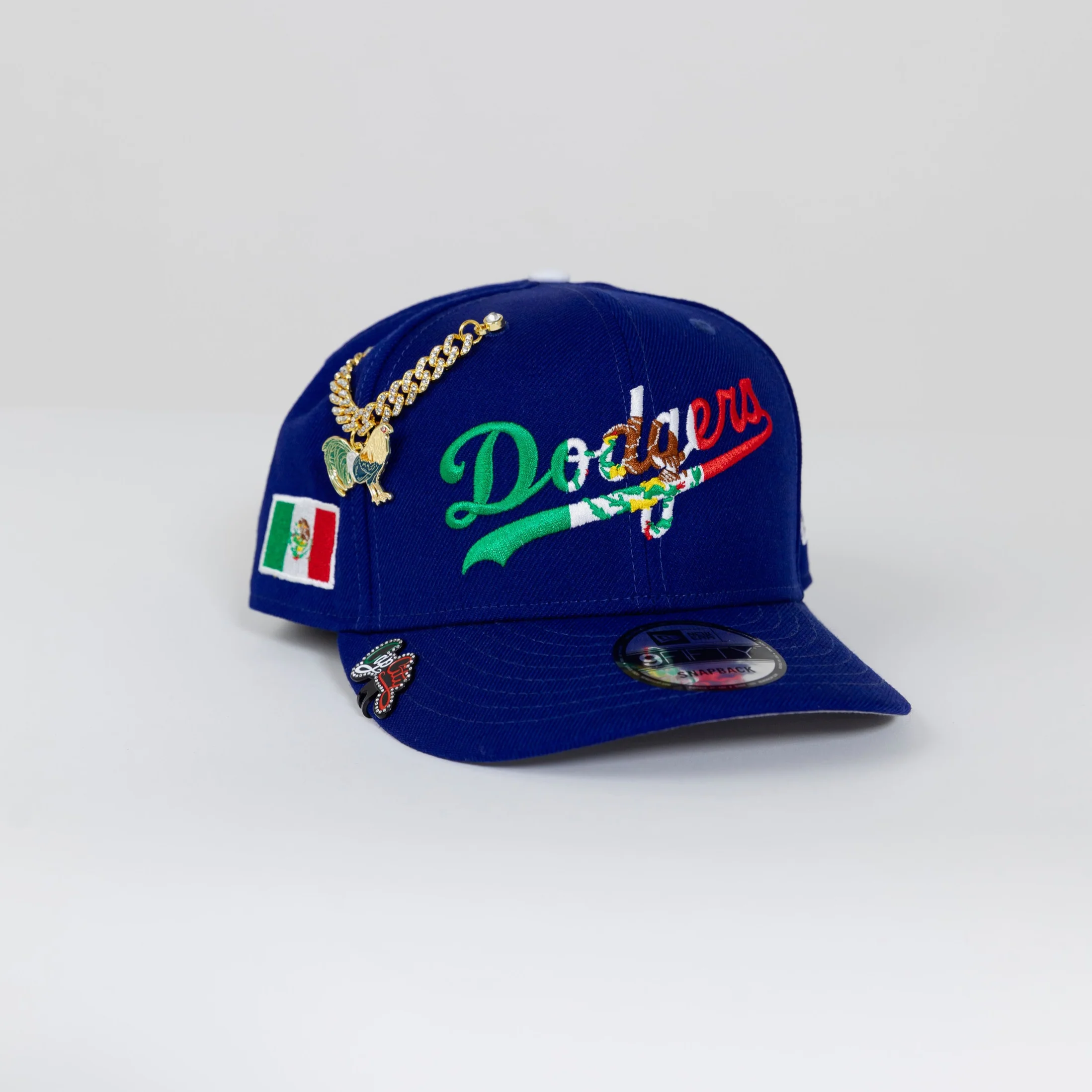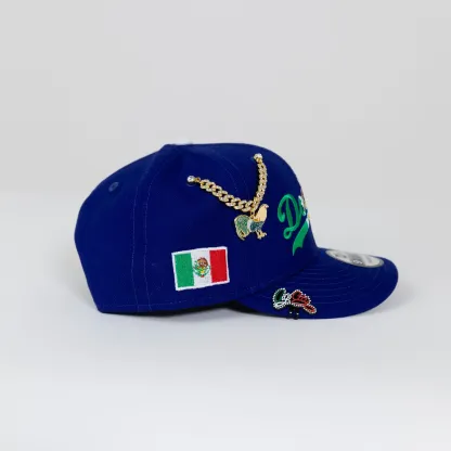 NEW ERA EXCLUSIVE 9FIFTY BLUE LOS ANGELES DODGERS SCRIPT SNAPBACK W/ MEXICAN FLAG LOGO + MEXICO FLAG SIDE PATCH