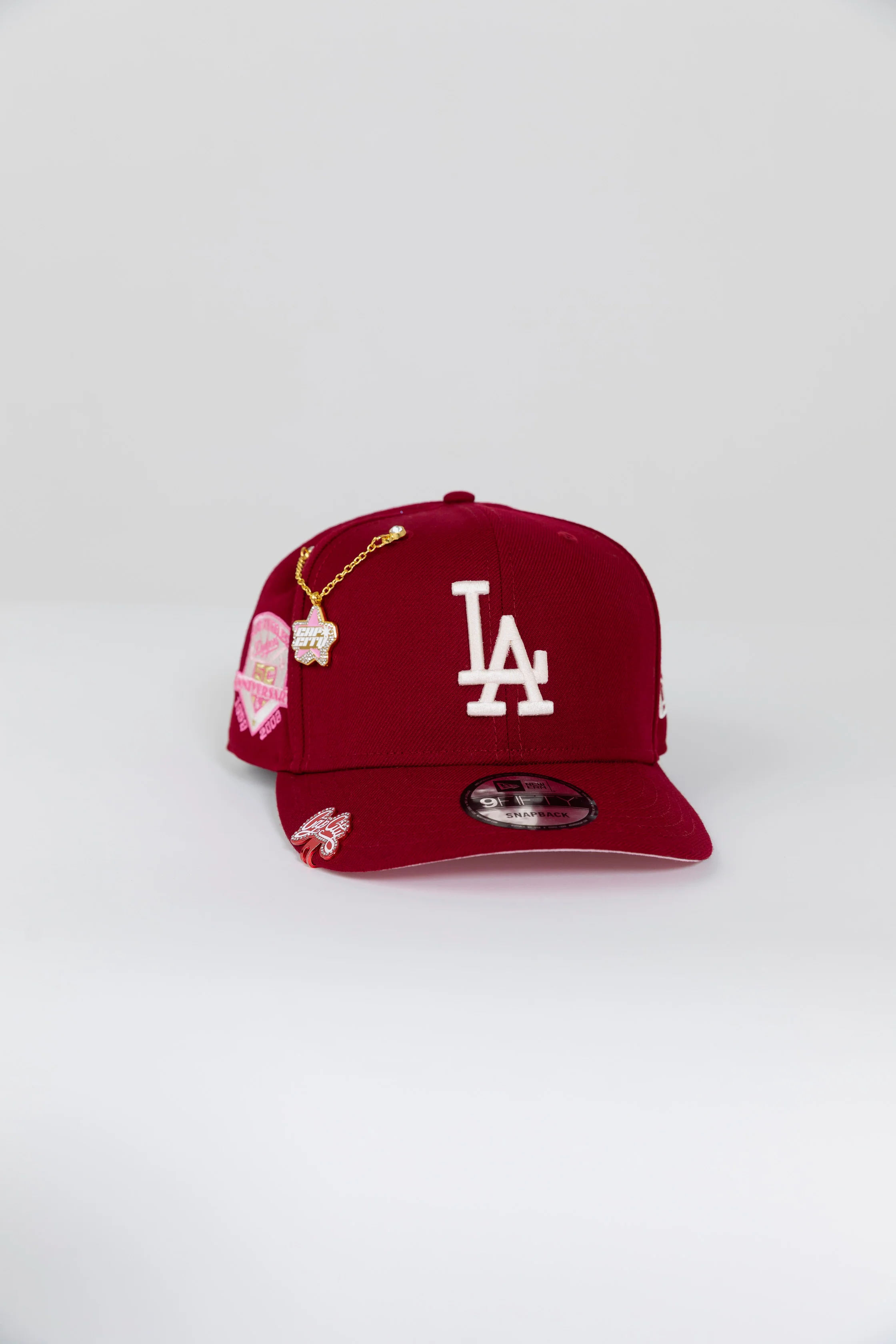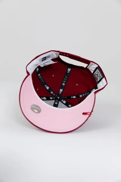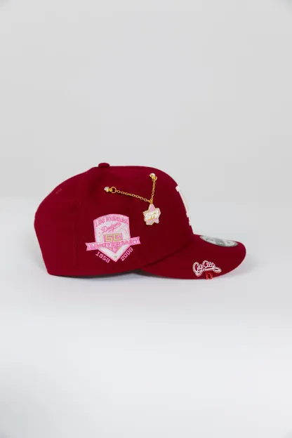 NEW ERA EXCLUSIVE 9FIFTY BURGUNDY LOS ANGELES DODGERS SNAPBACK W/ 50TH ANNIVERSARY SIDE PATCH