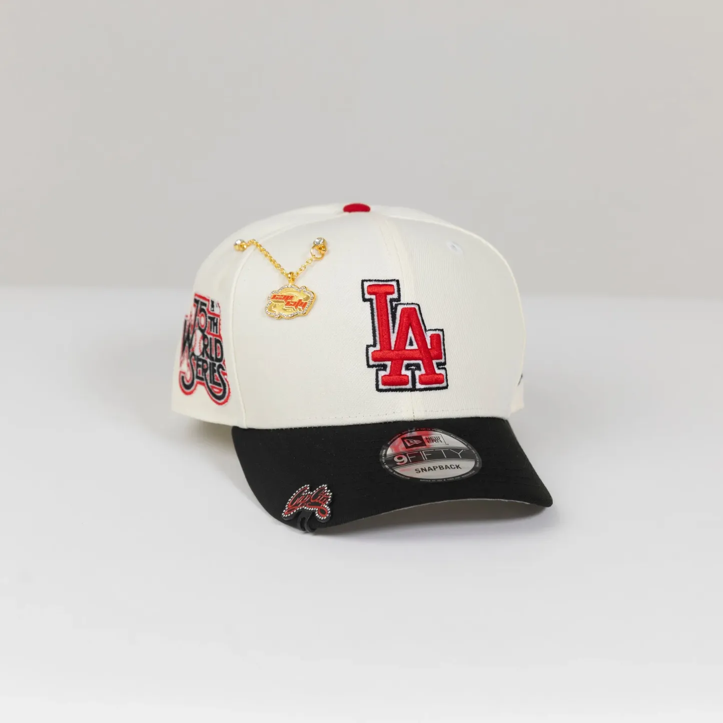 NEW ERA EXCLUSIVE 9FIFTY CHROME/ BLACK LOS ANGELES DODGERS SNAPBACK W/ 75TH WORLD SERIES SIDE PATCH