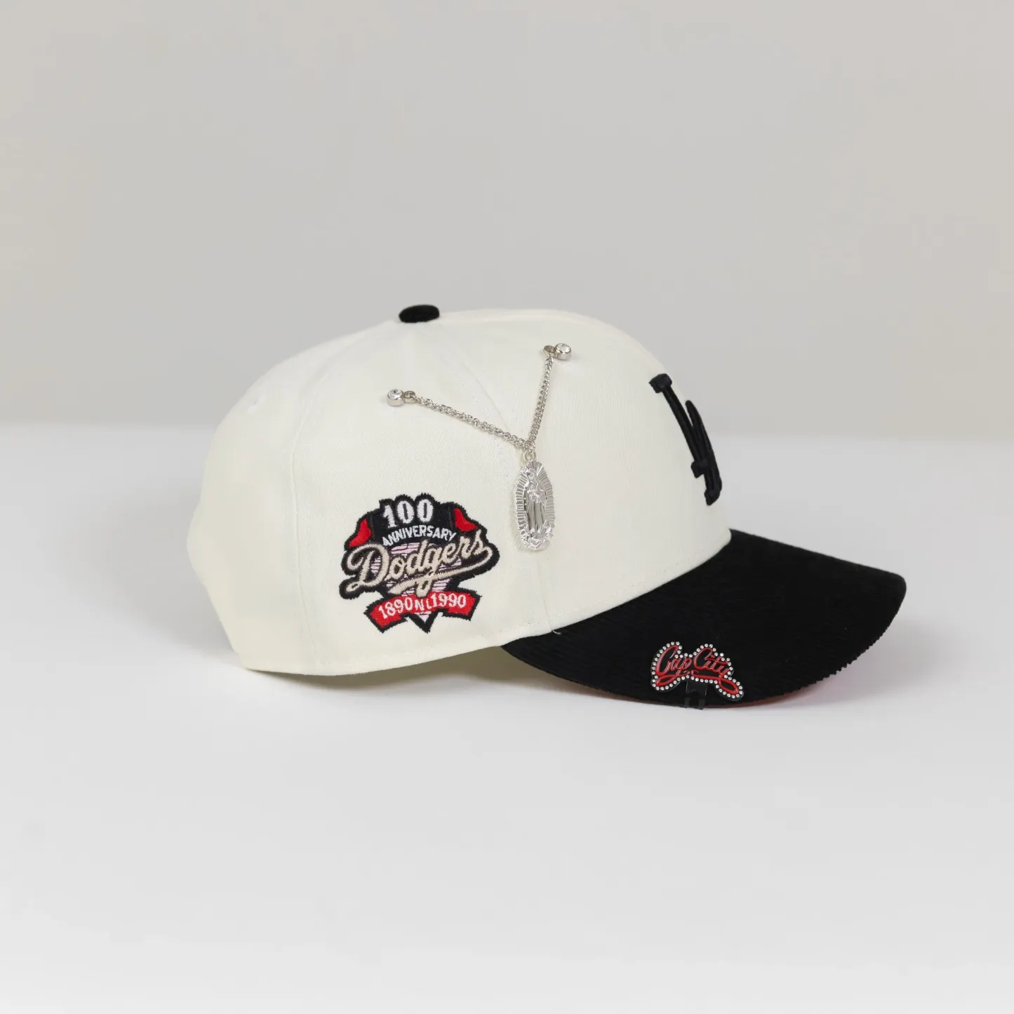 NEW ERA EXCLUSIVE 9FIFTY CHROME/ CORDUROY LOS ANGELES DODGERS SNAPBACK W/ 100TH ANNIVERSARY SIDE PATCH
