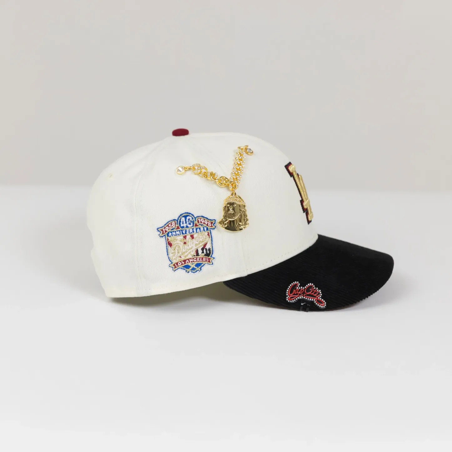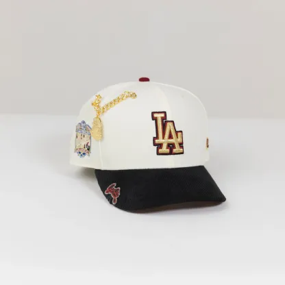 NEW ERA EXCLUSIVE 9FIFTY CHROME/ CORDUROY LOS ANGELES DODGERS SNAPBACK W/ 40TH ANNIVERSARY SIDE PATCH