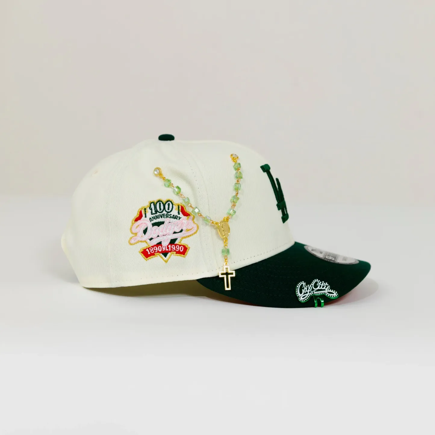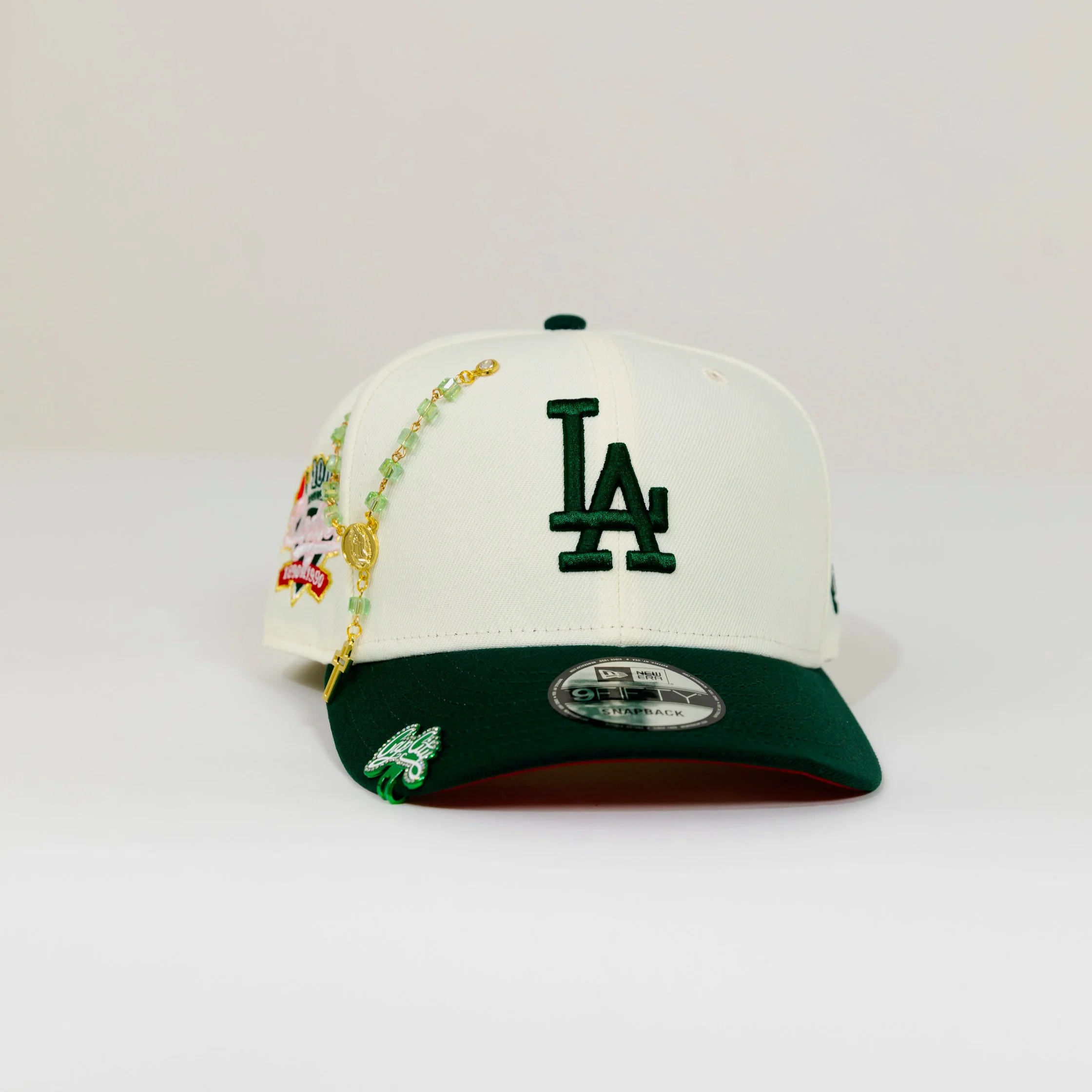 NEW ERA EXCLUSIVE 9FIFTY CHROME/ FOREST GREEN LOS ANGELES DODGERS SNAPBACK W/ 100TH ANNIVERSARY SIDE PATCH