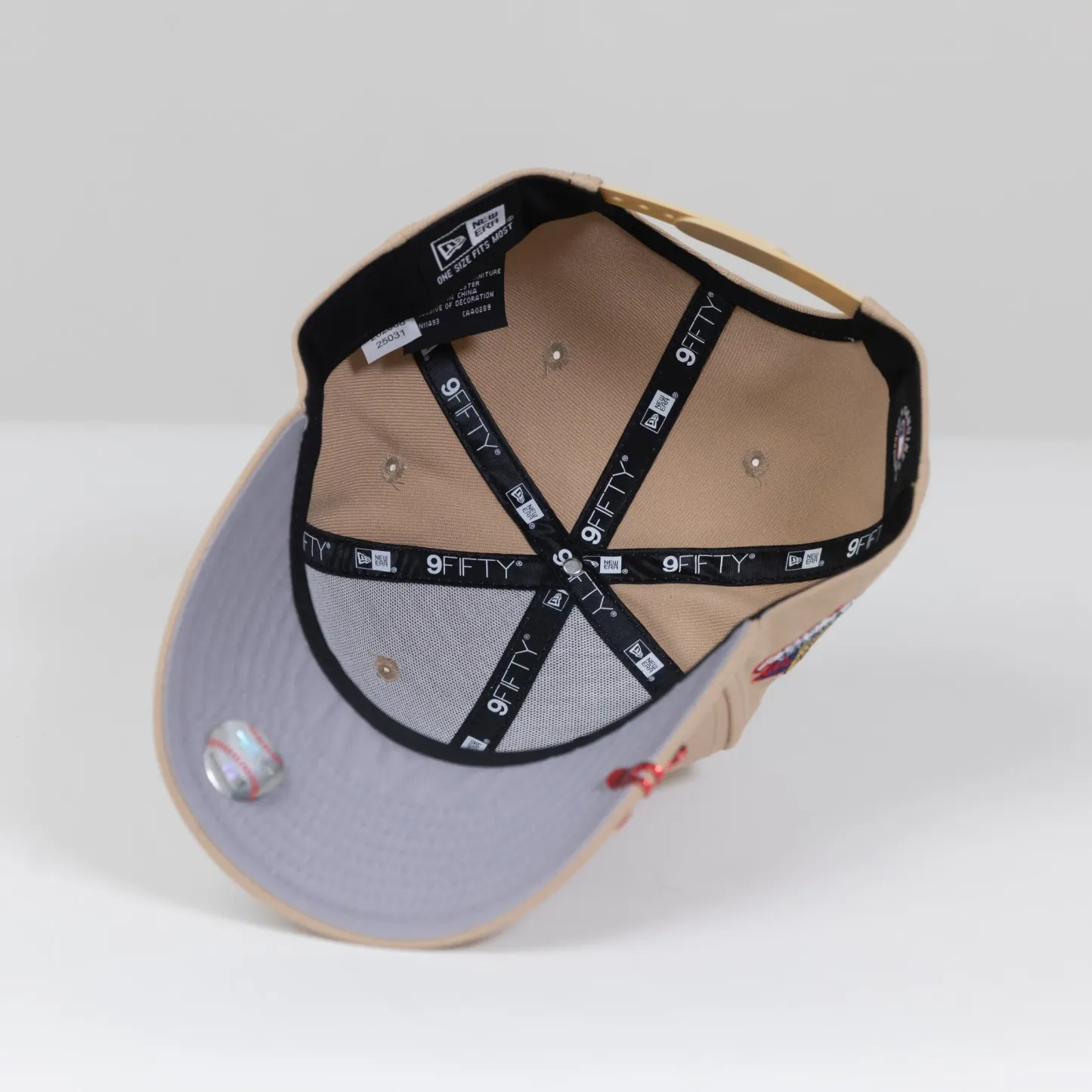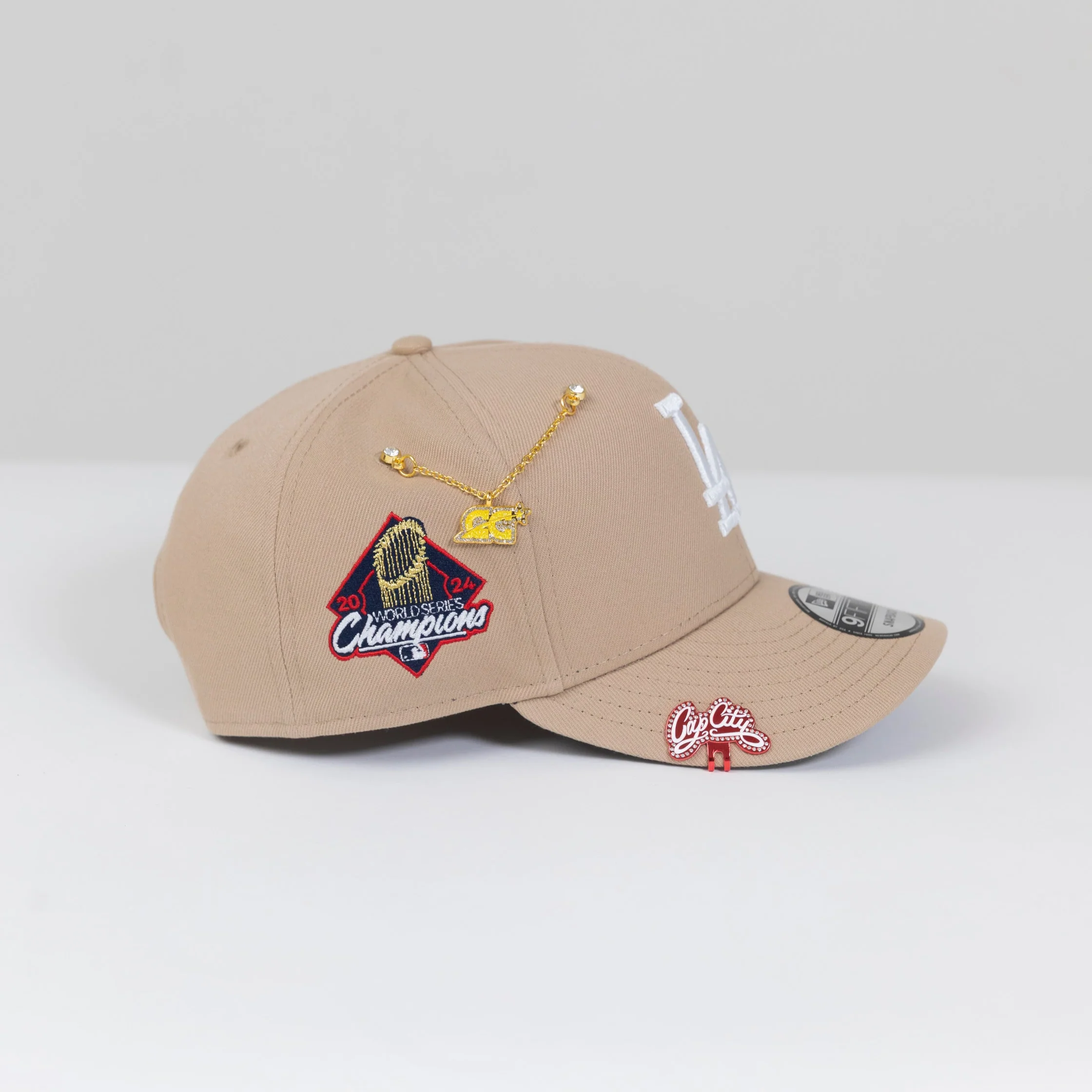 NEW ERA EXCLUSIVE 9FIFTY LIGHT KHAKI LOS ANGELES DODGERS SNAPBACK W/ 2024 WORLD SERIES CHAMPIONS SIDE PATCH
