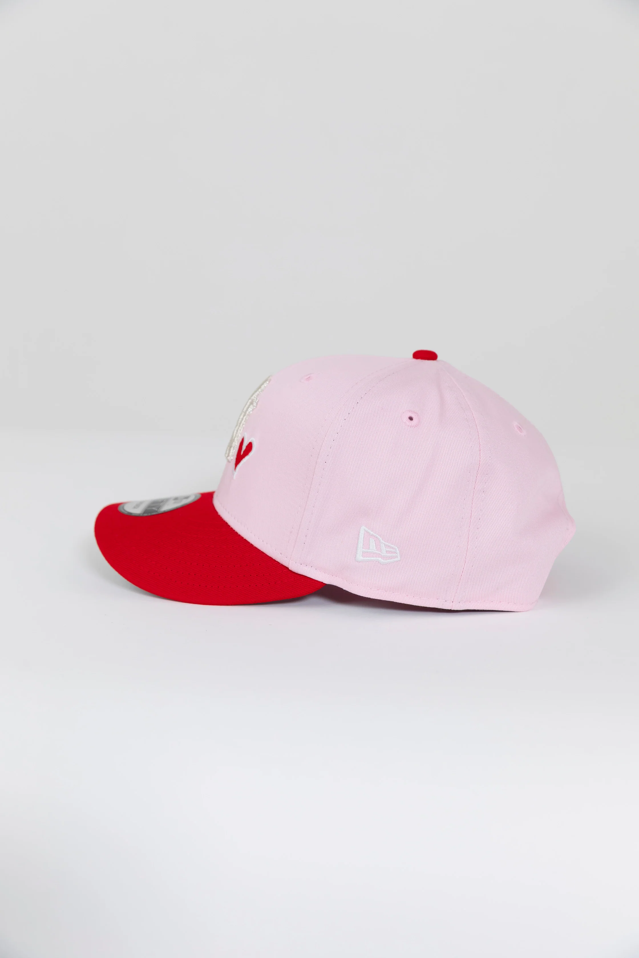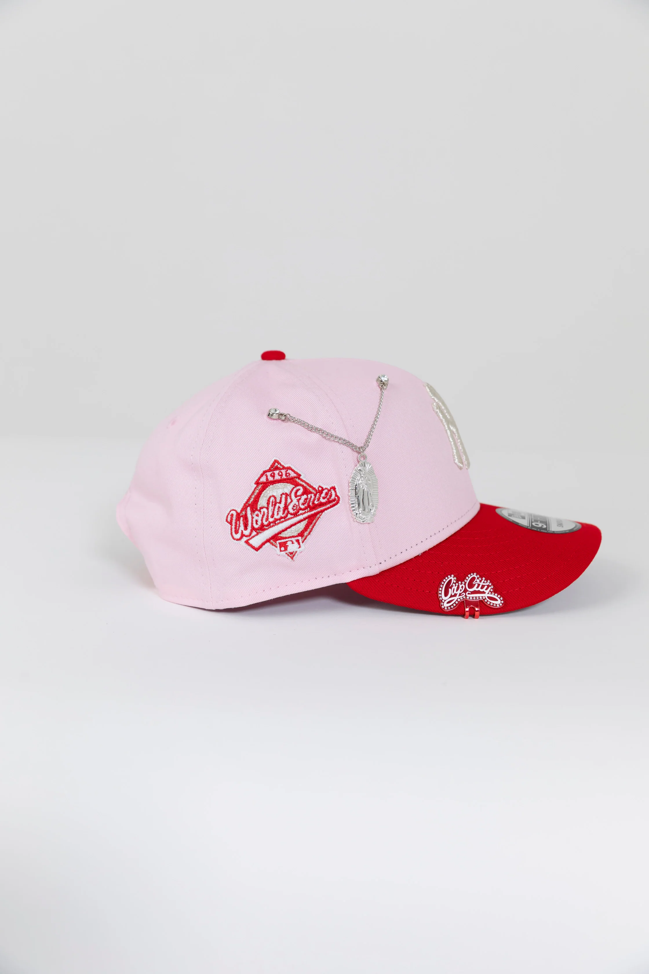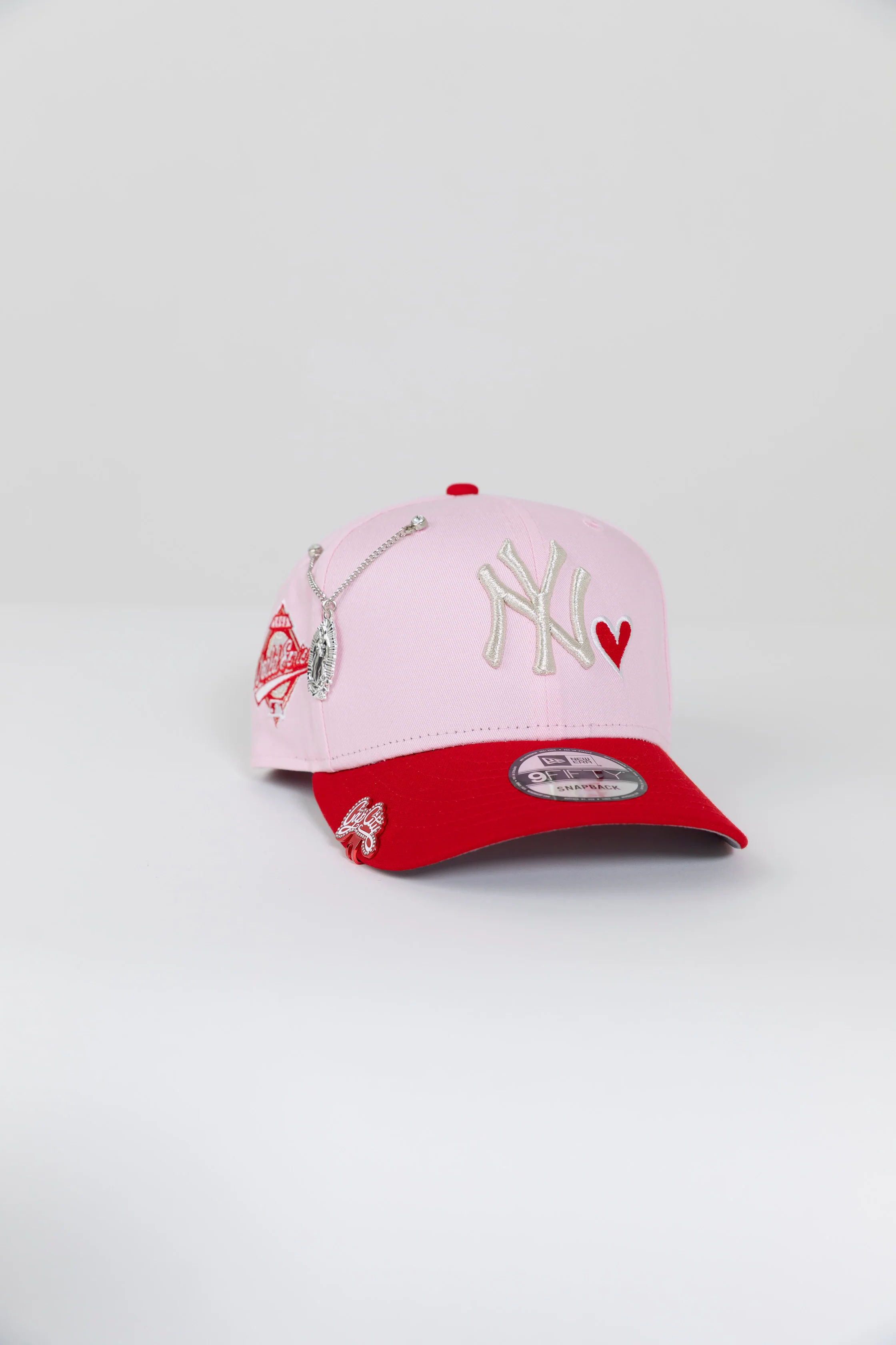 NEW ERA EXCLUSIVE 9FIFTY SOFT PINK/ RED NEW YORK YANKEES SNAPBACK W/ RED HEART + 1996 WORLD SERIES SIDE PATCH