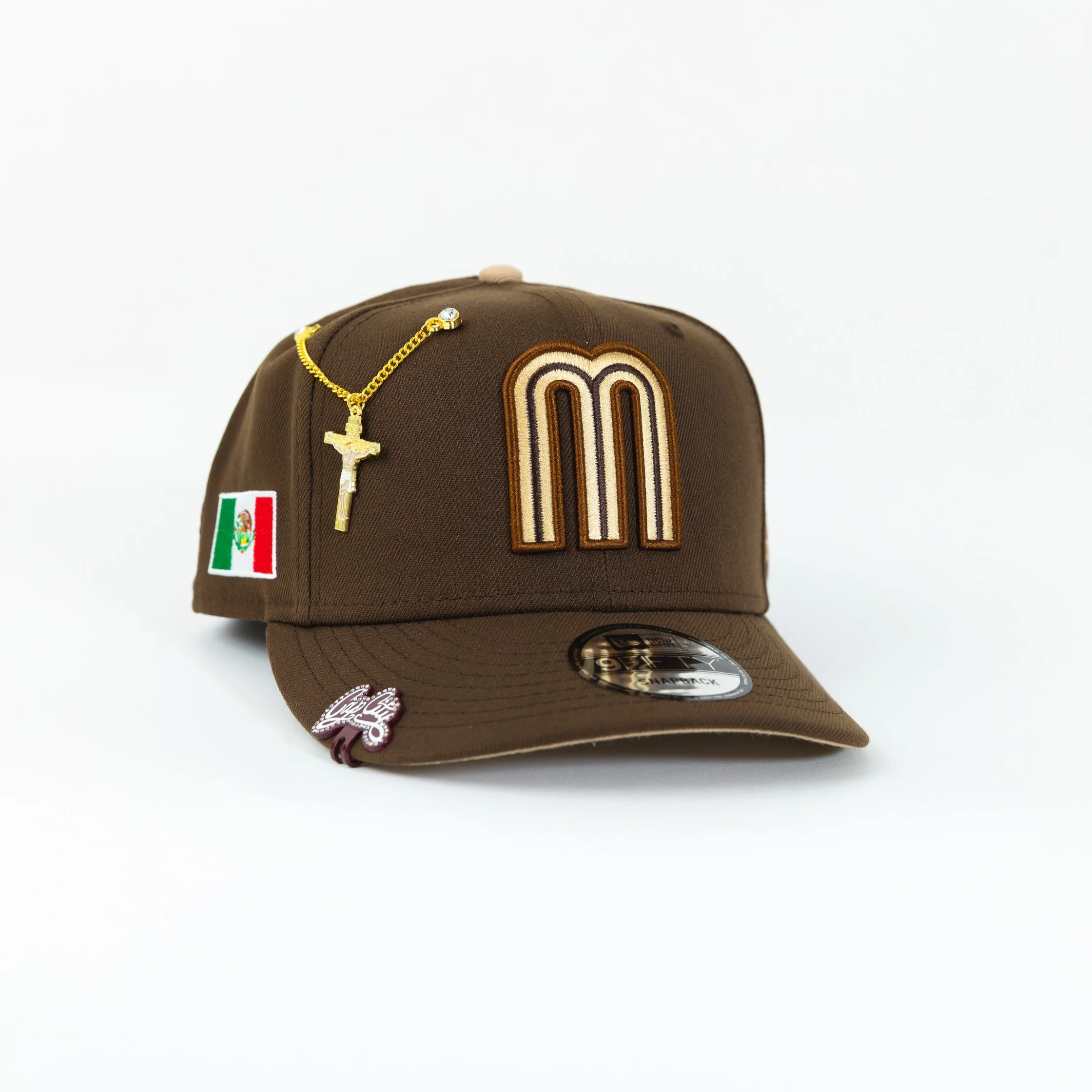 NEW ERA EXCLUSIVE 9FIFTY WALNUT MEXICO SNAPBACK W/ MEXICO FLAG SIDE PATCH