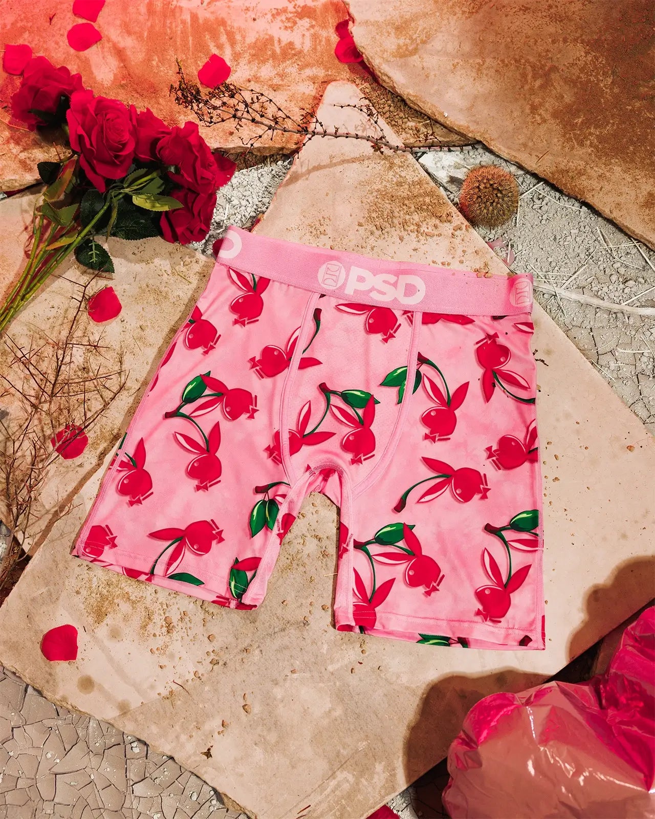 Sweet cherries with an iconic Playboy twist. The Cherry Love briefs from Playboy x PSD include our ultra-comfortable Signature WaistBand, a breathable MicroMesh pouch, and four-way stretch. The PSD 7” Standard Length Briefs won't roll or ride and were built for everything, from everyday wear to your toughest workouts.